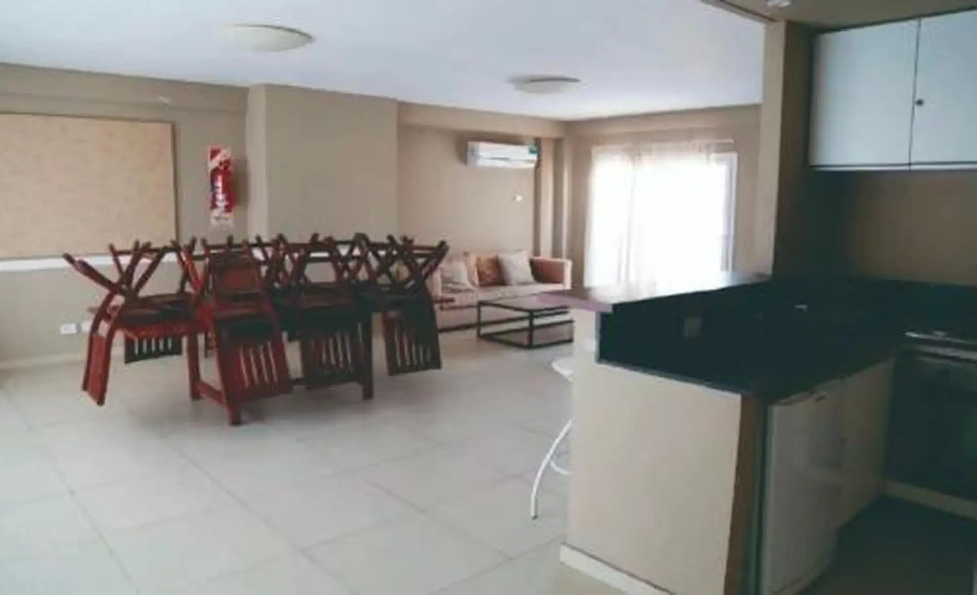 Квартира-студия в аренду в Núñez, расположена на высоком этаже, с окнами во двор. Площадь около 35 m² (общая). В квартире есть оборудованная кухня с верхними и нижними шкафами, основное помещение с встроенными местами хранения и полноразмерная ванная комната. Балкон и естественная вентиляция. Коммунальные платежи здания на 15/1/2026 составляют около $130.000.