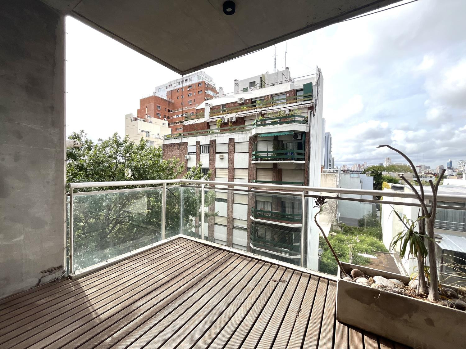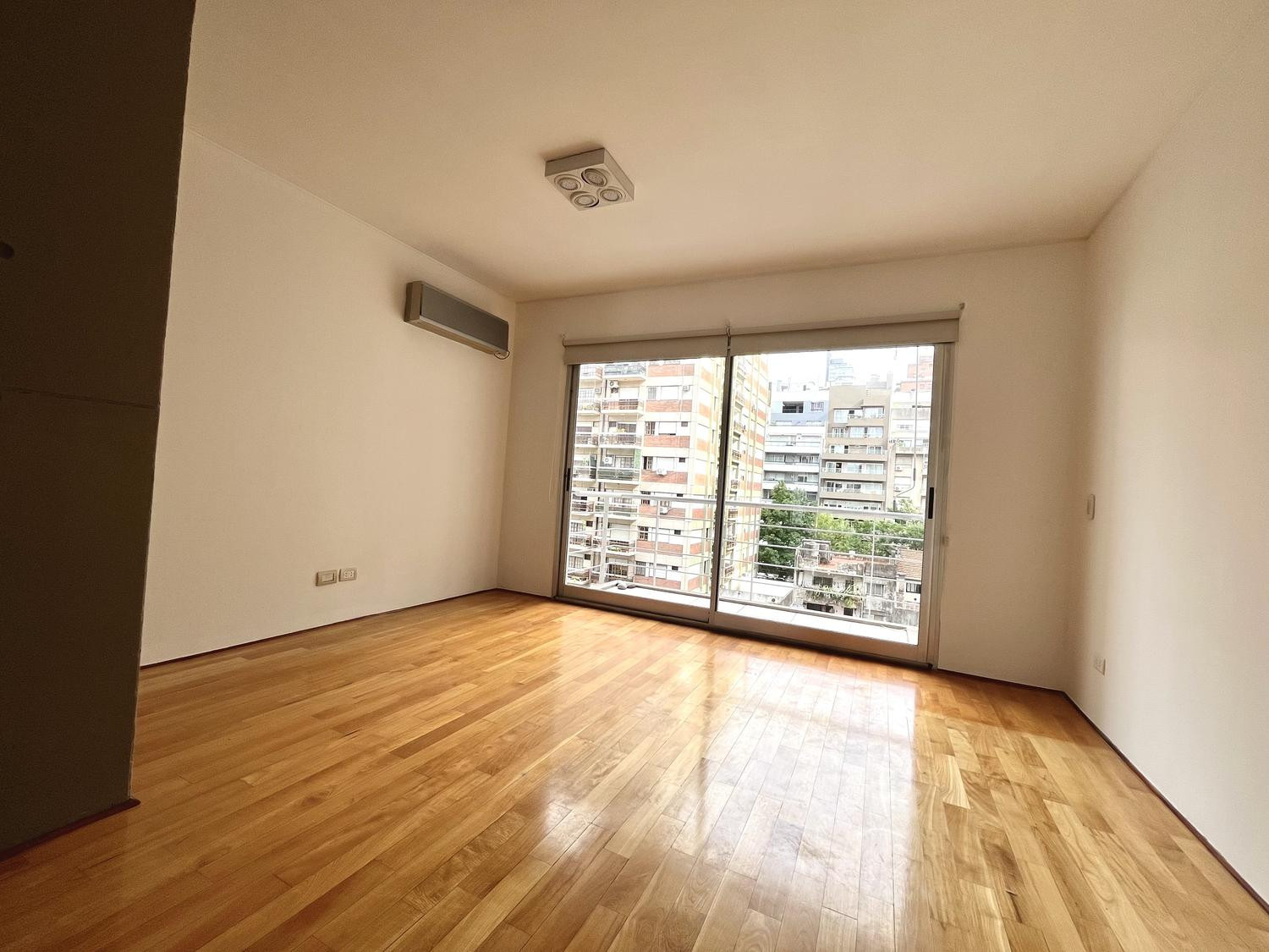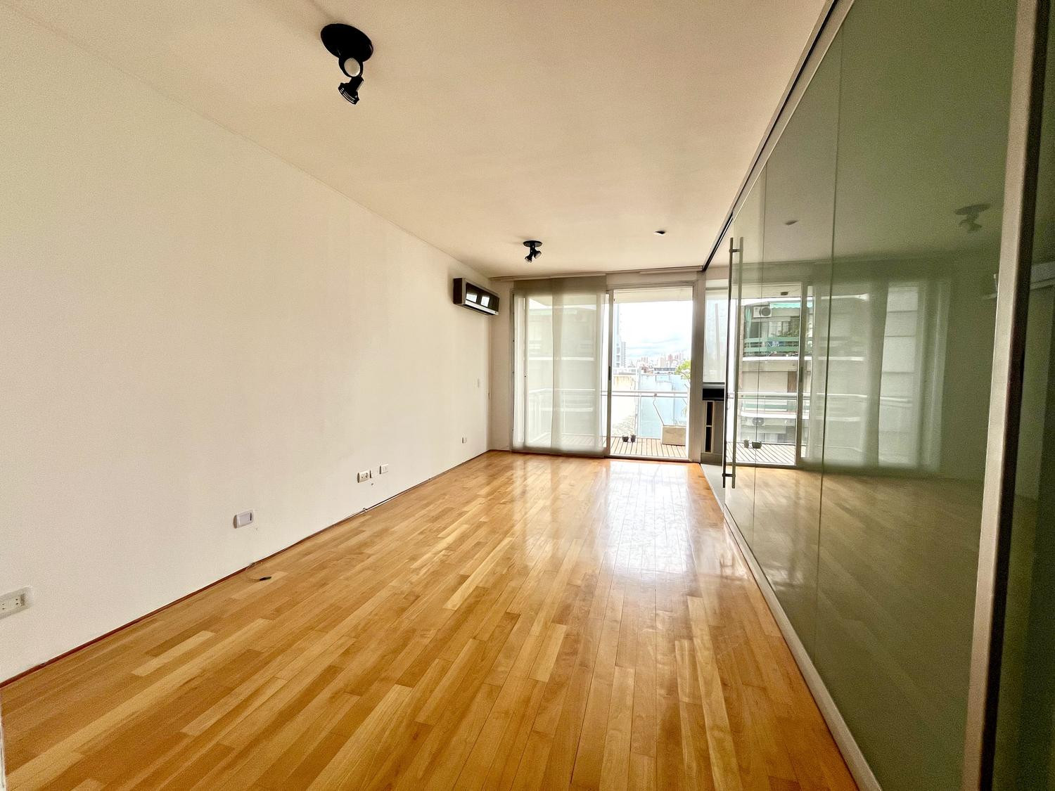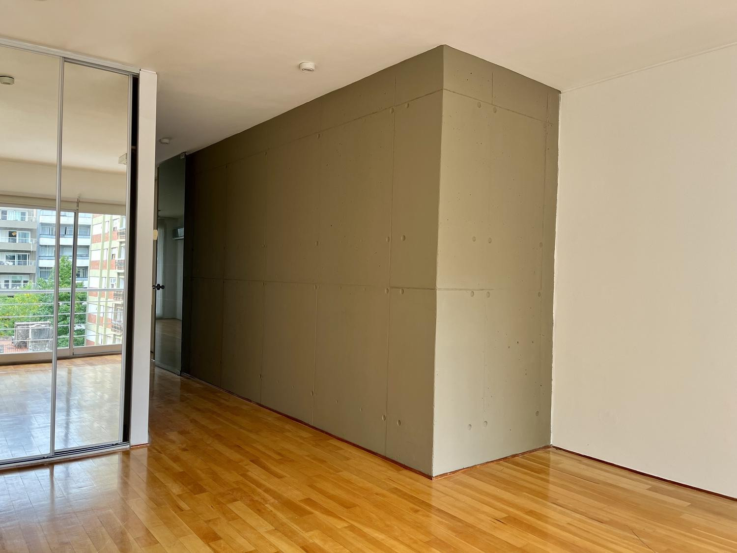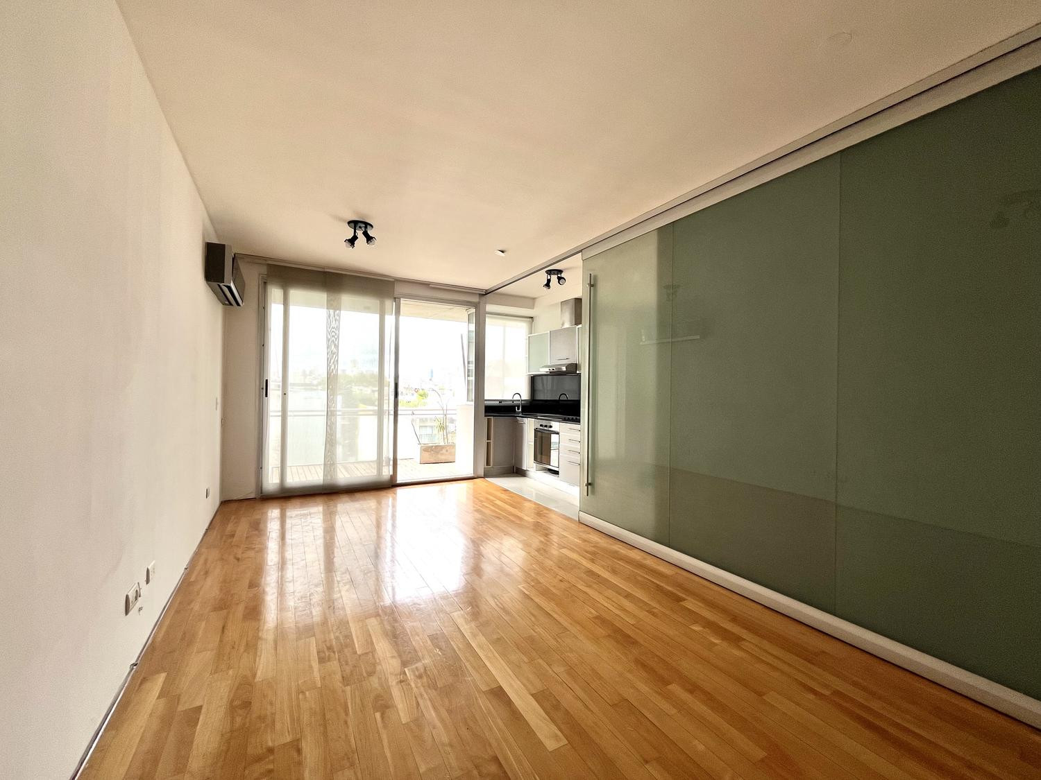 Квартира в Núñez, 2 комнаты, 1 спальня. В здании с низкой плотностью, по 2 квартиры на этаж. В гостиной объединённой с обеденной зоной бетонные элементы и деревянные полы, кондиционирование холод/тепло сплитом. Балкон на фасад с открытым видом, кухня с плитой и электрической духовкой Ariston, есть туалет для гостей и дверь-перегородка из стекла для отделения зоны кухни. Спальня с ванной комнатой (suite), встроенный шкаф, второй балкон во двор с ориентацией на север. На верхнем этаже: общая гости