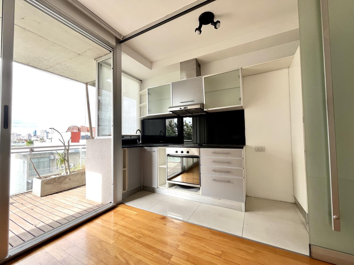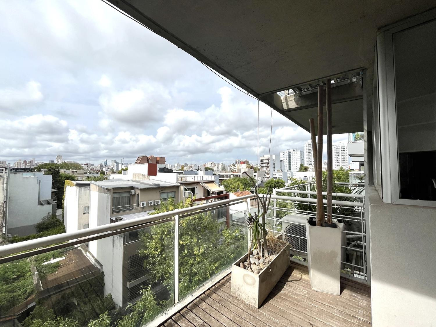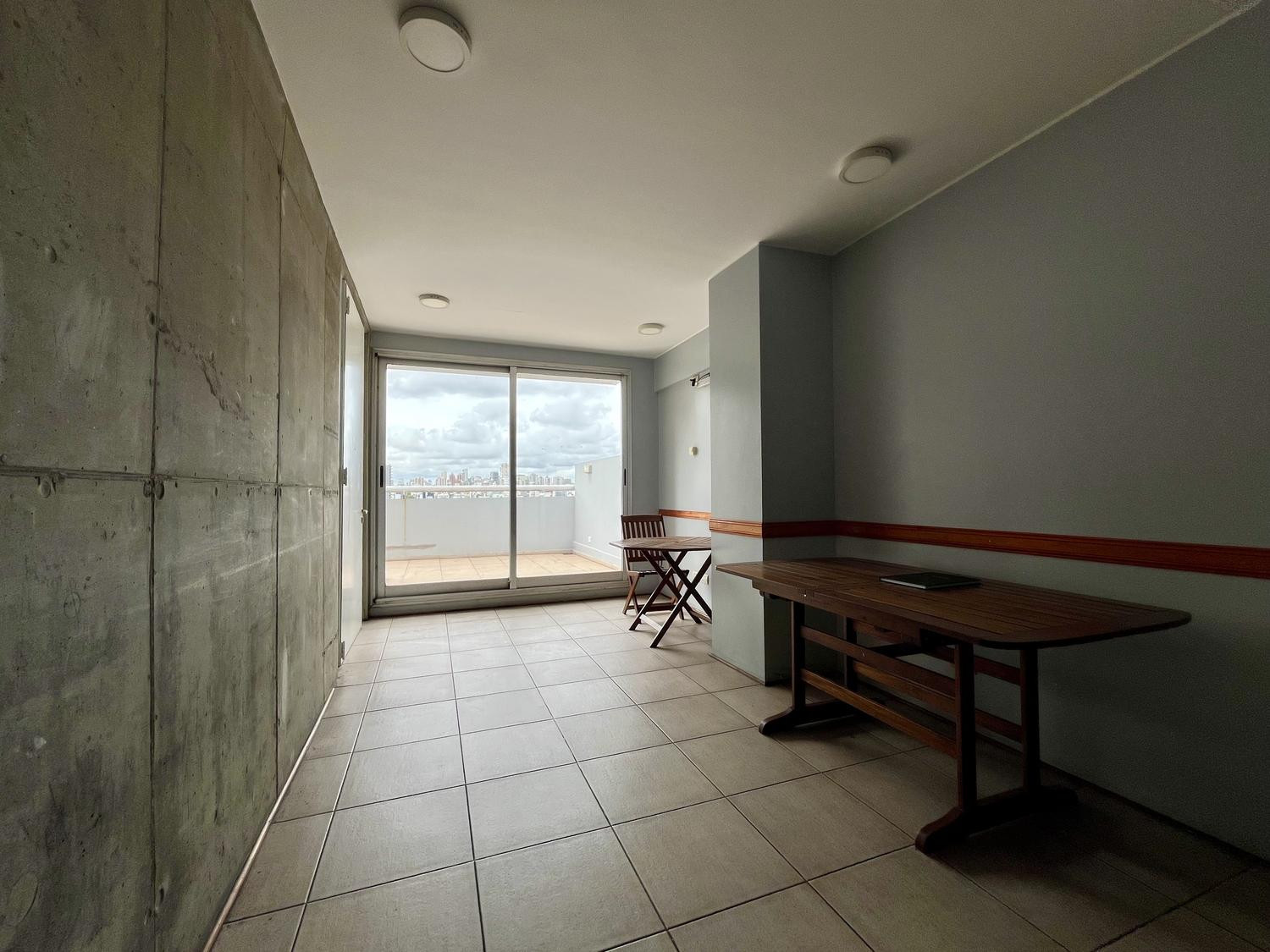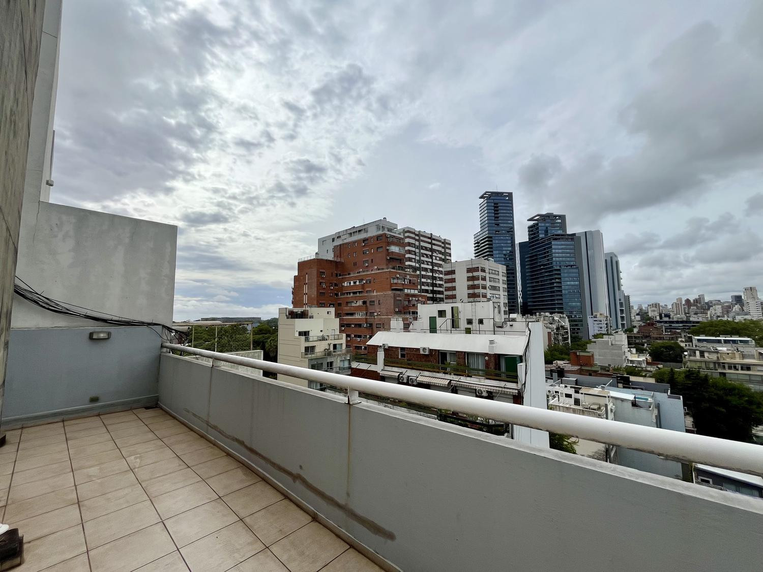 Квартира в Núñez, 2 комнаты, 1 спальня. В здании с низкой плотностью, по 2 квартиры на этаж. В гостиной объединённой с обеденной зоной бетонные элементы и деревянные полы, кондиционирование холод/тепло сплитом. Балкон на фасад с открытым видом, кухня с плитой и электрической духовкой Ariston, есть туалет для гостей и дверь-перегородка из стекла для отделения зоны кухни. Спальня с ванной комнатой (suite), встроенный шкаф, второй балкон во двор с ориентацией на север. На верхнем этаже: общая гости