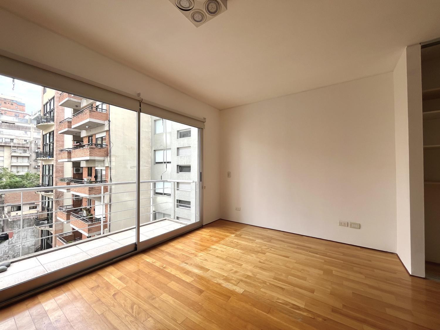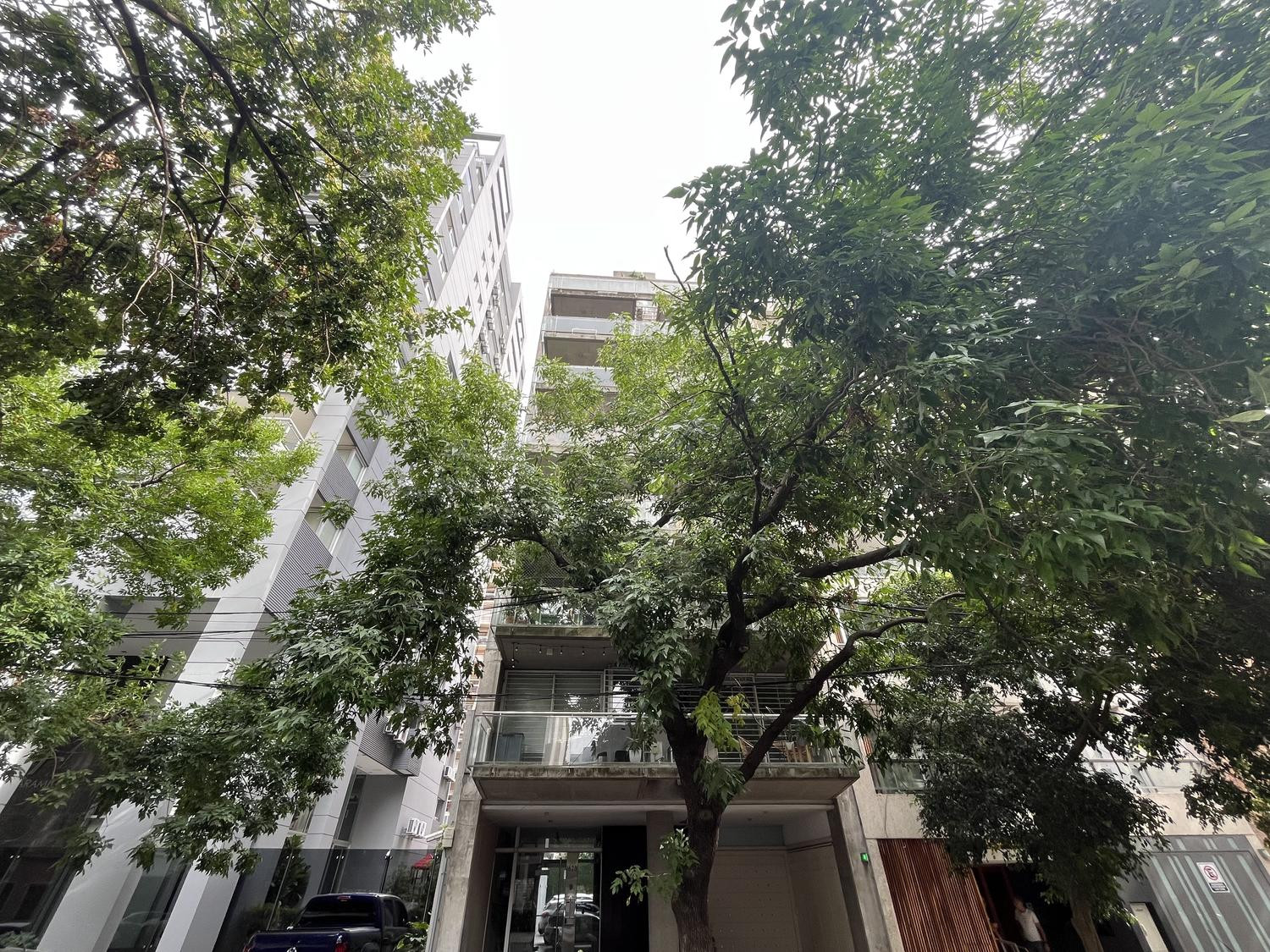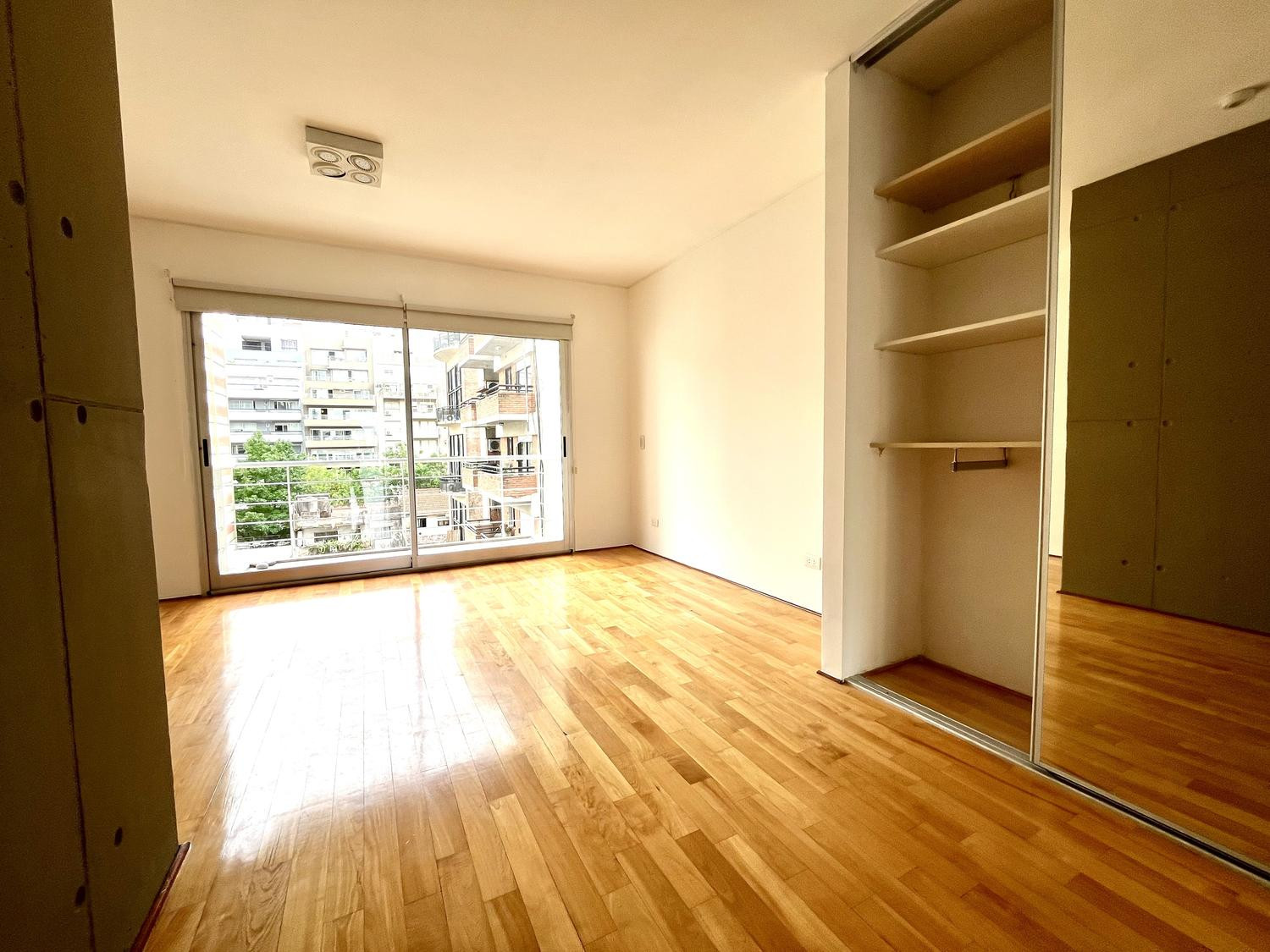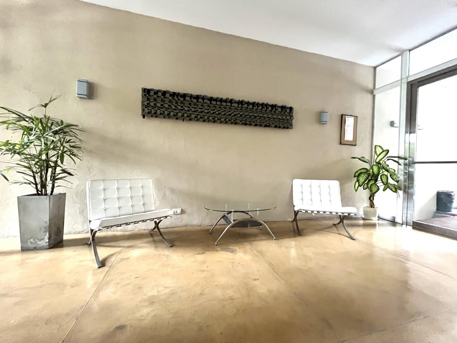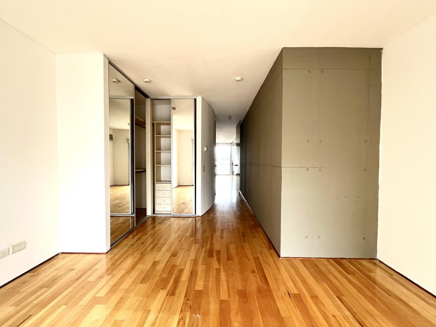 Квартира в Núñez, 2 комнаты, 1 спальня. В здании с низкой плотностью, по 2 квартиры на этаж. В гостиной объединённой с обеденной зоной бетонные элементы и деревянные полы, кондиционирование холод/тепло сплитом. Балкон на фасад с открытым видом, кухня с плитой и электрической духовкой Ariston, есть туалет для гостей и дверь-перегородка из стекла для отделения зоны кухни. Спальня с ванной комнатой (suite), встроенный шкаф, второй балкон во двор с ориентацией на север. На верхнем этаже: общая гости