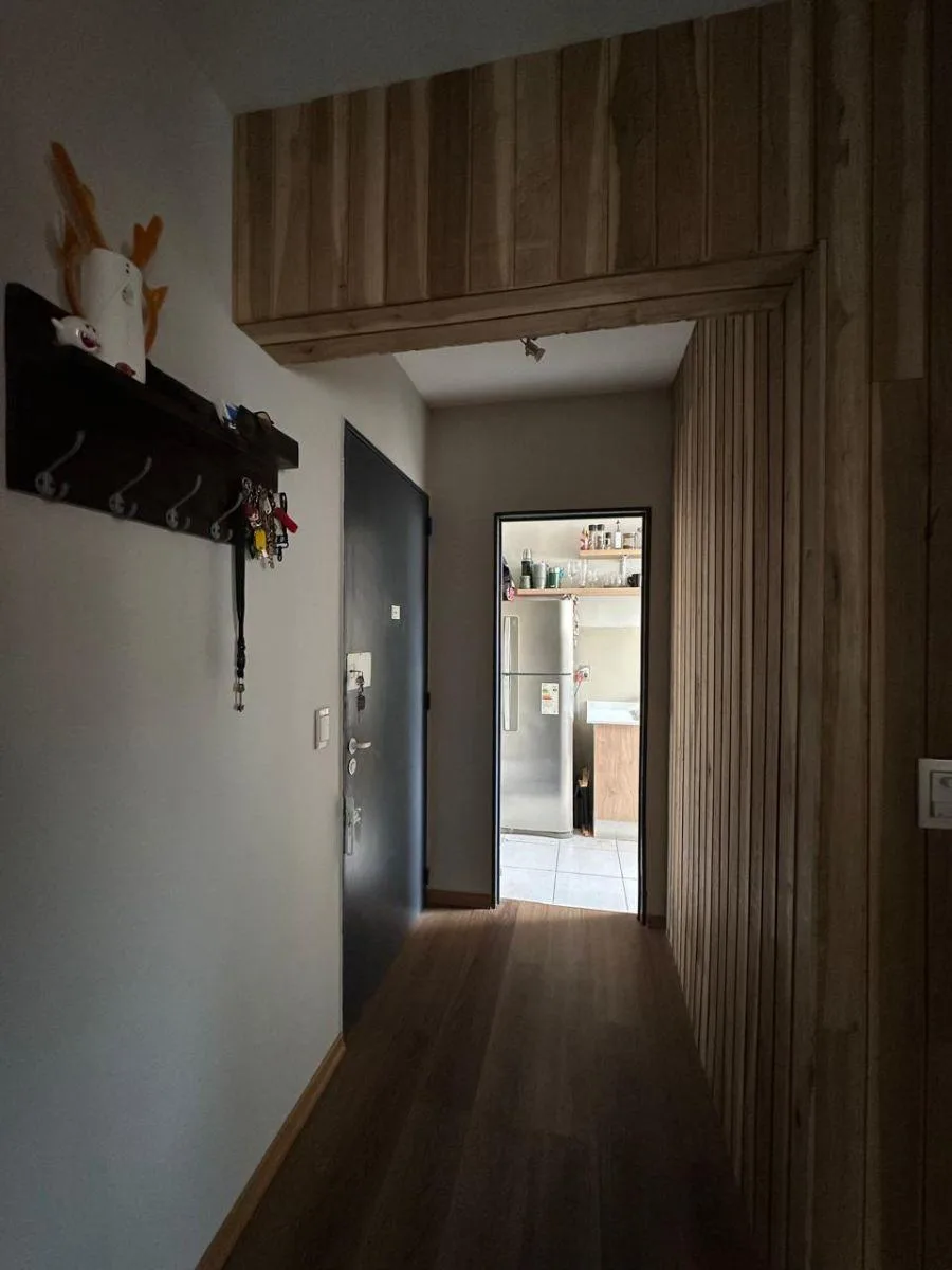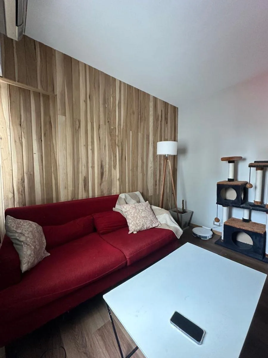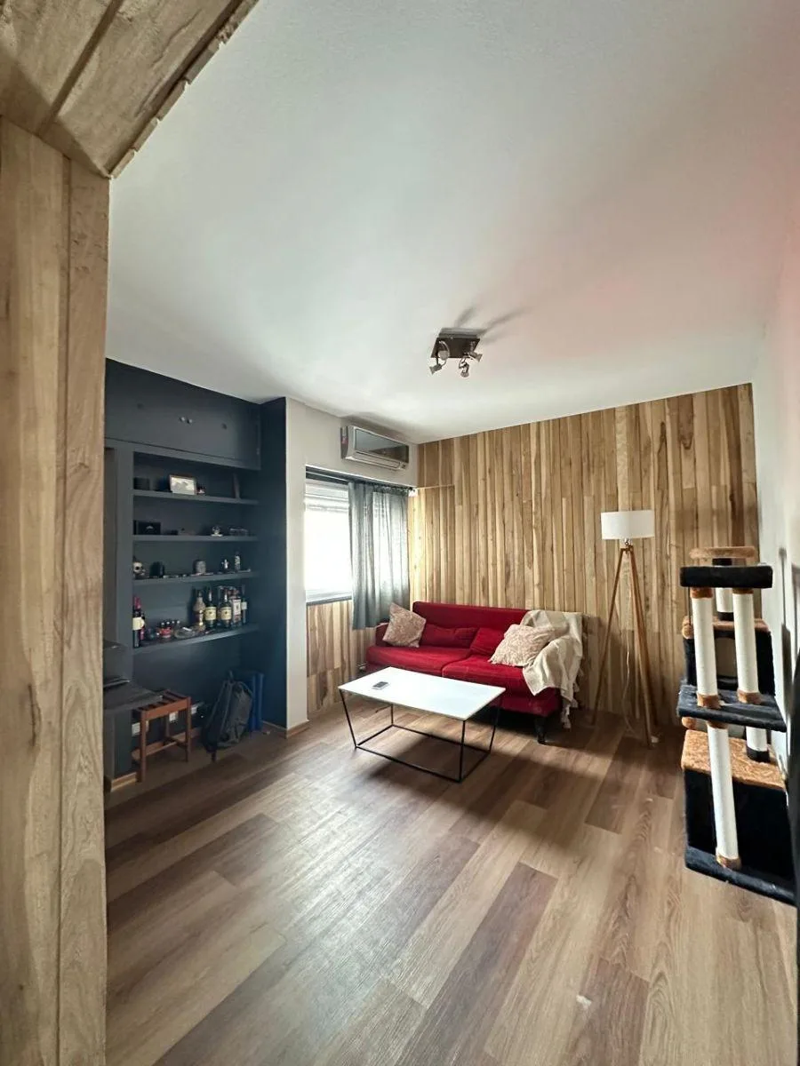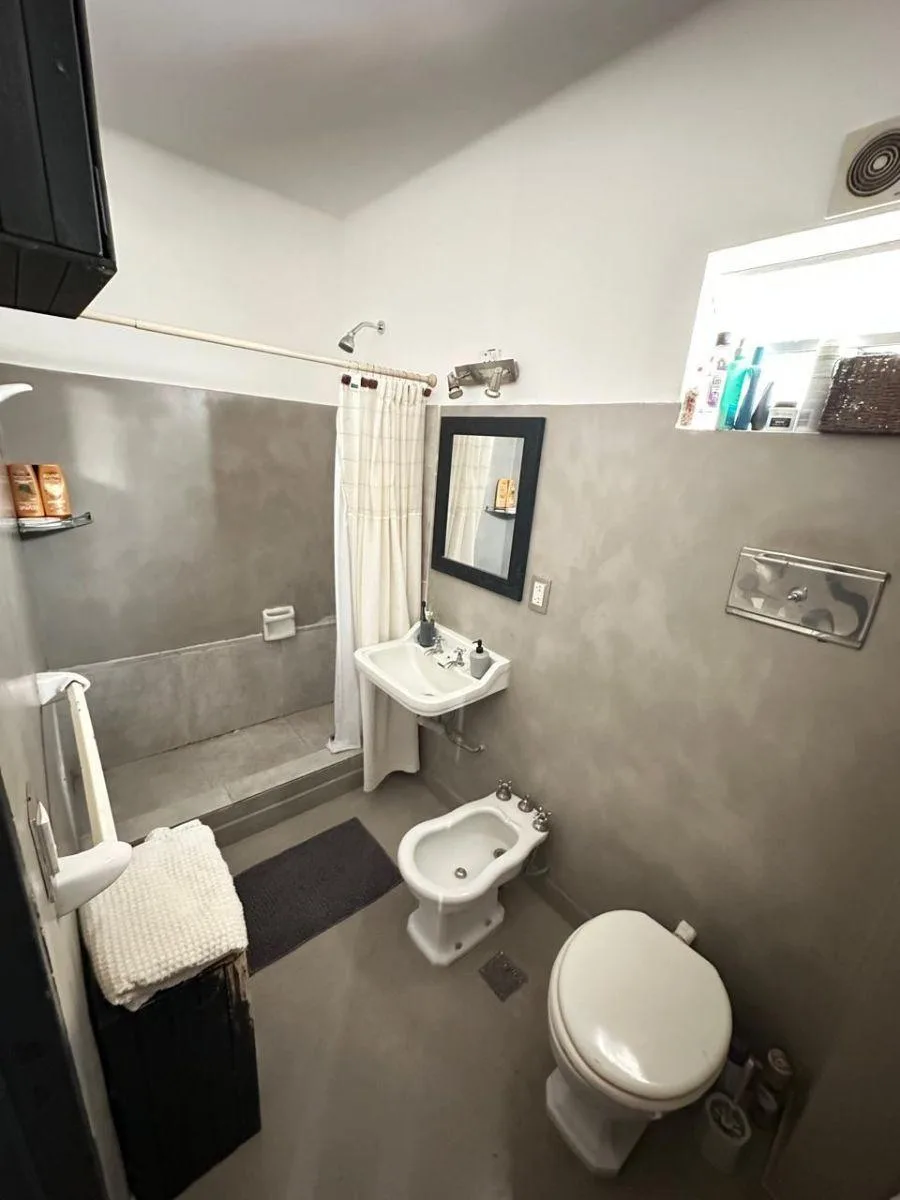 Квартира из 2 комнат (1 спальня) площадью 2 ambientes после ремонта, на 2-м этаже без лифта, вход по лестнице. Окна выходят во внешний проём: в кухне-гостиной интегрированный кухонный блок с новыми тумбами под столешницей и стеллажами, есть установленный кондиционер. Спальня с встроенным гардеробом до потолка. Ванная комната после ремонта с отделкой микробетоном; установлены светильники. Коммунальные платежи здания указаны как низкие; адрес: 3 de Febrero 3363, между Juana Azurduy y Núñez.