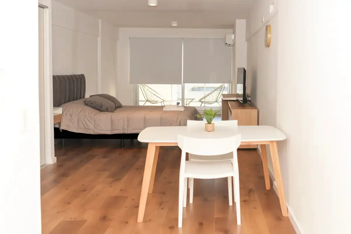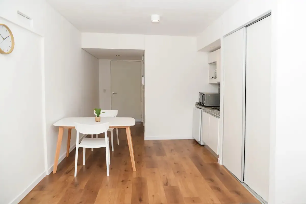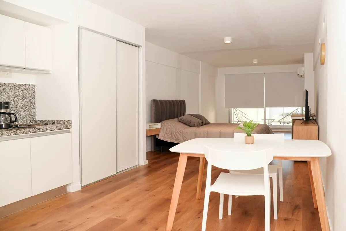 Квартира-студия в Núñez в хорошем состоянии. Вся площадь организована как зона отдыха, а также гостиная и столовая; кухня полностью оборудована. Есть полноценная ванная комната, современный балкон. В квартире установлены Wi‑Fi с высокой скоростью, Smart TV и кондиционер. В здании предусмотрена охрана 24 часа; есть услуга прачечной (стиральная машина и сушильная машина) и парковка за дополнительную плату.