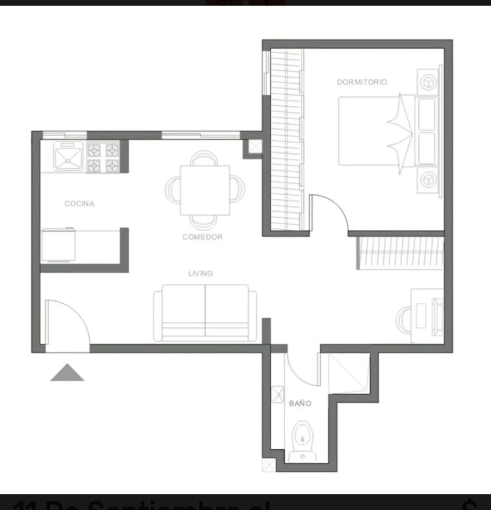 Квартира 2 комнат (внутренняя планировка) площадью 34 m² в Núñez. При входе — гостиная-столовая с кондиционером, потолочным вентилятором и естественной вентиляцией. Кухня после ремонта: газовая плита на 4 конфорки с духовкой, водонагреватель, естественная вентиляция; установлен гарнитур под столешницей и навесной шкаф. Спальня с встроенным деревянным шкафом и естественной вентиляцией; ванная комната после ремонта. Договор на 24 месяца, индексирование по IPC. Коммунальные платежи здания и налоги