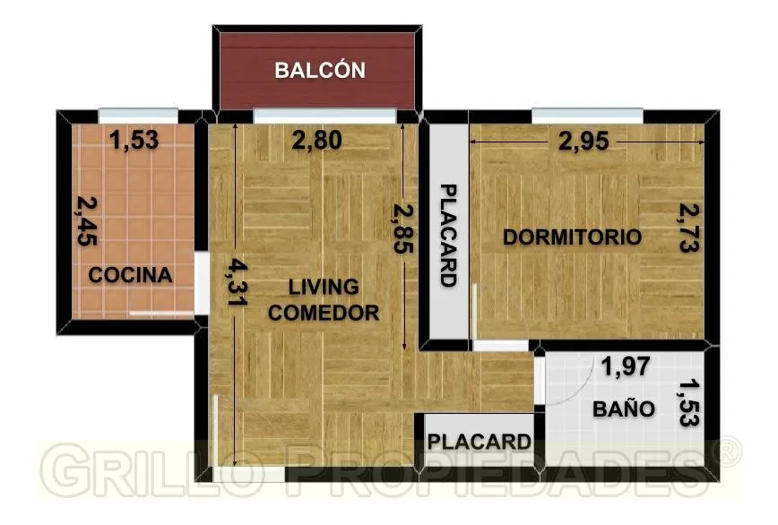 Квартира из двух комнат площадью 37 m², из них 34 m² крытых, на 7-этажном доме в Núñez. Окна на улицу, ориентация юго-запад, с балконом 3 m². В гостиной-столовой установлен кондиционер. Спальня с вместительным шкафом, отдельная кухня с зоной для стиральной машины, дополнительный шкаф в коридоре. Ванная комната с ванной, на общей террасе есть место для сушки белья. В здании 4 квартиры на этаже, доступ по лестнице или на двух лифтах. Аренда предусматривает максимум 2 человека, без домашних животны