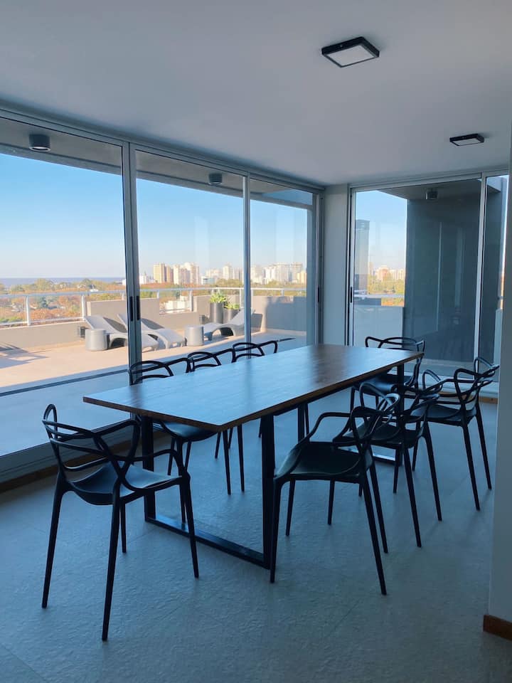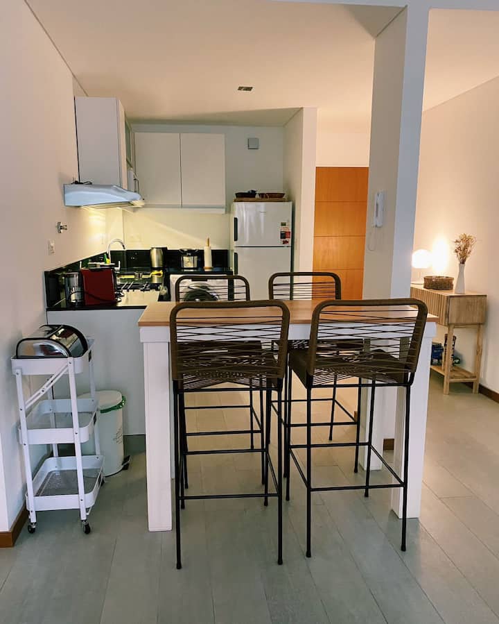 Квартира с 1 спальней в Olivos, новая (никто не жил), с мебелью и оборудованием. Здание Olivos Eco: бассейн, тренажёрный зал, общая гостиная для жильцов, солярий с душевыми, доступность для людей с ограниченной мобильностью. Есть велосипеды; круглосуточная охрана. По данным объявления, находится в 1 квартале от Av. Maipú и Ugarte.