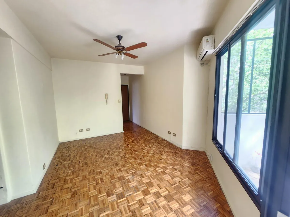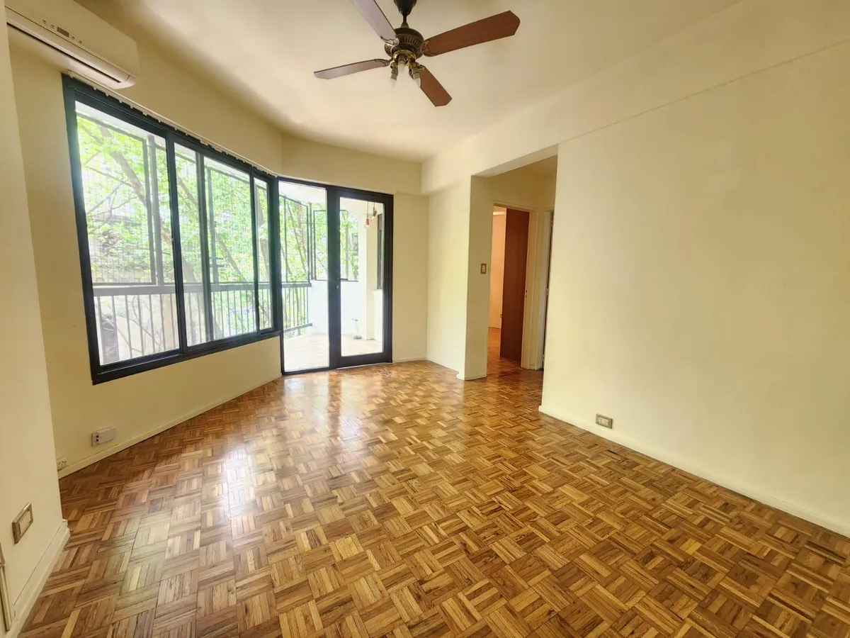Квартира с 1 спальней в Palermo, окна на улицу и балкон с открытым видом на Plaza Guadalupe. Квартира расположена на 3-м этаже в здании на 8 этажей, по 3 квартиры на площадке, с лифтом. В ней гостиная 14,00 m², спальня 12,60 m², кухня 7,80 m², совмещённый санузел 1,90 m². Полы из паркета после реставрации, потолочные вентиляторы, кондиционеры холод/тепло в каждой комнате, встроенные шкафы в спальне, кухня с естественной вентиляцией. Входная дверь Pentágono с усиленной защитой.