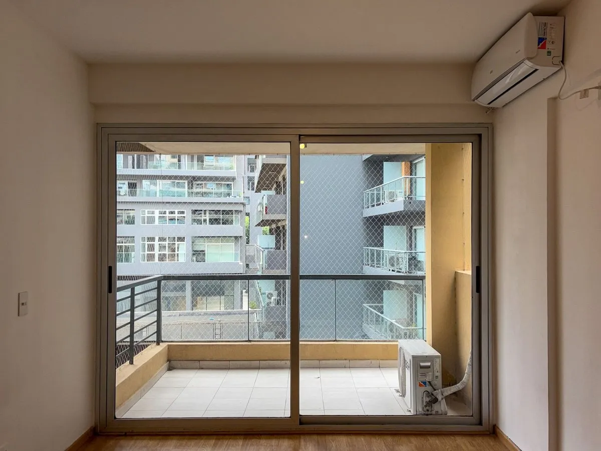 Квартира-студия площадью около 40 m² в Palermo, 3-й этаж, окна во двор. Пространство разделено на зону гостиной-столовой и спальную зону. Кухня с нижними шкафами и навесными модулями, варочная панель и предусмотрено подключение холодильника и микроволновой печи; ванная комната с ванной. Балкон выходит на внутренний двор квартала; есть место для хранения с шкафом. В здании: бассейн на террасе, оборудованный SUM, зона гриля, открытая площадка, тренажёрный зал, прачечная, современный входной холл и