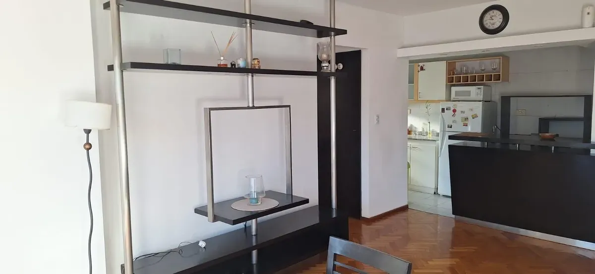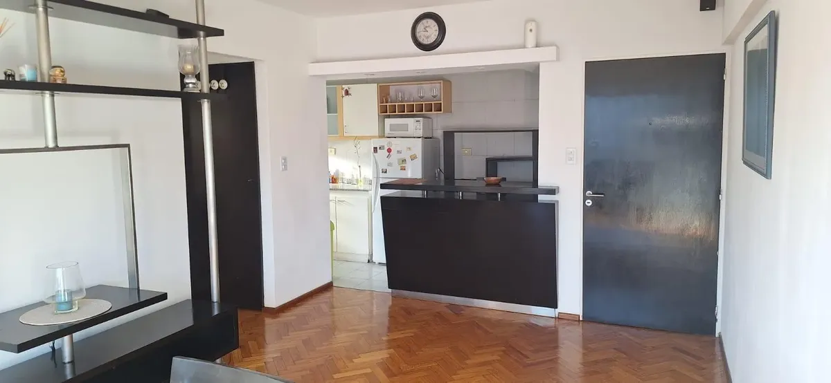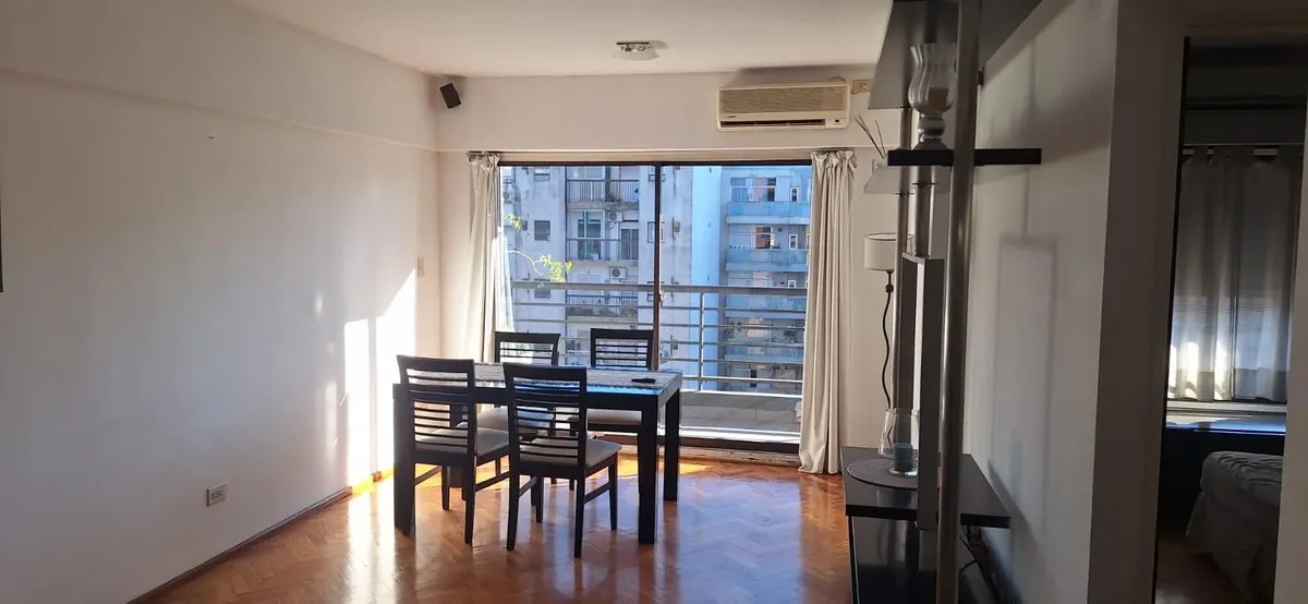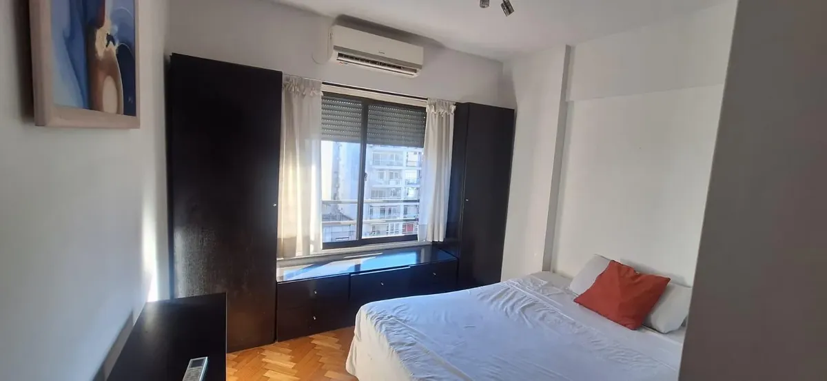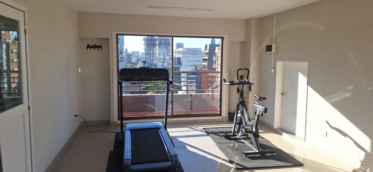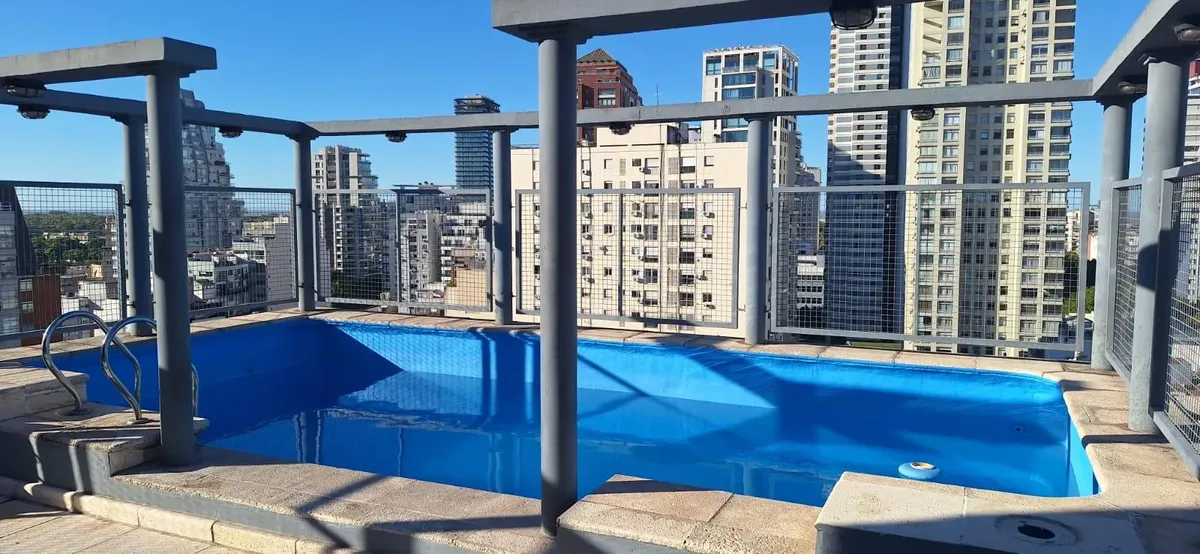 Аренда квартиры в Palermo. Двухкомнатная квартира на высоком этаже, окна во двор (contrafrente), 55 m². Есть зона для стирки, полусоединённая кухня, полностью оборудованная ванная и (закреплённое) парковочное место. В здании предусмотрены бассейн, тренажёрный зал и охрана. Срок аренды 6 месяцев. В «precio paquete» входят аренда, коммунальные платежи здания и ABL.