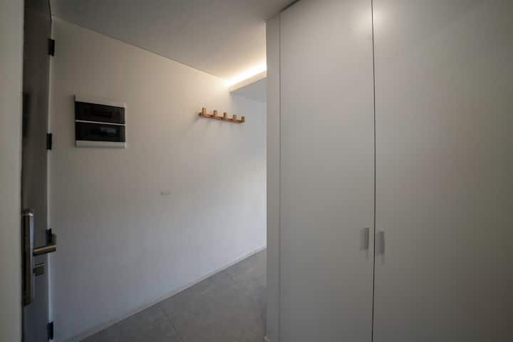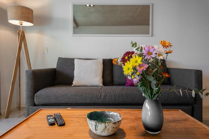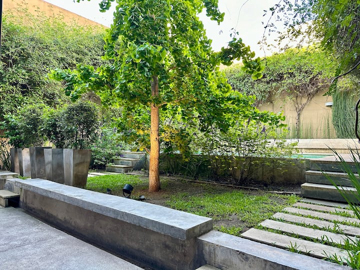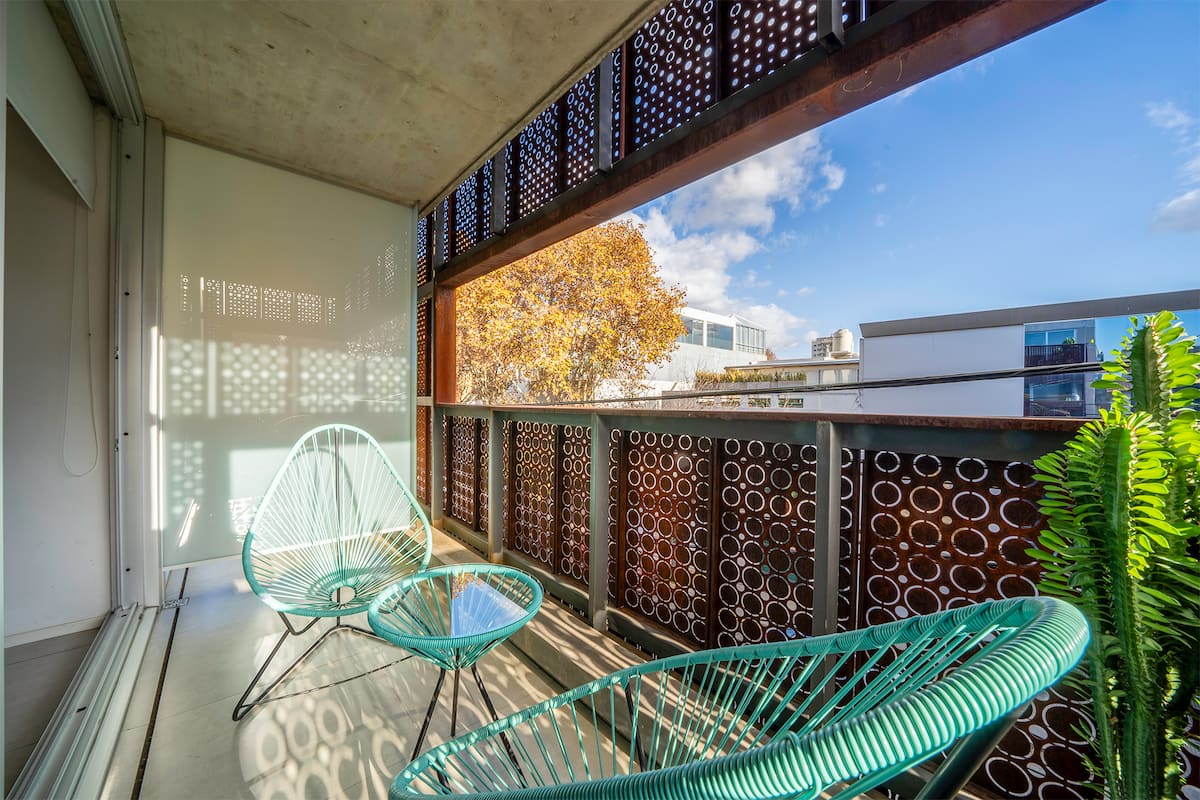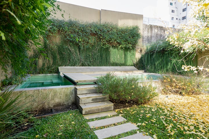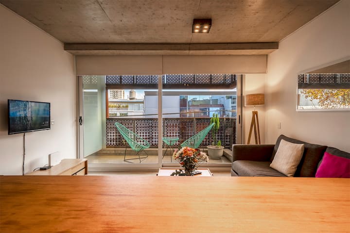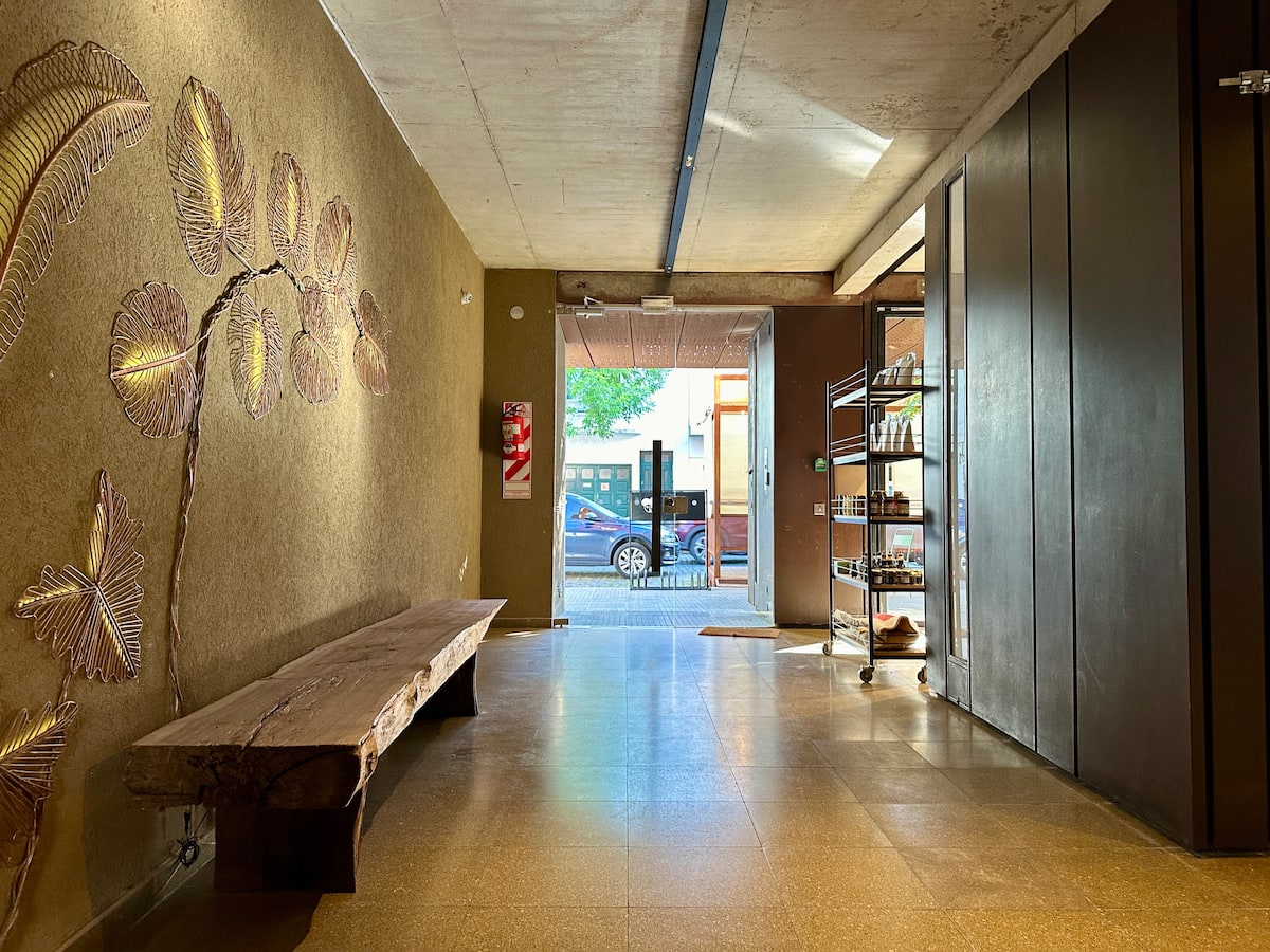 Квартира в новом доме в Palermo. В здании есть бассейн и тренажёрный зал. Сообщается, что квартира яркая и современная. Предлагается запросить рекомендации.