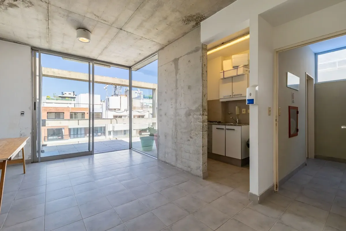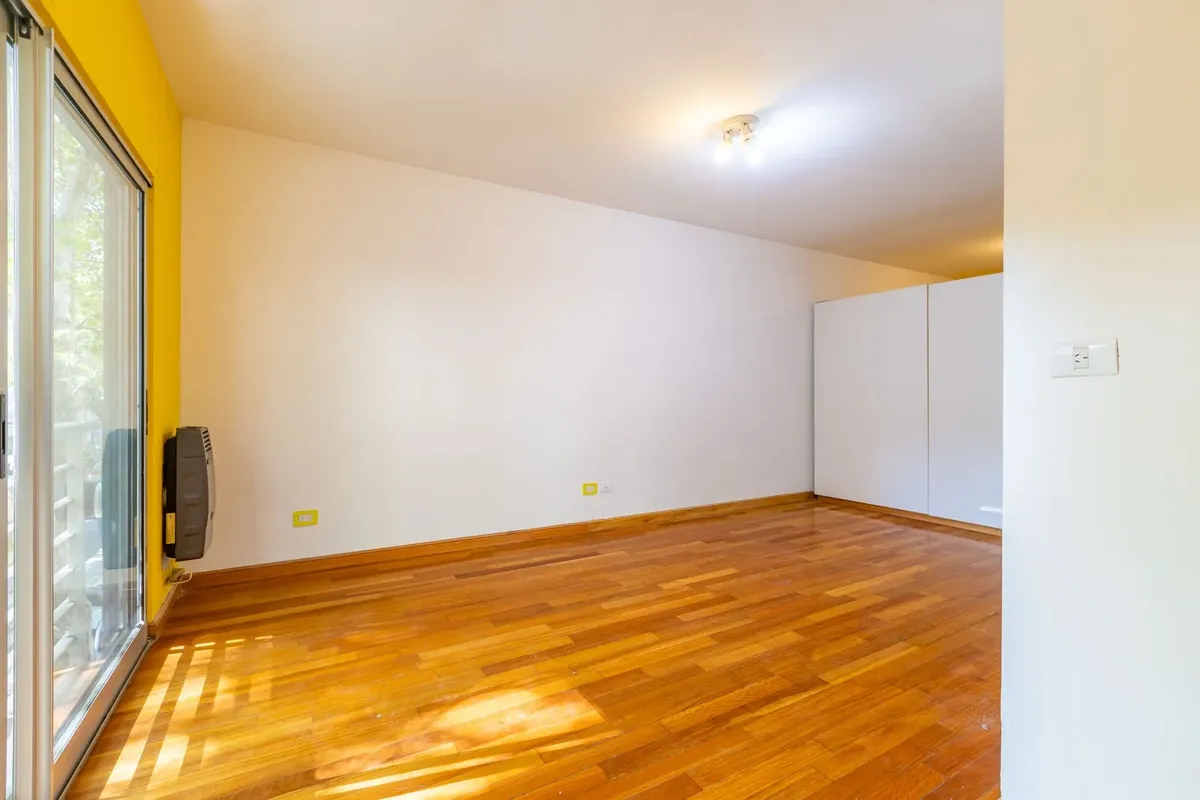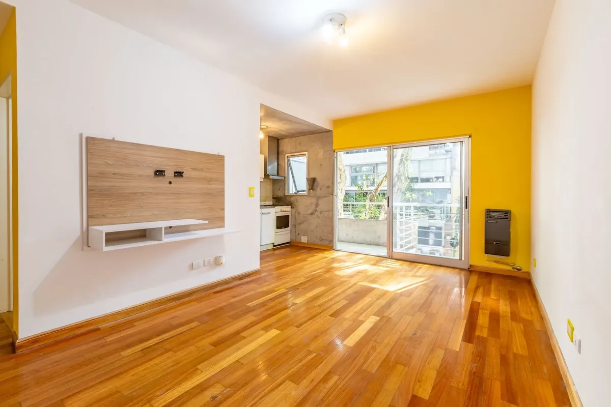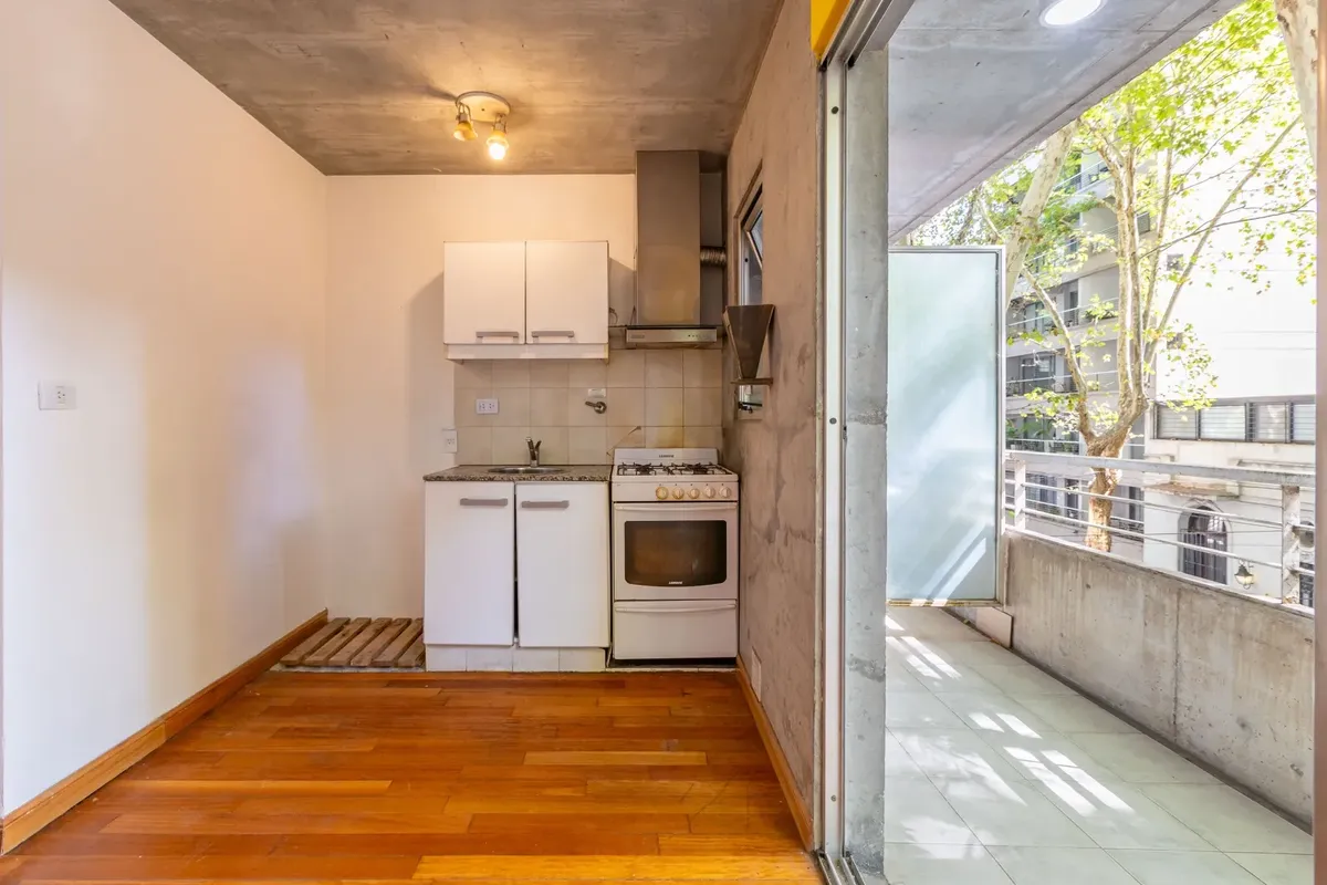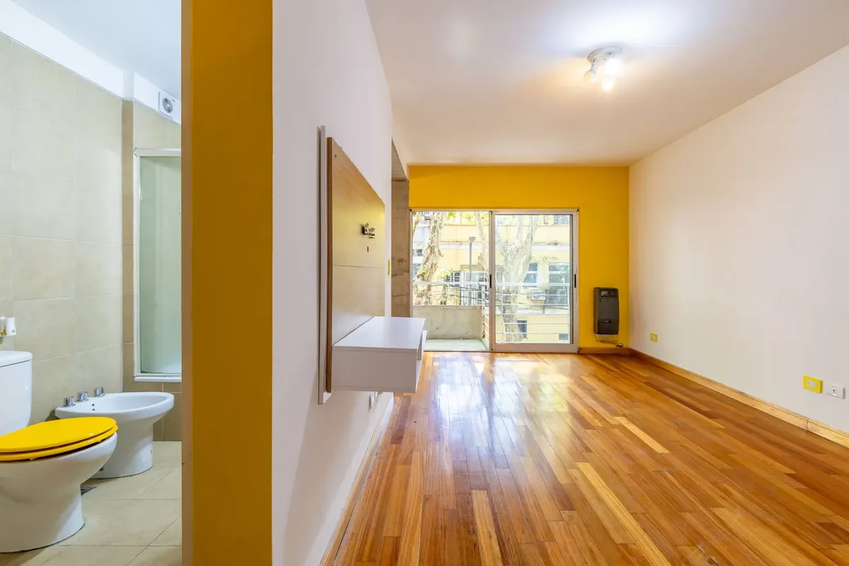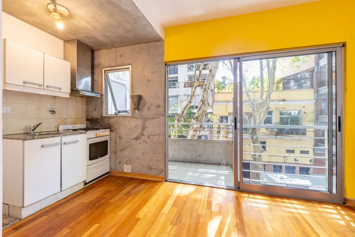 Квартира в формате полуэтажа в Palermo Hollywood, 1 спальня, окна на улицу, балкон, 2-й этаж. Внутри: прихожая, гостиная-столовая с печью с тягой balanceado, выход на балкон, раздельный санузел. Кухня в общем пространстве с газом, помещение разделено шкафом; спальня с гардеробом, окном во внутренний двор и кондиционером. В здании предусмотрены солярий, бассейн и прачечная; коммунальные платежи здания указаны в объявлении, но могут меняться.