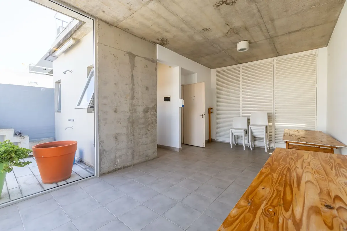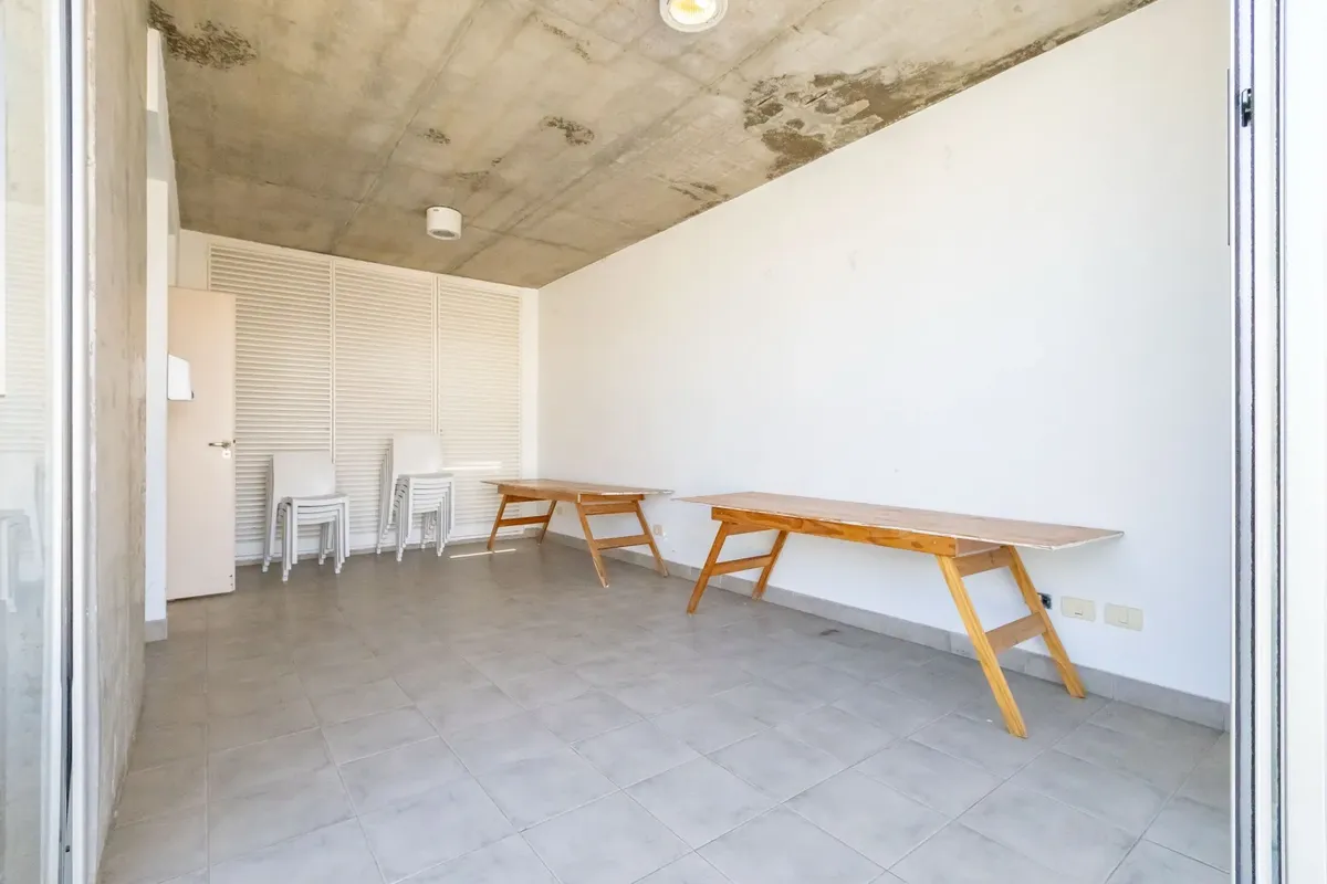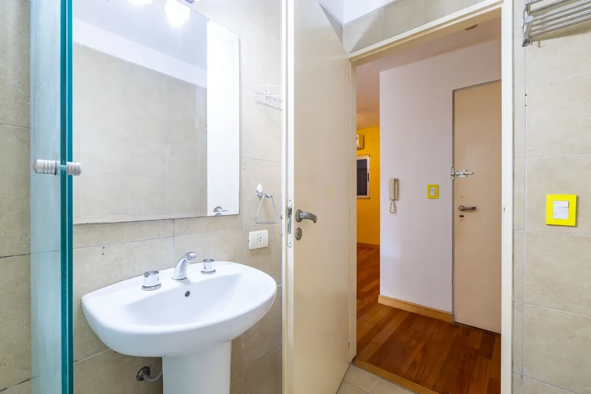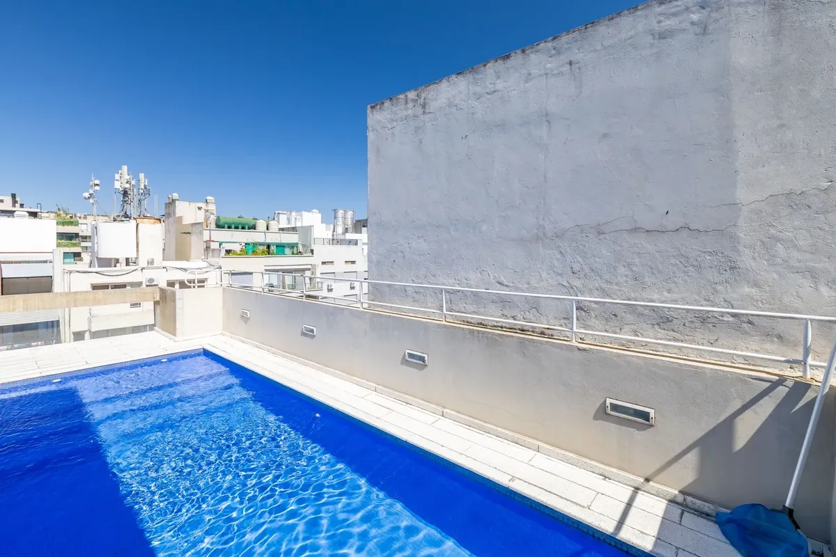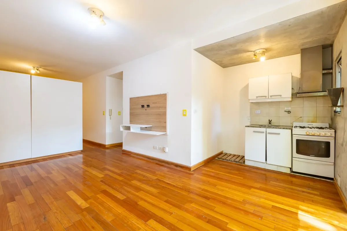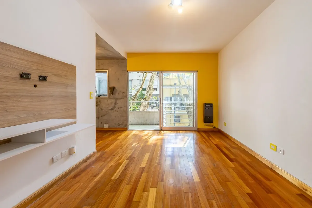 Квартира в формате полуэтажа в Palermo Hollywood, 1 спальня, окна на улицу, балкон, 2-й этаж. Внутри: прихожая, гостиная-столовая с печью с тягой balanceado, выход на балкон, раздельный санузел. Кухня в общем пространстве с газом, помещение разделено шкафом; спальня с гардеробом, окном во внутренний двор и кондиционером. В здании предусмотрены солярий, бассейн и прачечная; коммунальные платежи здания указаны в объявлении, но могут меняться.