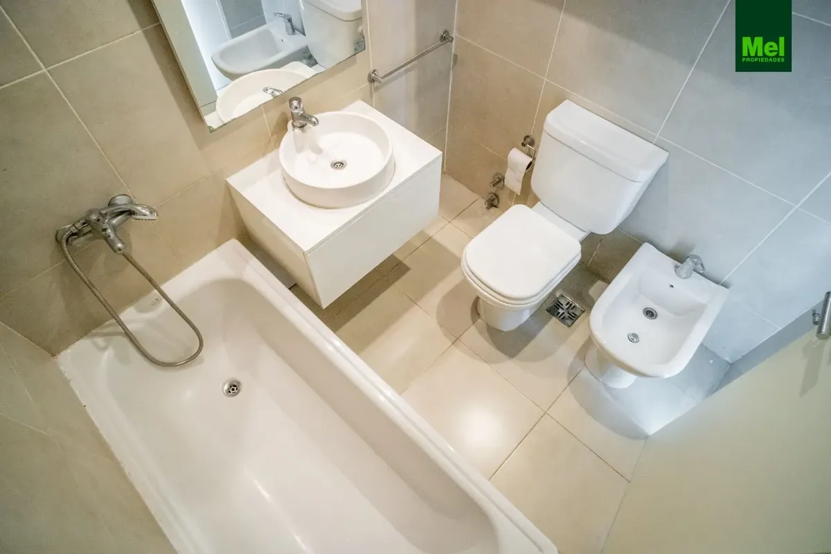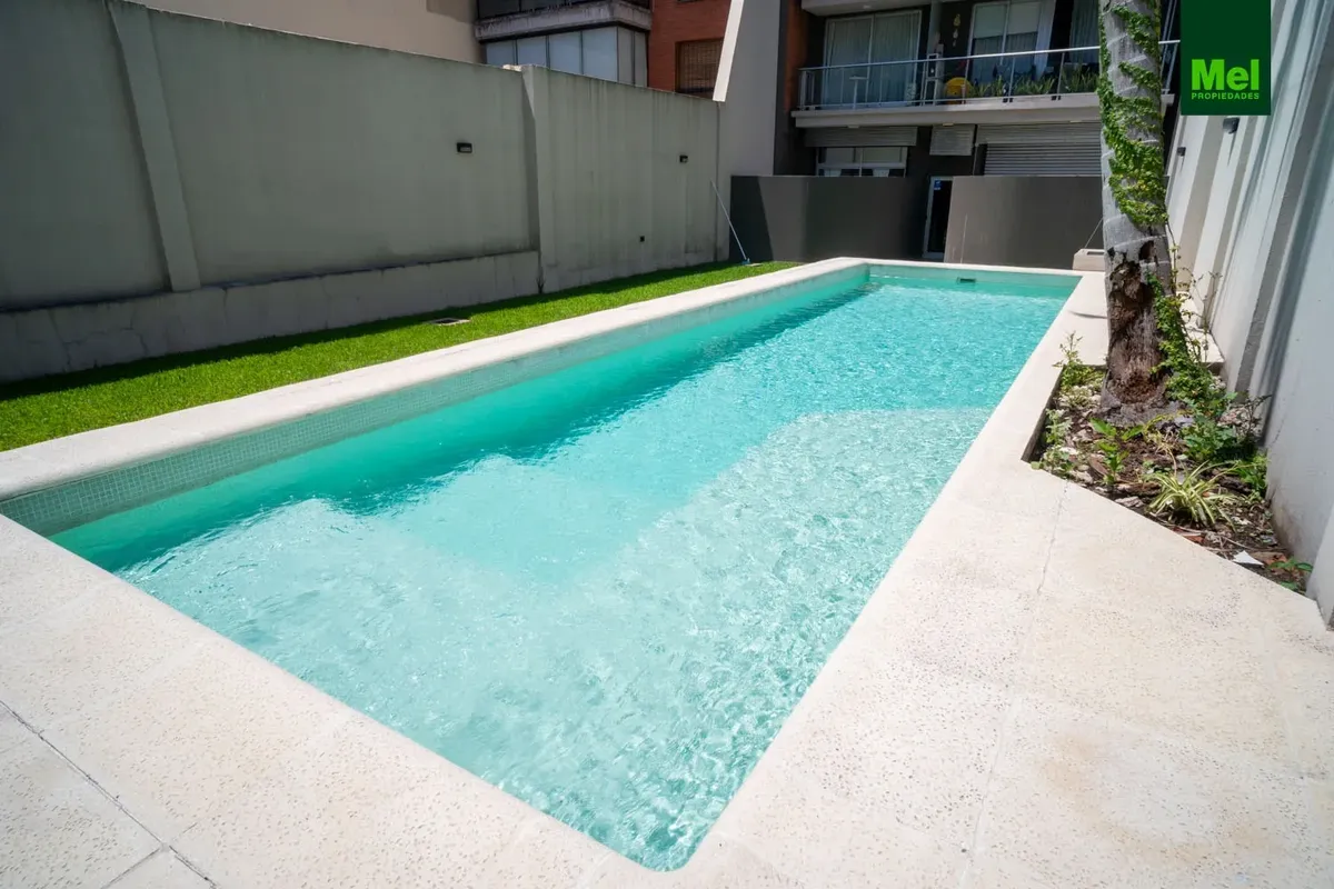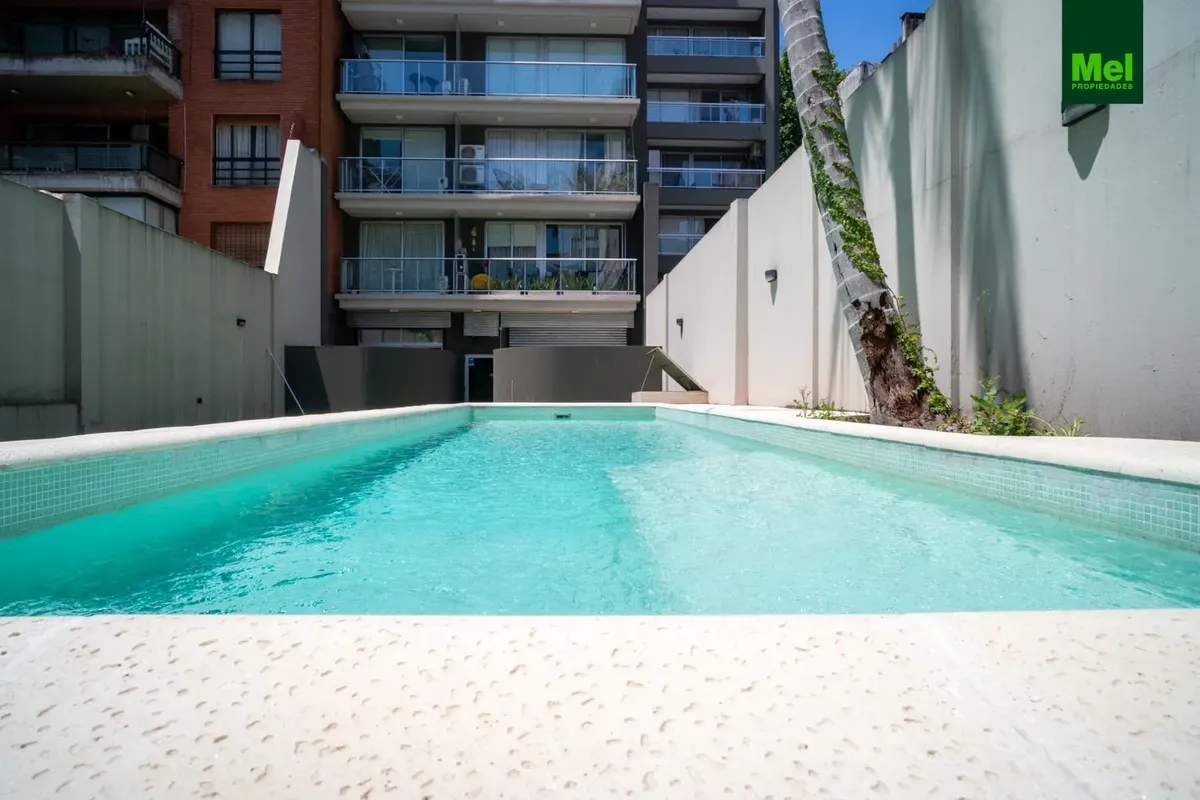 Квартира в Palermo на 2 комнаты с спальней в suite и гостевым туалетом. Площадь и этаж в объявлении не указаны. В здании есть прачечная, бассейн, сад, общая гостиная для жильцов, солярий и зона гриля. Условия аренды: подтверждённые доходы, гарантия от лица из CABA (близкий родственник) или залог-страховка аренды; предусмотрена индексация раз в квартал по IPC. Возможно проживание с домашним животным.