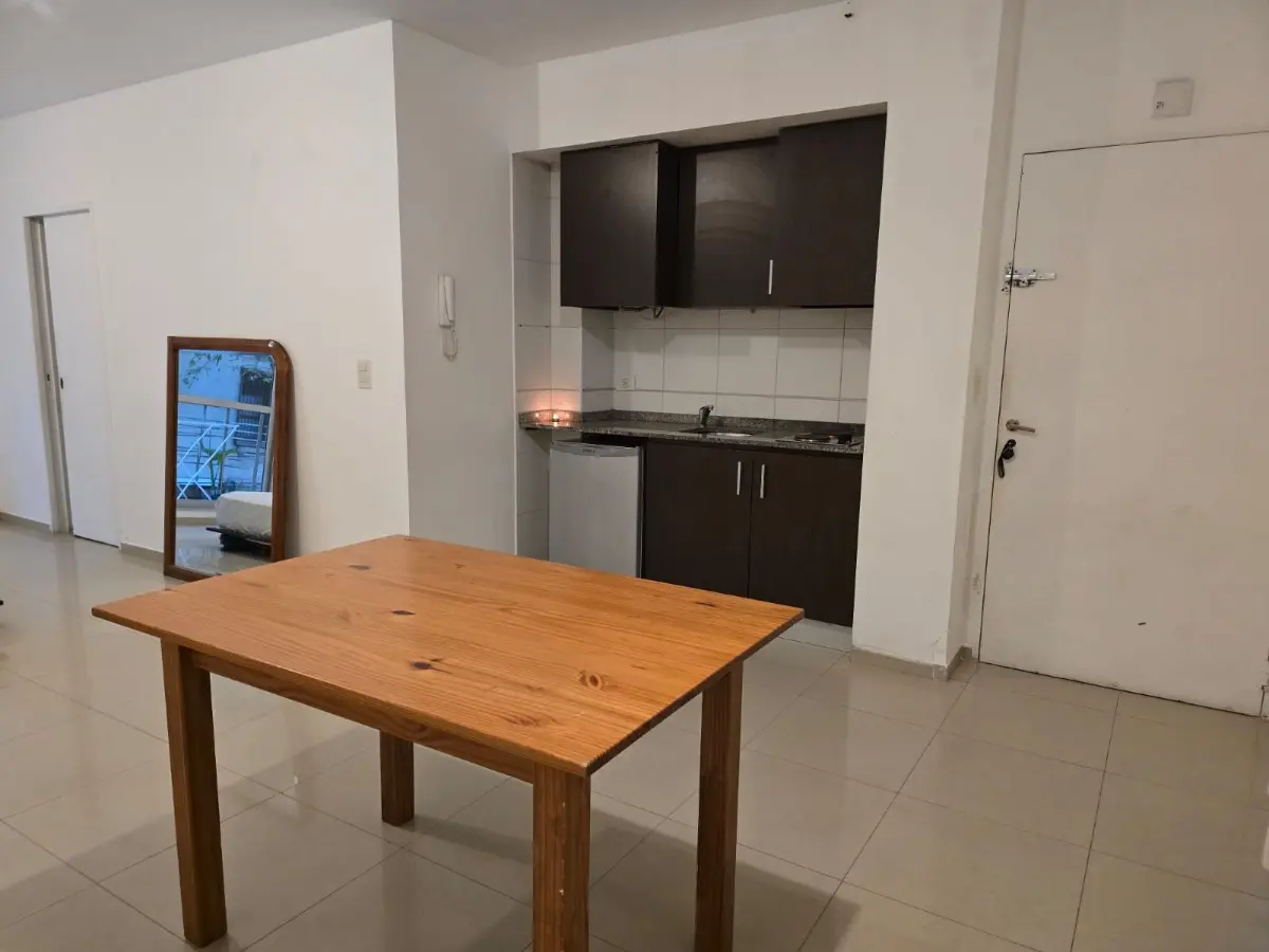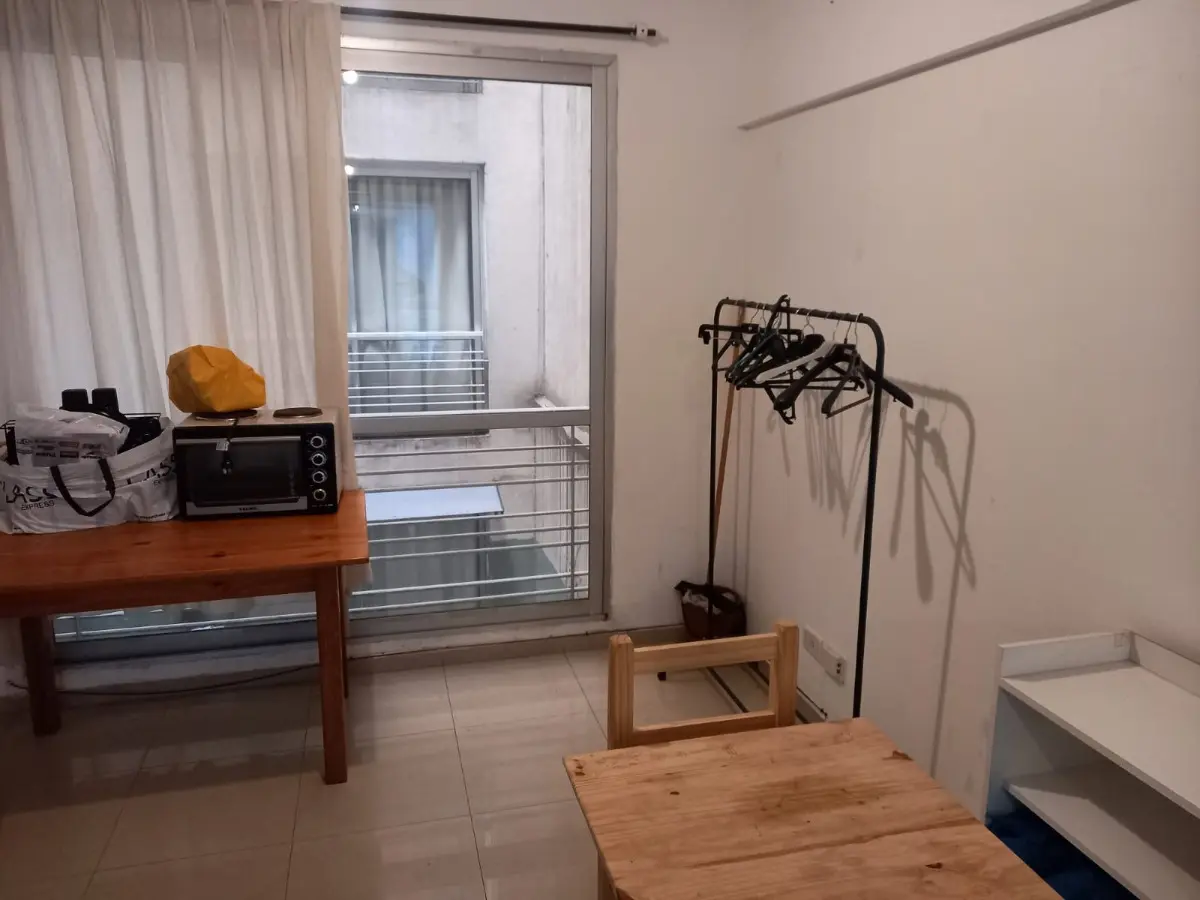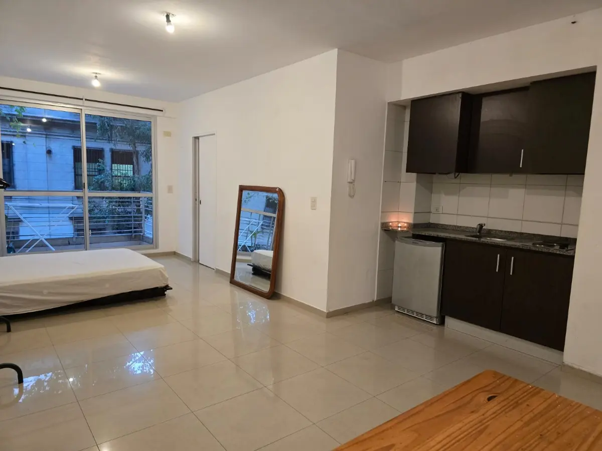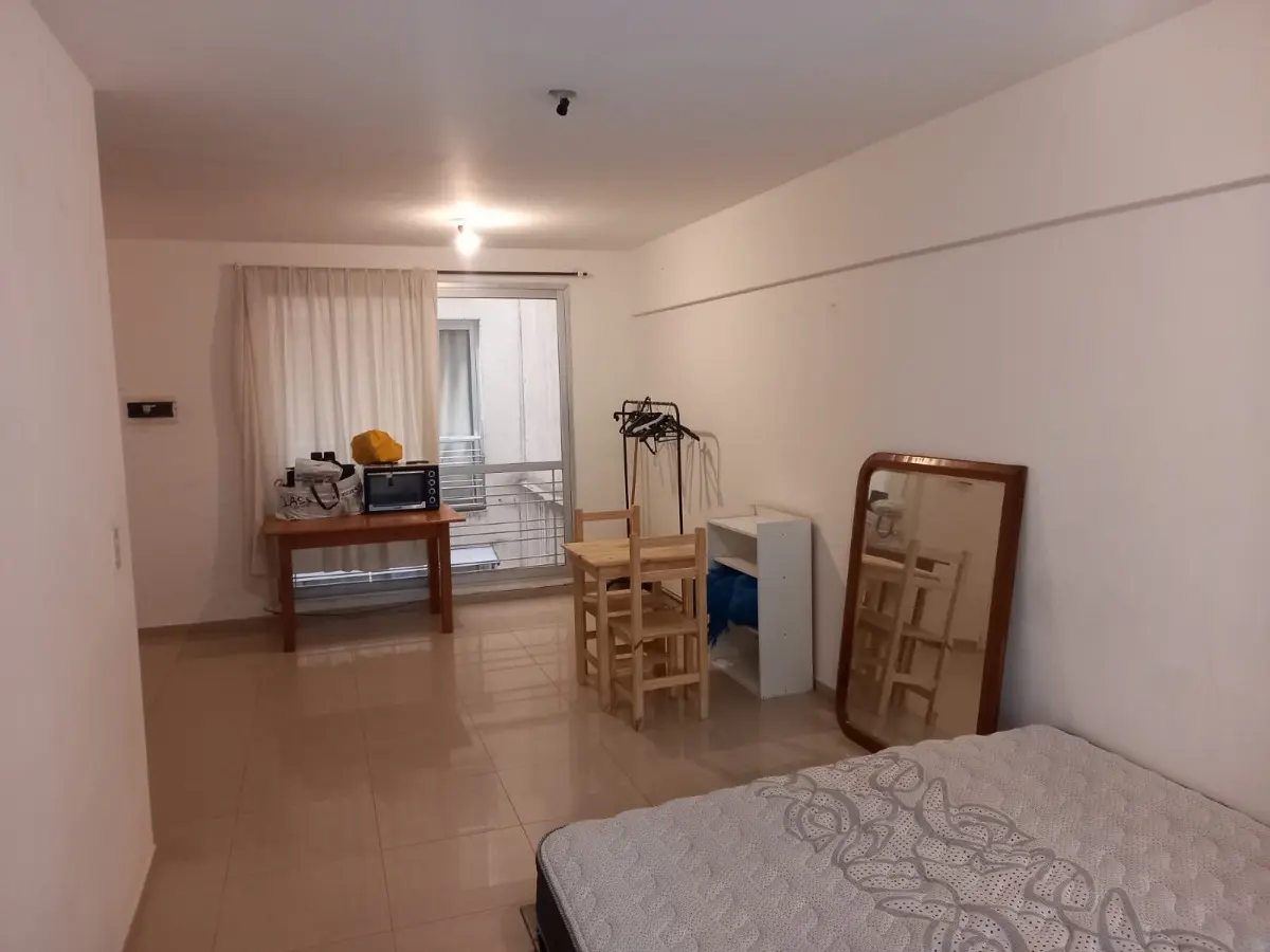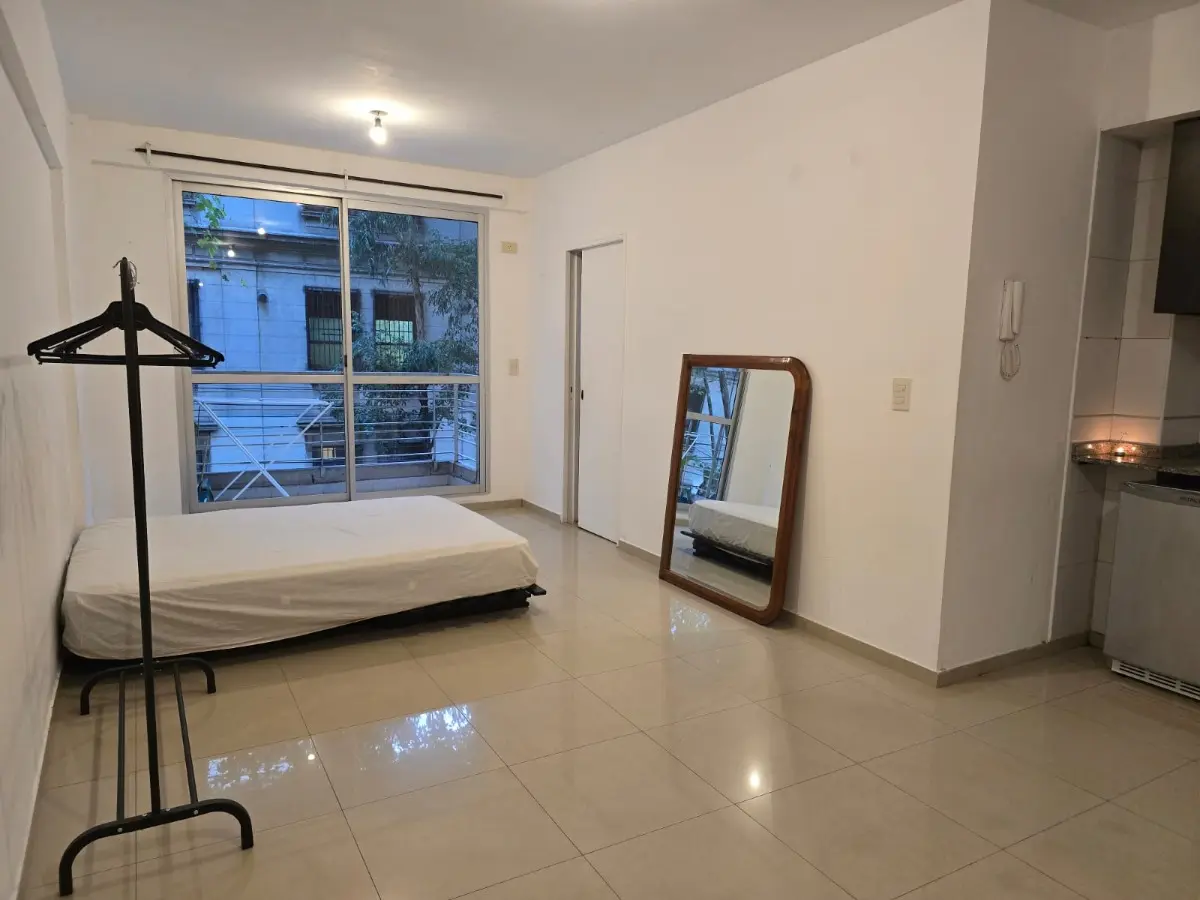 Квартира-студия площадью не указана, окна на улицу, с балконом. Планировка делится: с оконным балконом с двух концов. Полу-меблирована: кровать и 2 стола. В здании есть laundry, терраса, зона гриля, бассейн с гидромассажем (jacuzzi), солярий с настилом (deck). В 3 кварталах от Subte D, станция Palermo, и станции Palermo Ferrocarril San Martín; в 2 кварталах от Av. Santa Fe, Av. Juan B. Justo и Polo Científico; в 4 кварталах от Plaza Italia и Predio Sociedad Rural.