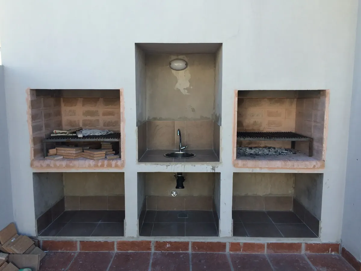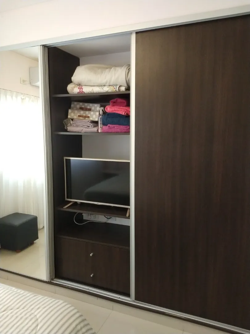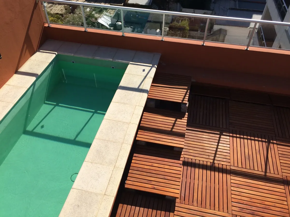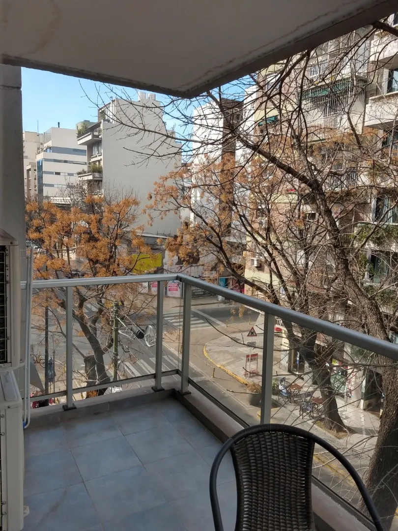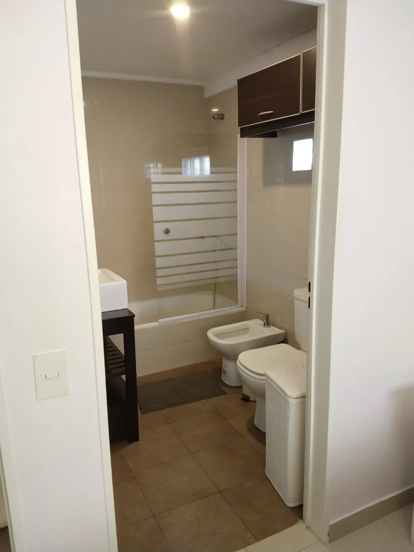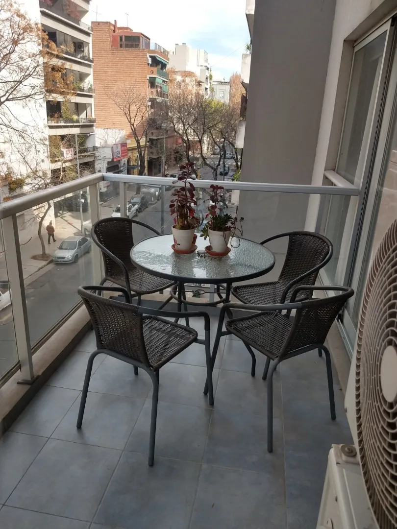 Полуэтажная квартира (semipiso) в Palermo с видом на улицу и балконом. В квартире есть полностью меблированная гостиная-столовая с интегрированной кухней, гостевой туалет и спальня с ванной комнатой (suite) с гардеробом и телевизором. Отопление обеспечивается индивидуальным котлом с 3 радиаторами; предусмотрены отопленные полотенцесушитель в основной ванной. Кухня с техникой Ariston, окна со стеклопакетами. Здание включает общую гостиную для жильцов (SUM) с крытой площадкой, двумя зонами гриля,