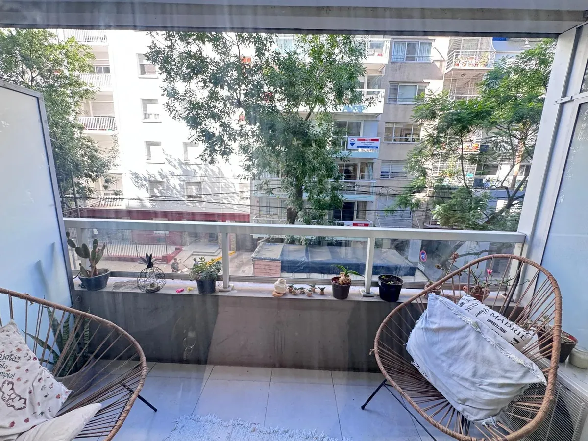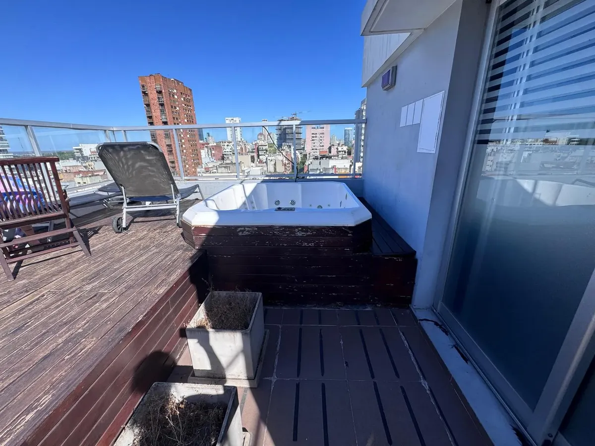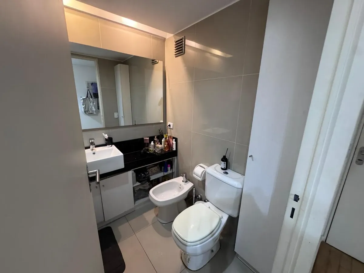Квартира-студия в Palermo, Las Cañitas, в аренду. Площадь, этаж и тип окон в объявлении не указаны. Кухня встроенная с оборудованием; установлен кондиционер с режимами охлаждения/обогрева и лучистое отопление (losa radiante). В здании предусмотрены бассейн, тренажёрный зал, SUM с зоной гриля, прачечная, круглосуточная охрана и зелёные зоны; указано, что коммунальные платежи включают воду, отопление и обслуживание amenities.