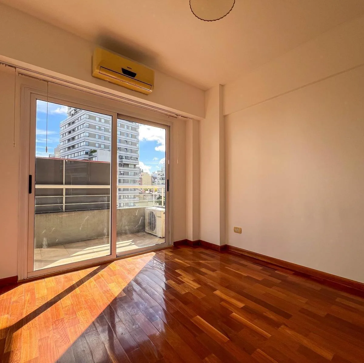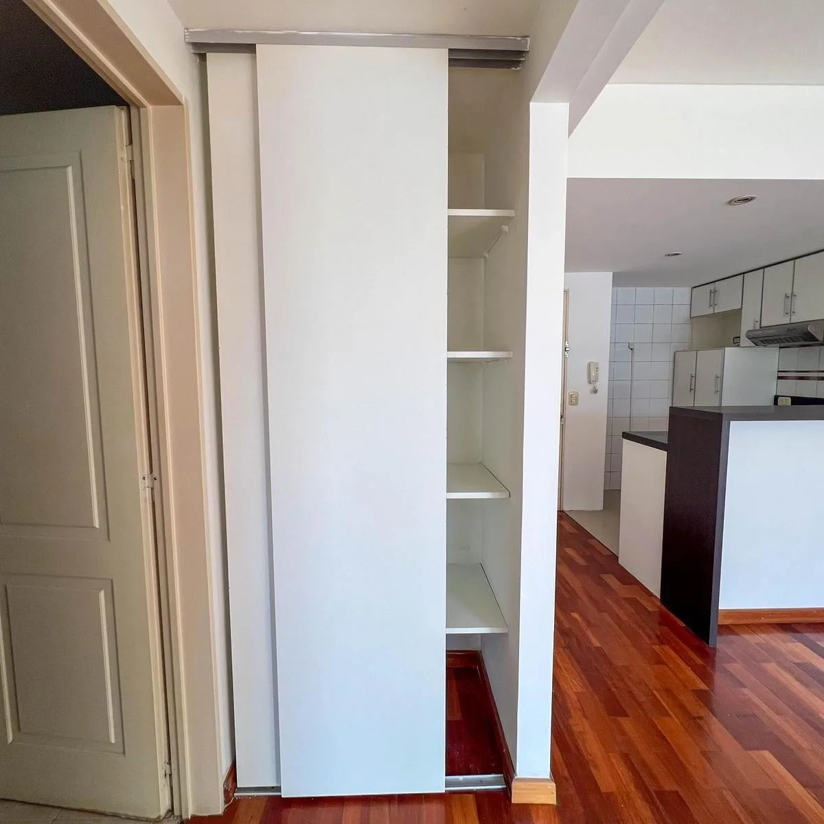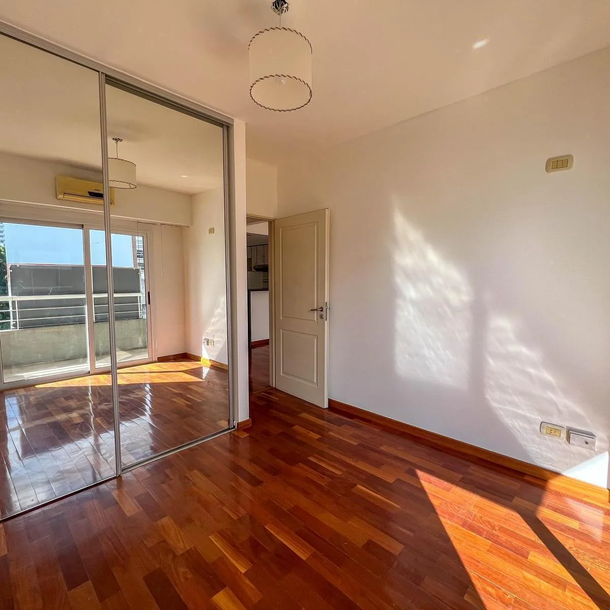 Квартира с 2 комнатами площадью не указана в Caballito, окна на улицу, ориентация на север. Жилая зона с выходом на просторный балкон, отдельная спальня с встроенным шкафом. В гостиной и спальне установлены кондиционеры (холод/тепло), полы из натурального дерева. Кухня интегрирована и предусмотрено подключение для стиральной машины. Полная ванная с ванной, есть центральная горячая вода и дополнительный шкаф в коридоре. Коммунальные платежи за апрель с оплатой до мая 2026 указаны в объявлении; по
