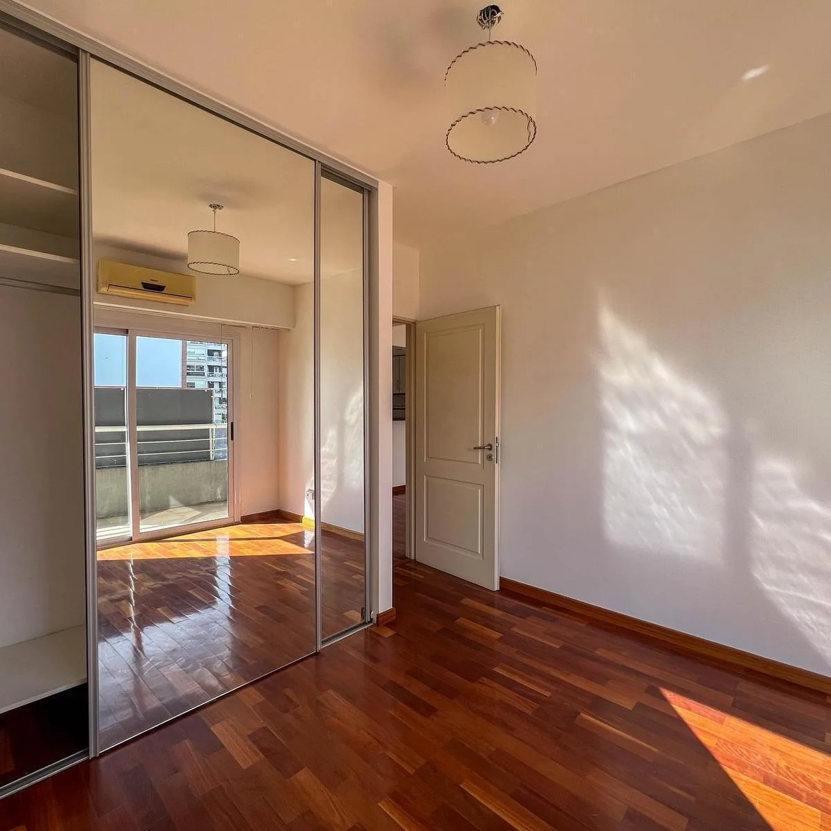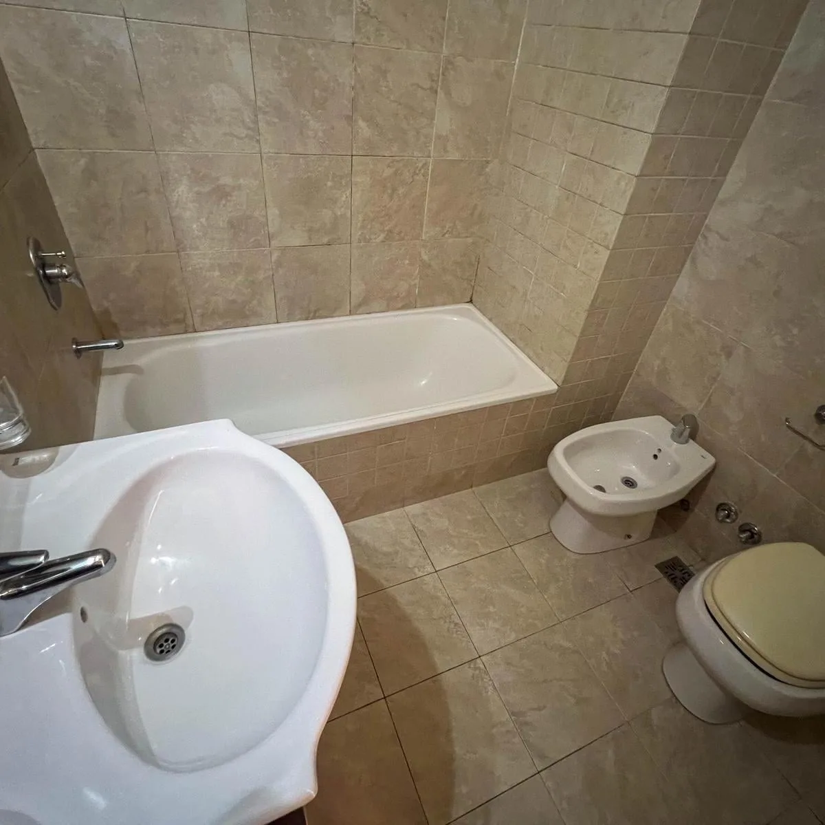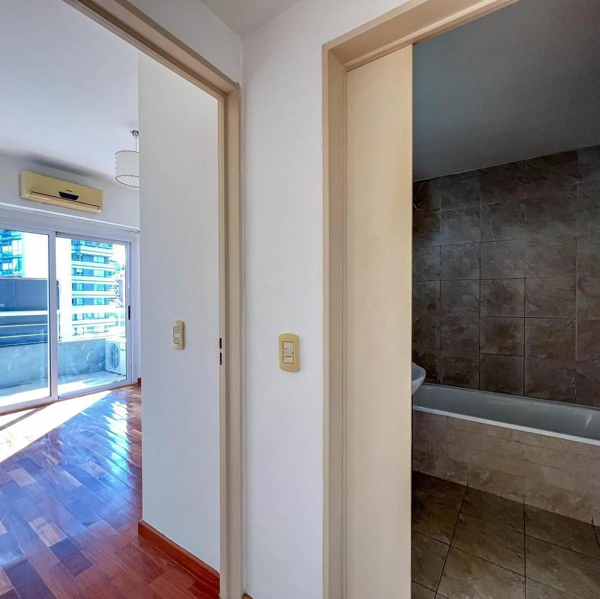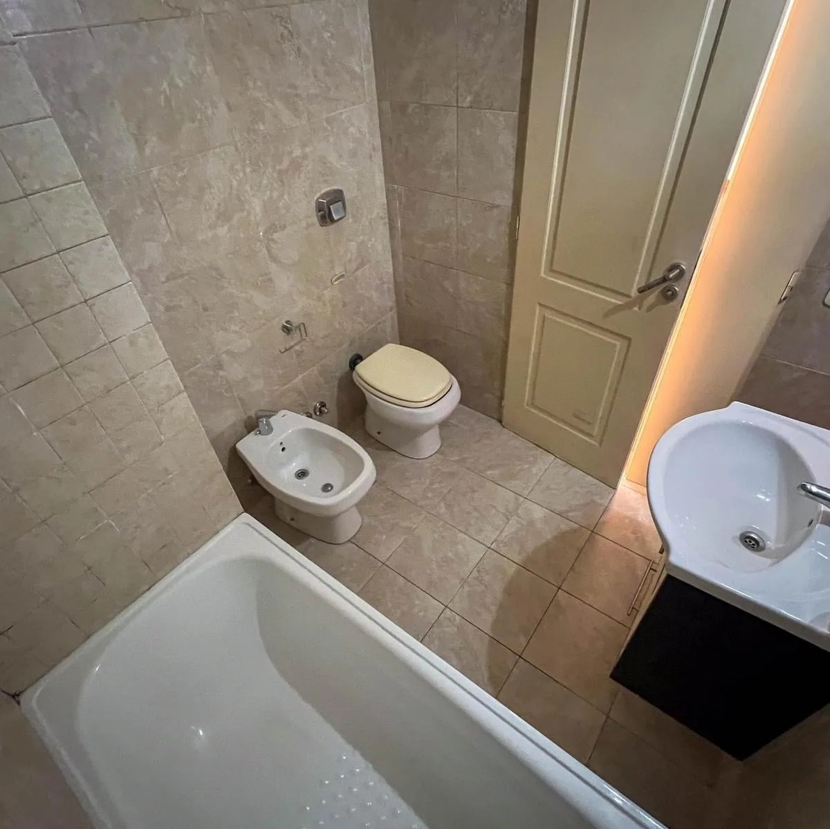 Квартира с 2 комнатами площадью не указана в Caballito, окна на улицу, ориентация на север. Жилая зона с выходом на просторный балкон, отдельная спальня с встроенным шкафом. В гостиной и спальне установлены кондиционеры (холод/тепло), полы из натурального дерева. Кухня интегрирована и предусмотрено подключение для стиральной машины. Полная ванная с ванной, есть центральная горячая вода и дополнительный шкаф в коридоре. Коммунальные платежи за апрель с оплатой до мая 2026 указаны в объявлении; по