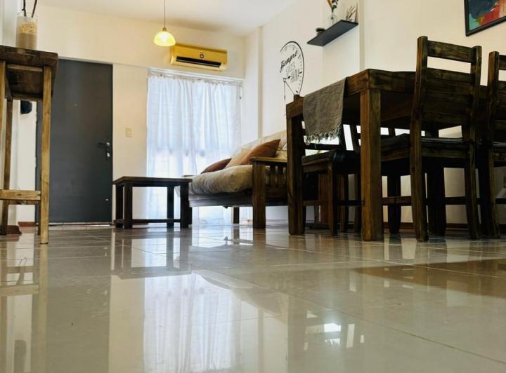 Квартира с отдельным входом (PH) площадью 2 комнаты в Parque Chas, с внутренним двориком. Планировка включает гостиную-столовую с интегрированной кухней, спальню с встроенным шкафом и полноценную ванную комнату; установлен кондиционер. Квартира с мебелью и оборудованием, с постельными принадлежностями, доступ к внутреннему дворику. Срок аренды от 3 до 12 месяцев с возможностью продления. Коммунальные платежи здания включены в стоимость; интернет, AYSA и электроэнергия оплачиваются арендатором.