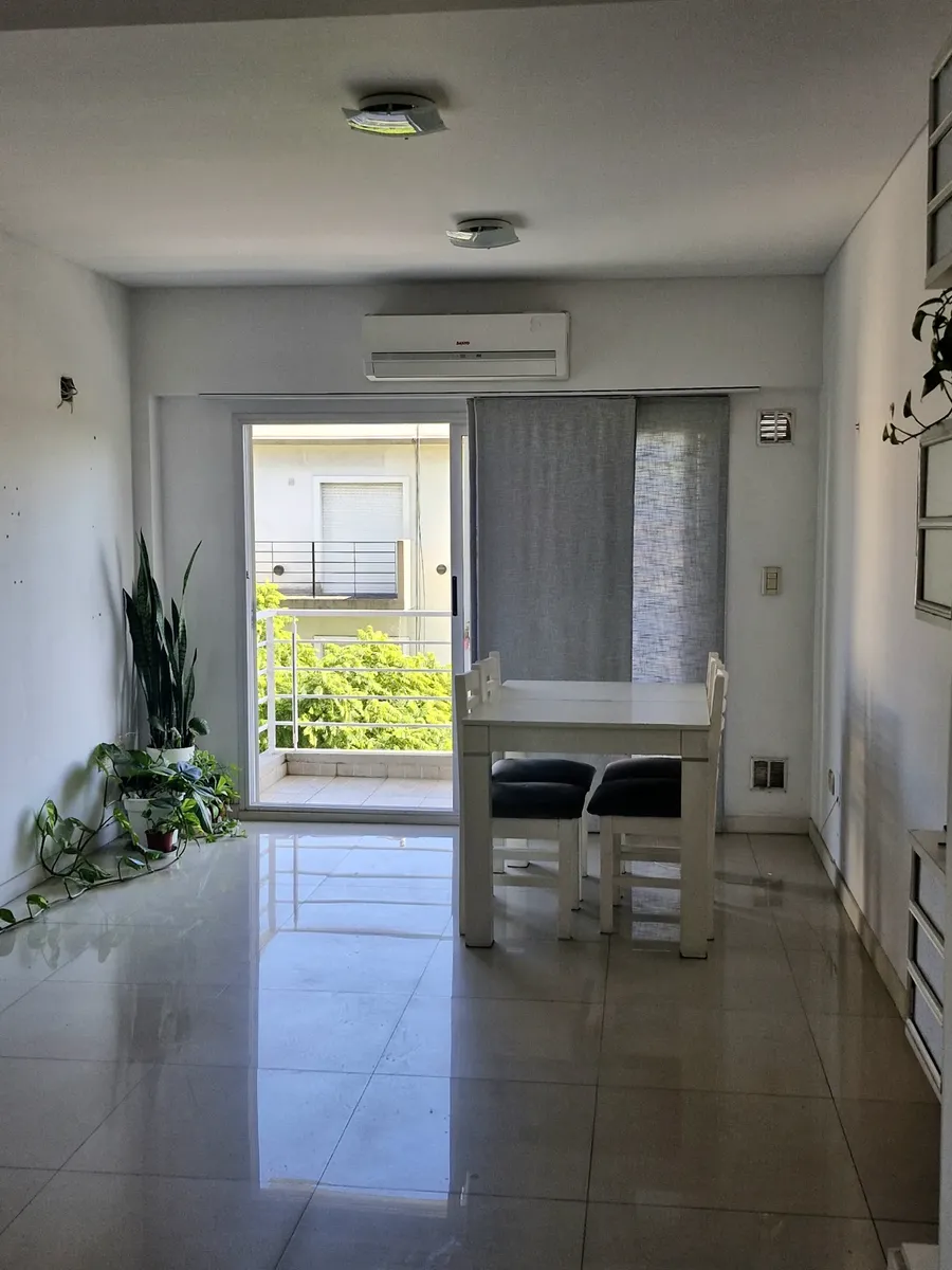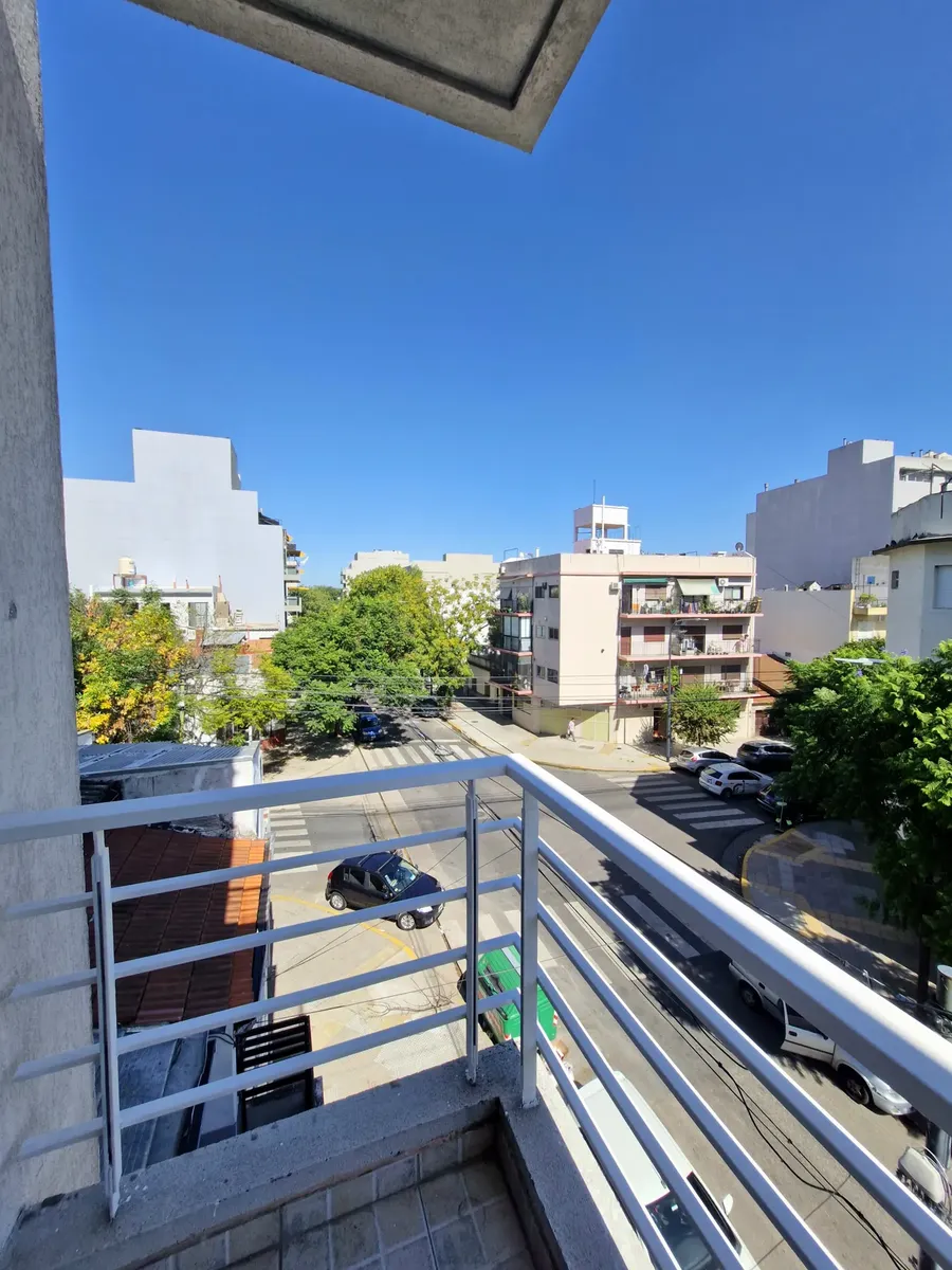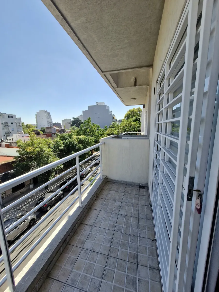 Квартира в Parque Chas, 46 m² общих, 40 m² крытых, в жилом здании примерно 10 лет. Окна на улицу, два балкона: один из гостиной, второй из спальни. В квартире есть кондиционер в гостиной и откидной потолочный вентилятор в спальне; кухня интегрирована в гостиную-столовую, в ванной установлена ванна. В спальне есть встроенные шкафы. В здании есть лифт и общая терраса. Аренда составляет $850.000 в месяц; коммунальные платежи здания за март 2026 — $210.000, включая расходы на воду. ABL — $15.000, оп