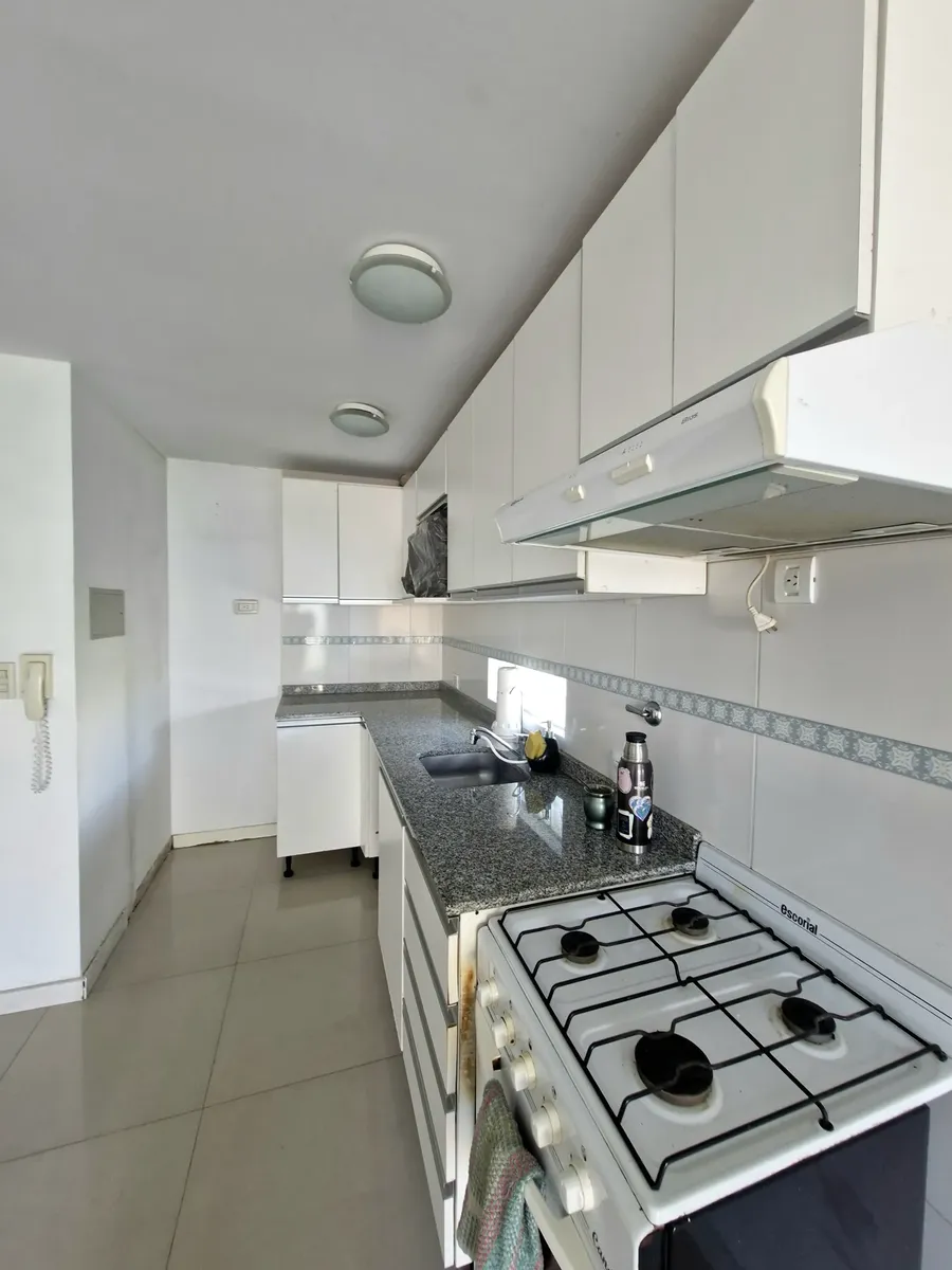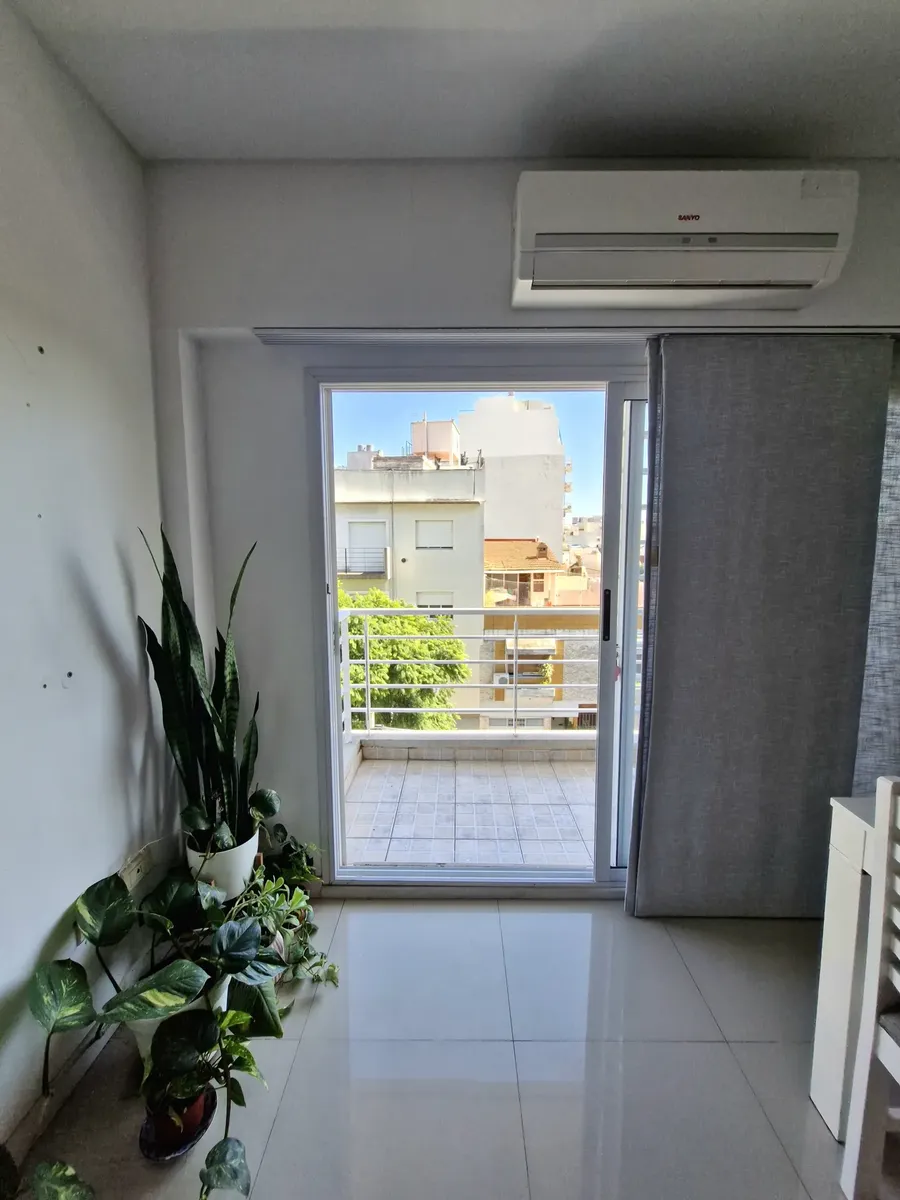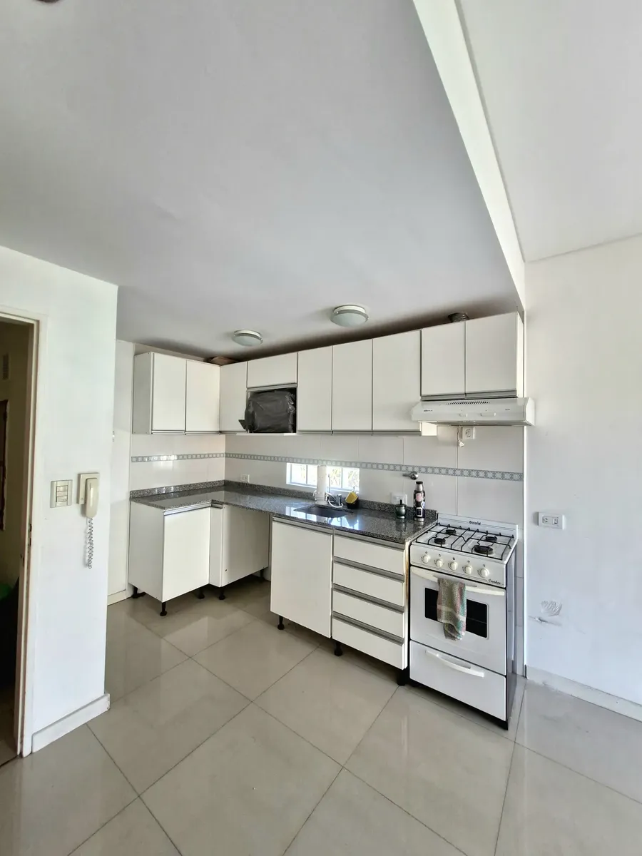 Квартира в Parque Chas, 46 m² общих, 40 m² крытых, в жилом здании примерно 10 лет. Окна на улицу, два балкона: один из гостиной, второй из спальни. В квартире есть кондиционер в гостиной и откидной потолочный вентилятор в спальне; кухня интегрирована в гостиную-столовую, в ванной установлена ванна. В спальне есть встроенные шкафы. В здании есть лифт и общая терраса. Аренда составляет $850.000 в месяц; коммунальные платежи здания за март 2026 — $210.000, включая расходы на воду. ABL — $15.000, оп