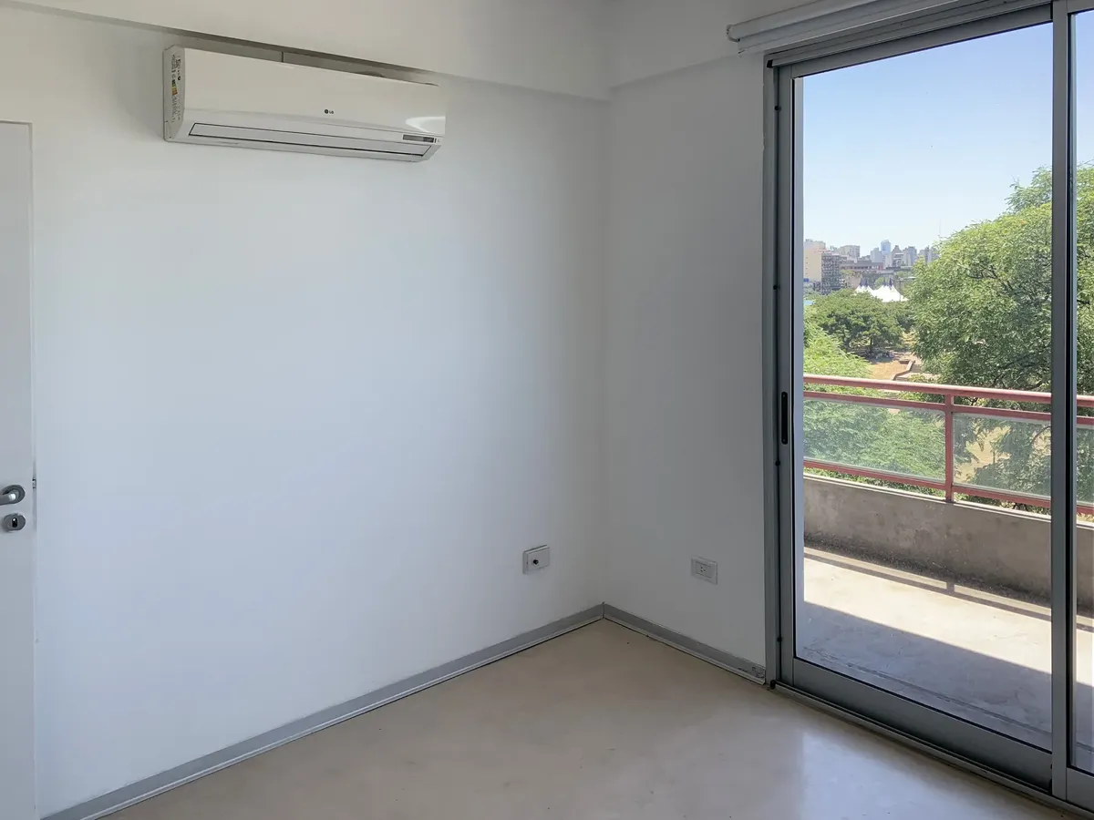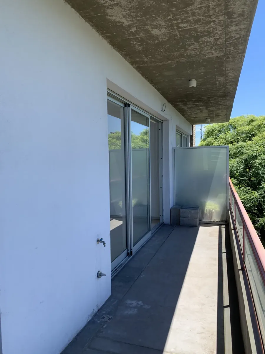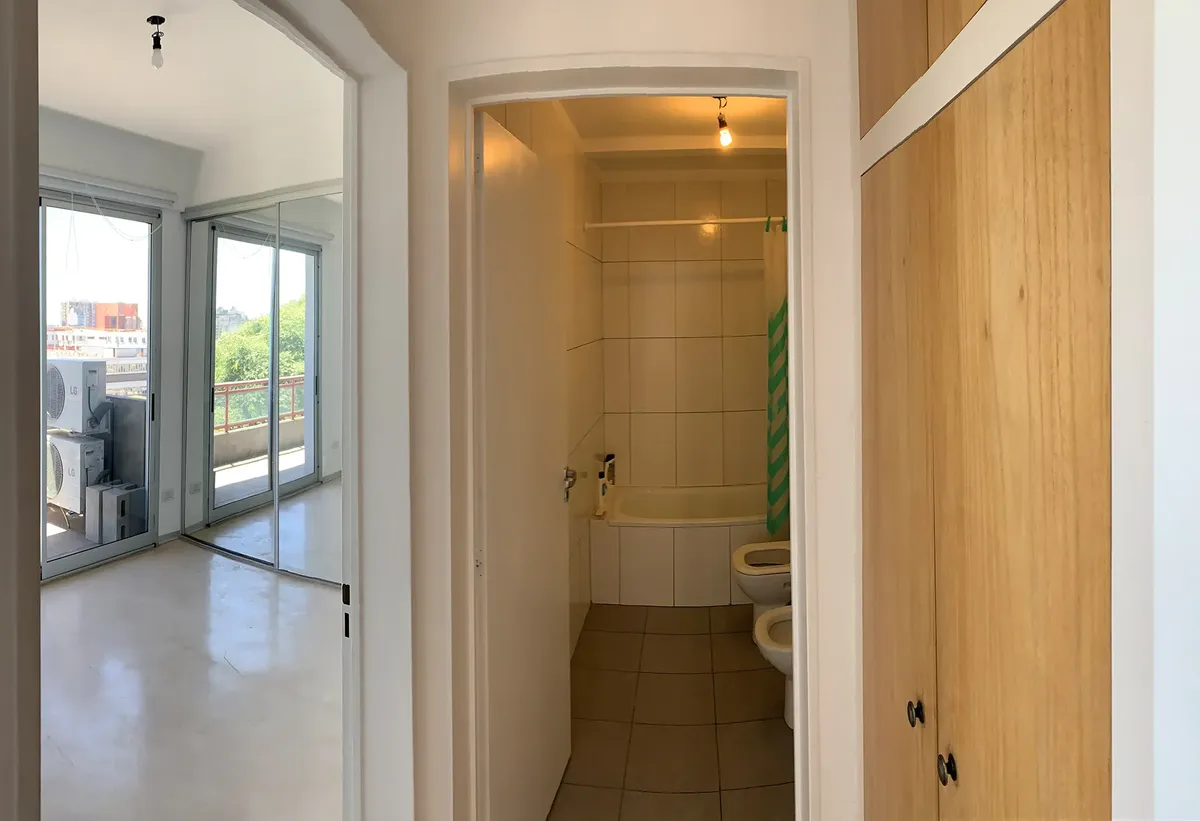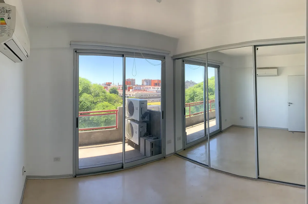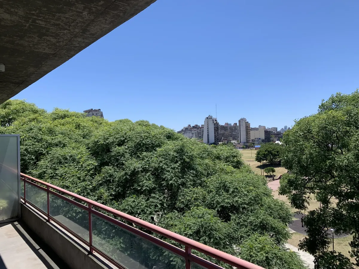 Квартира с 2 комнатами в Parque Patricios, окна на улицу, ориентация на восток. Площадь и этаж в объявлении не указаны; балкон во всю ширину. В квартире гостиная и спальня с рольставнями, отдельная кухня и полная ванная комната. Центральное горячее водоснабжение, кондиционер холод/тепло в гостиной и в спальне. Закреплённое парковочное место, терраса с зоной гриля и прачечная. Квартира пригодна для профессионального использования; здание построено около 10 лет назад. Расположена на Av. Brasil, на
