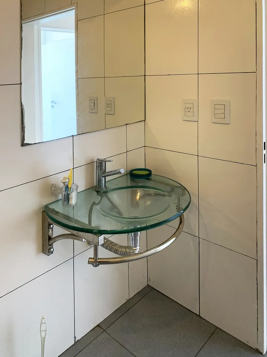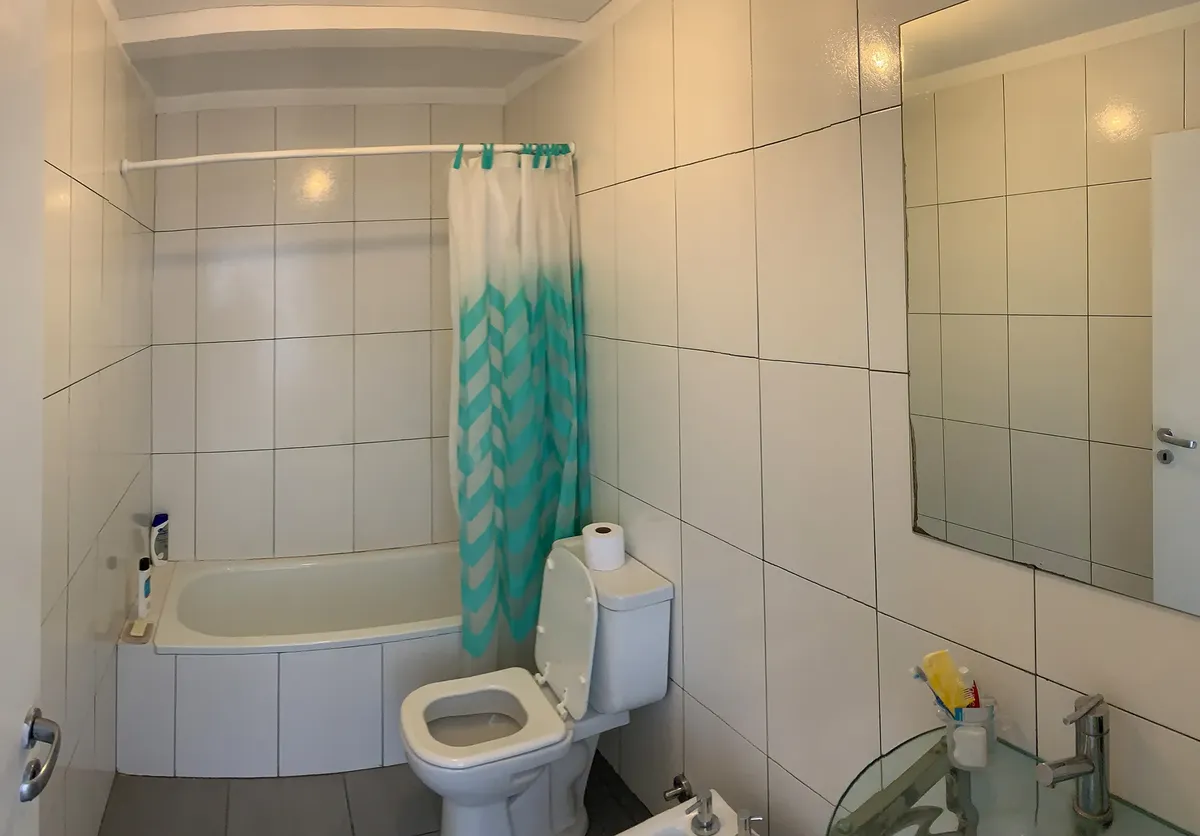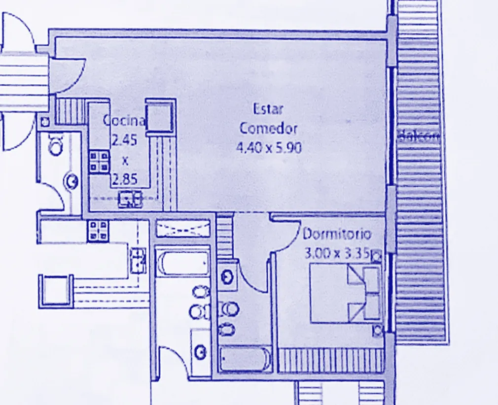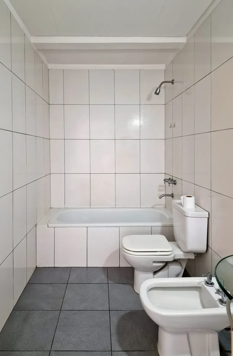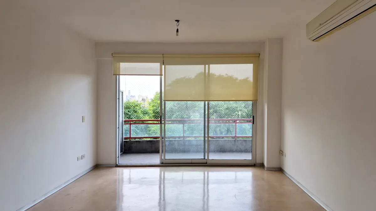 Квартира с 2 комнатами в Parque Patricios, окна на улицу, ориентация на восток. Площадь и этаж в объявлении не указаны; балкон во всю ширину. В квартире гостиная и спальня с рольставнями, отдельная кухня и полная ванная комната. Центральное горячее водоснабжение, кондиционер холод/тепло в гостиной и в спальне. Закреплённое парковочное место, терраса с зоной гриля и прачечная. Квартира пригодна для профессионального использования; здание построено около 10 лет назад. Расположена на Av. Brasil, на