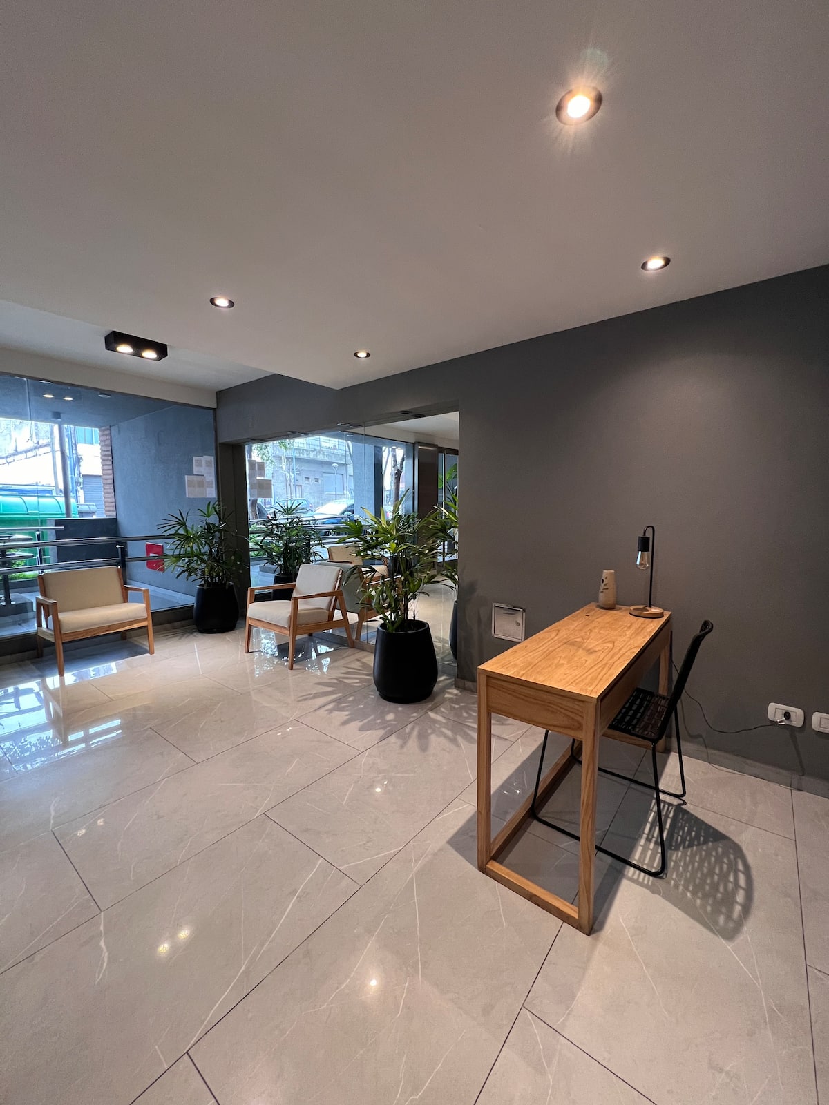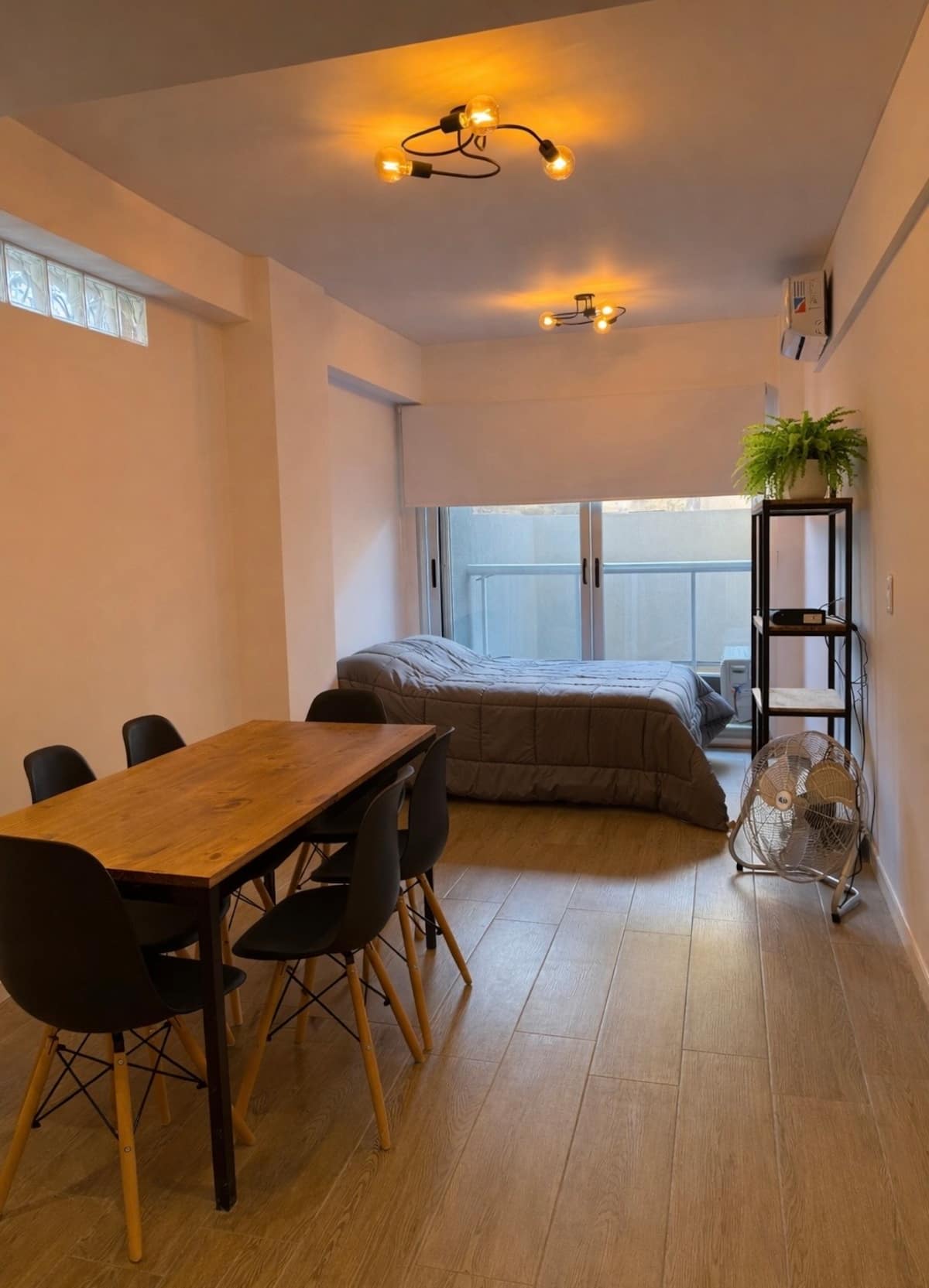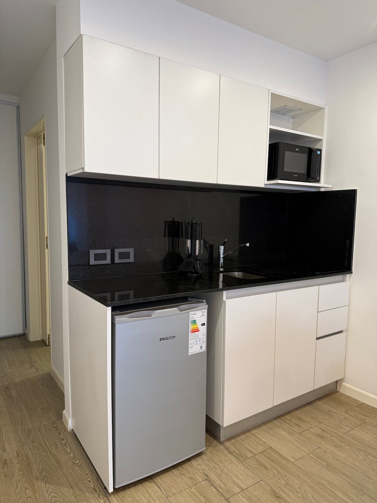 Квартира-студия площадью 1 спальня не указана, новая. Расположена в здании с террасой; из окон открывается вид на город. Студия относится к формату monoambiente.