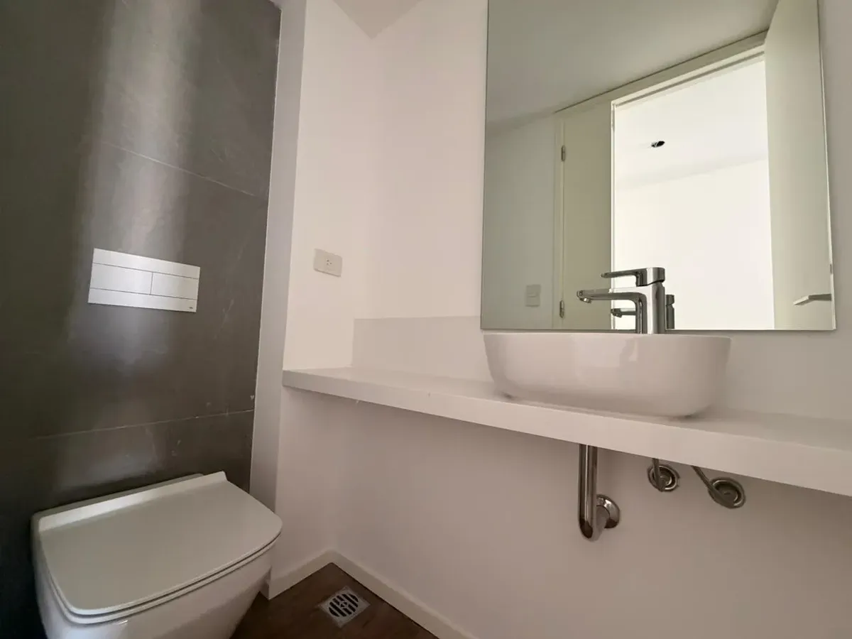 Квартира в Puerto Madero в квартале Quartier del Bajo, размещение на 1 спальню. Спальня с ванной комнатой en suite и гардеробной. Гостиная-столовая с встроенной кухней выходит на балкон, есть гостевой туалет. В полуинтегрированной кухне установлена мебель нижнего яруса. В здании предусмотрены бассейн, общая гостиная для жильцов (SUM), зона гриля, подогреваемый бассейн, тренажёрный зал, сауна, массажный кабинет, гидромассаж, прачечная и круглосуточная охрана.