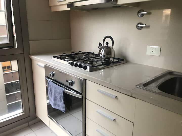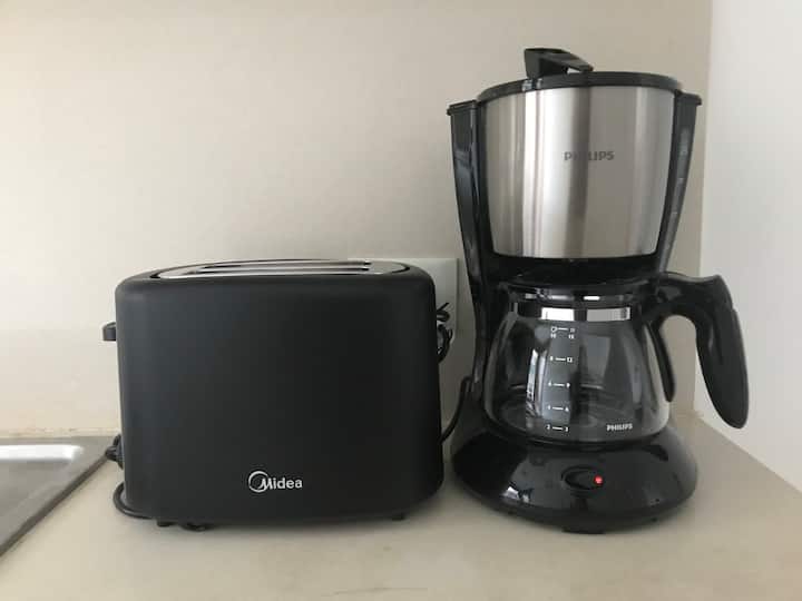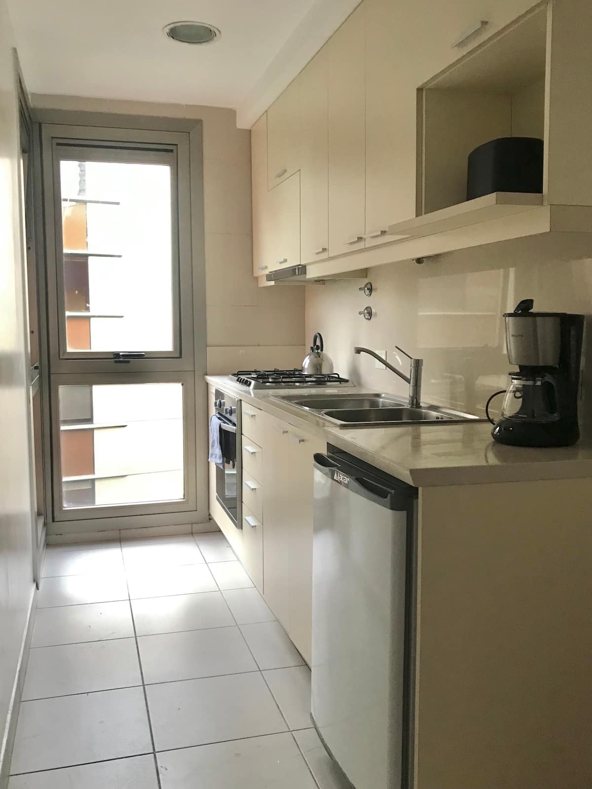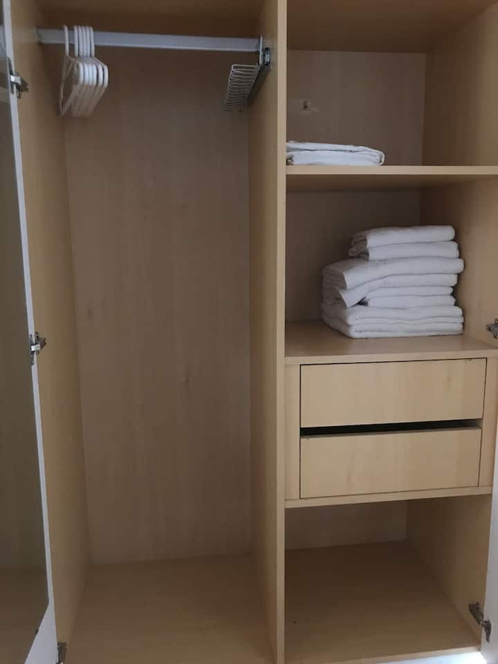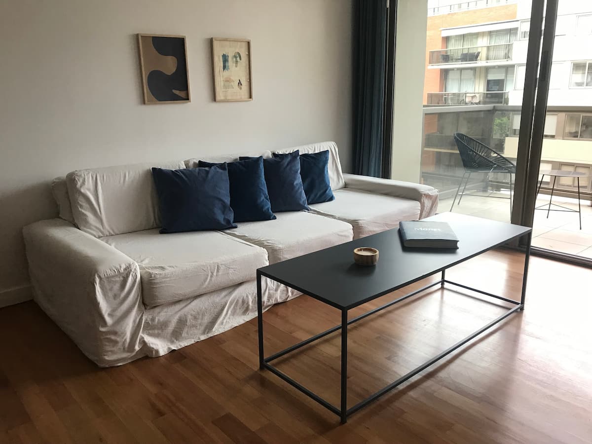 Квартира с 1 спальней расположена на 6-м этаже. Есть балкон с видом на внутренний двор квартала и бассейн. В здании предусмотрены тренажёрный зал, зона стирки и круглосуточная охрана.