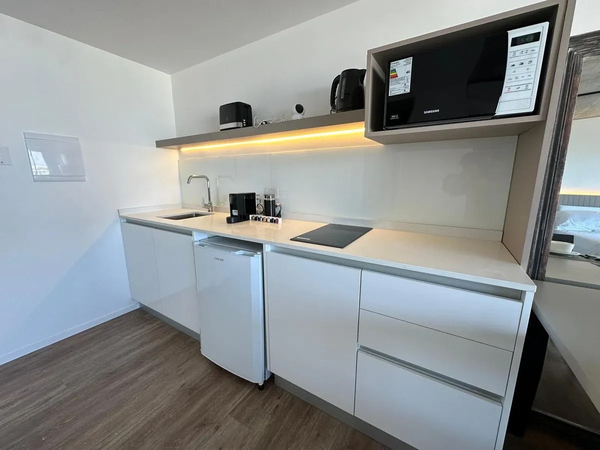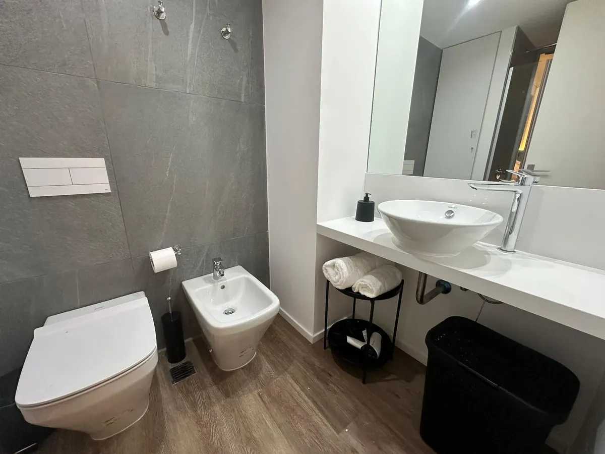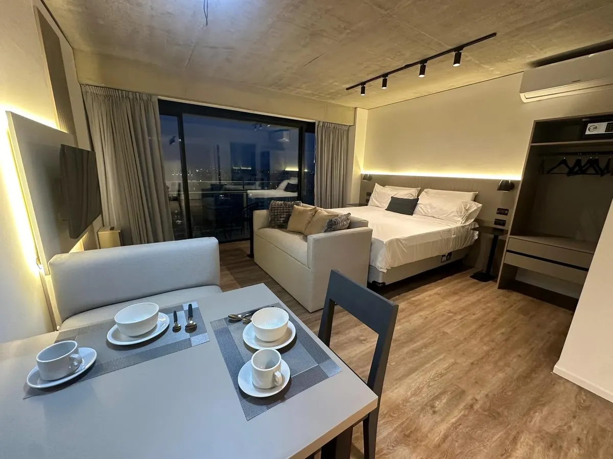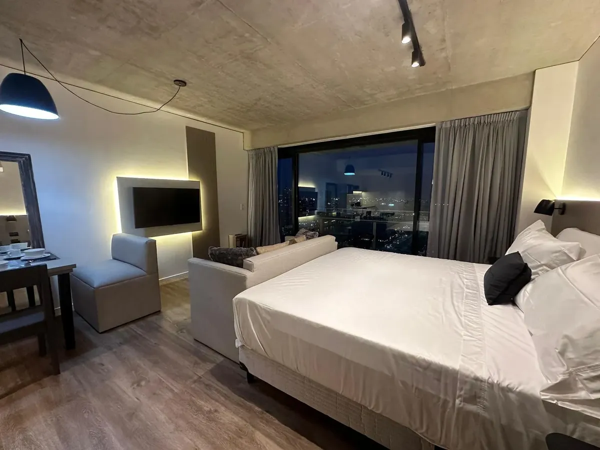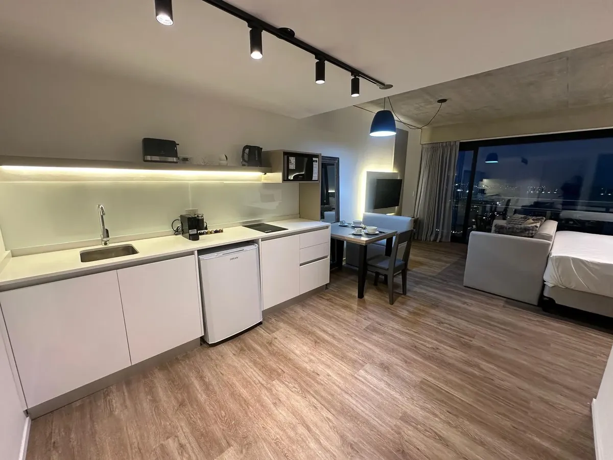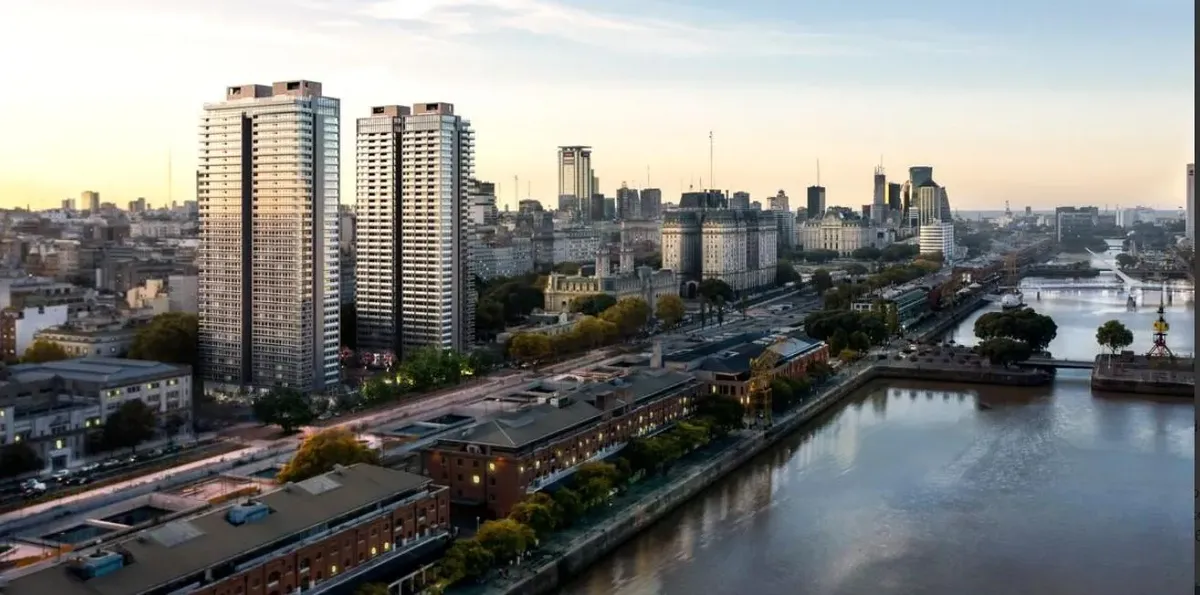 Квартира-студия площадью не указана, расположена на 30+ этаже в Quartier del Bajo, Puerto Madero, с балконом и панорамным видом на реку и город. Студия полностью меблирована и оборудована: полусопряжённая кухня с бытовой техникой Samsung и Electrolux, ванная комната, кофеварка Nespresso с Aeroccino, установлен сейф. Предусмотрены WiFi и Smart TV с доступом к платформам потокового вещания; предоставляется бельё. Срок аренды от 3 месяцев: USD 1.200 в месяц + коммунальные платежи здания.