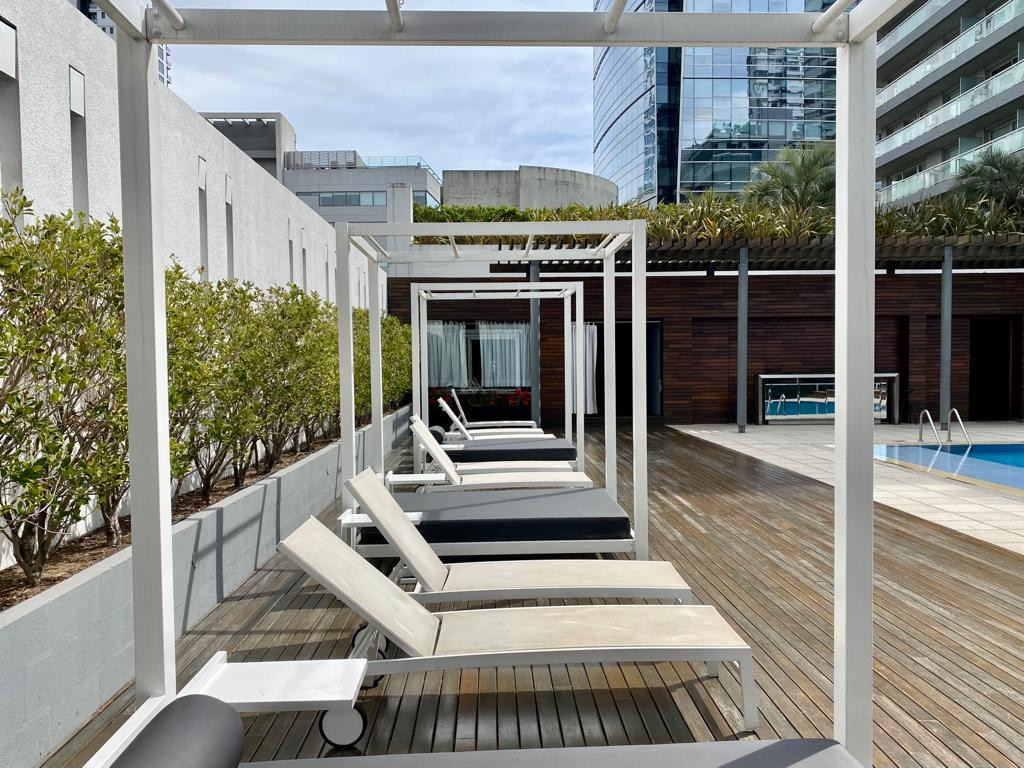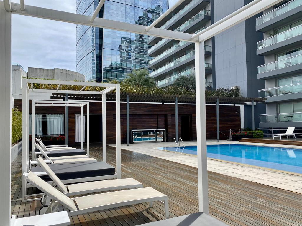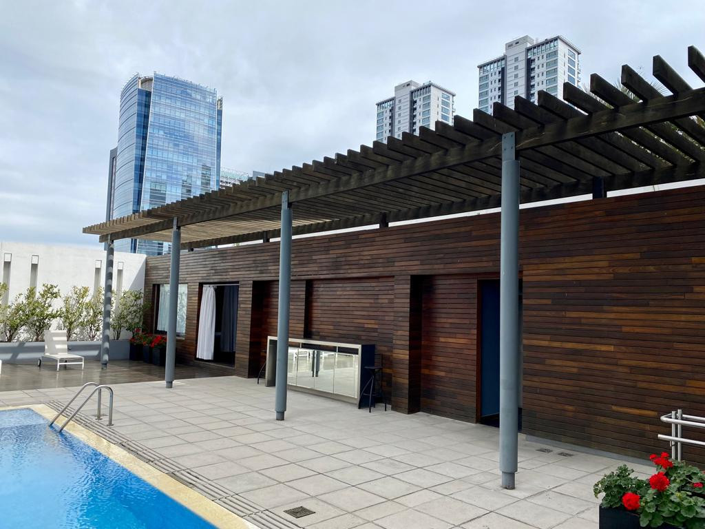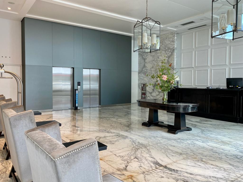 Квартира-студия площадью 55 m² с балконом и окнами на улицу, на высоком этаже. Полная ванная комната, встроенная кухня. Установлен сплит-кондиционер (холод/тепло). В здании предусмотрены общие зоны и зелёные территории. Условия аренды: внести за год вперёд, общая сумма USD10.000.