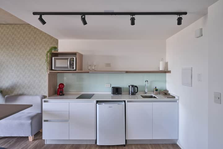 Студия в Puerto Madero, новая. Есть балкон с видом на город или реку. Кухня полностью оборудована современной техникой, ванная комната с отделкой высокого качества. В здании предусмотрены охрана 24 часа, открытый бассейн, джакузи и сауна, а также оборудованный тренажёрный зал. Джакузи не работает до дальнейшего уведомления.