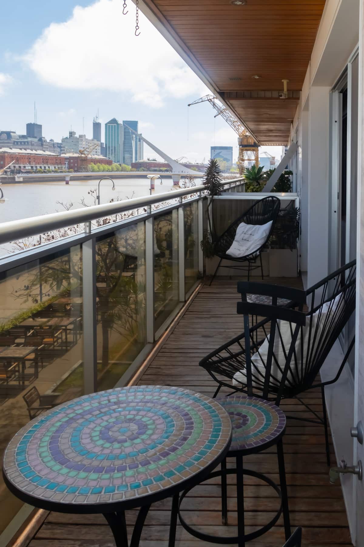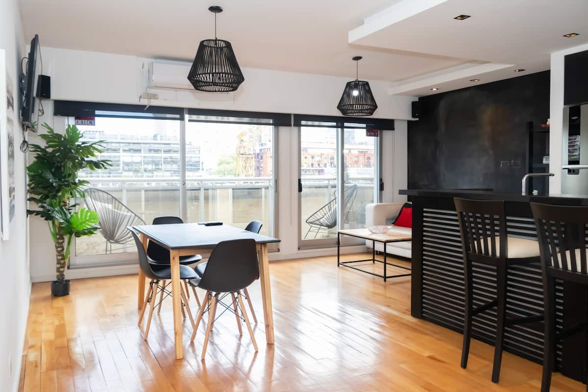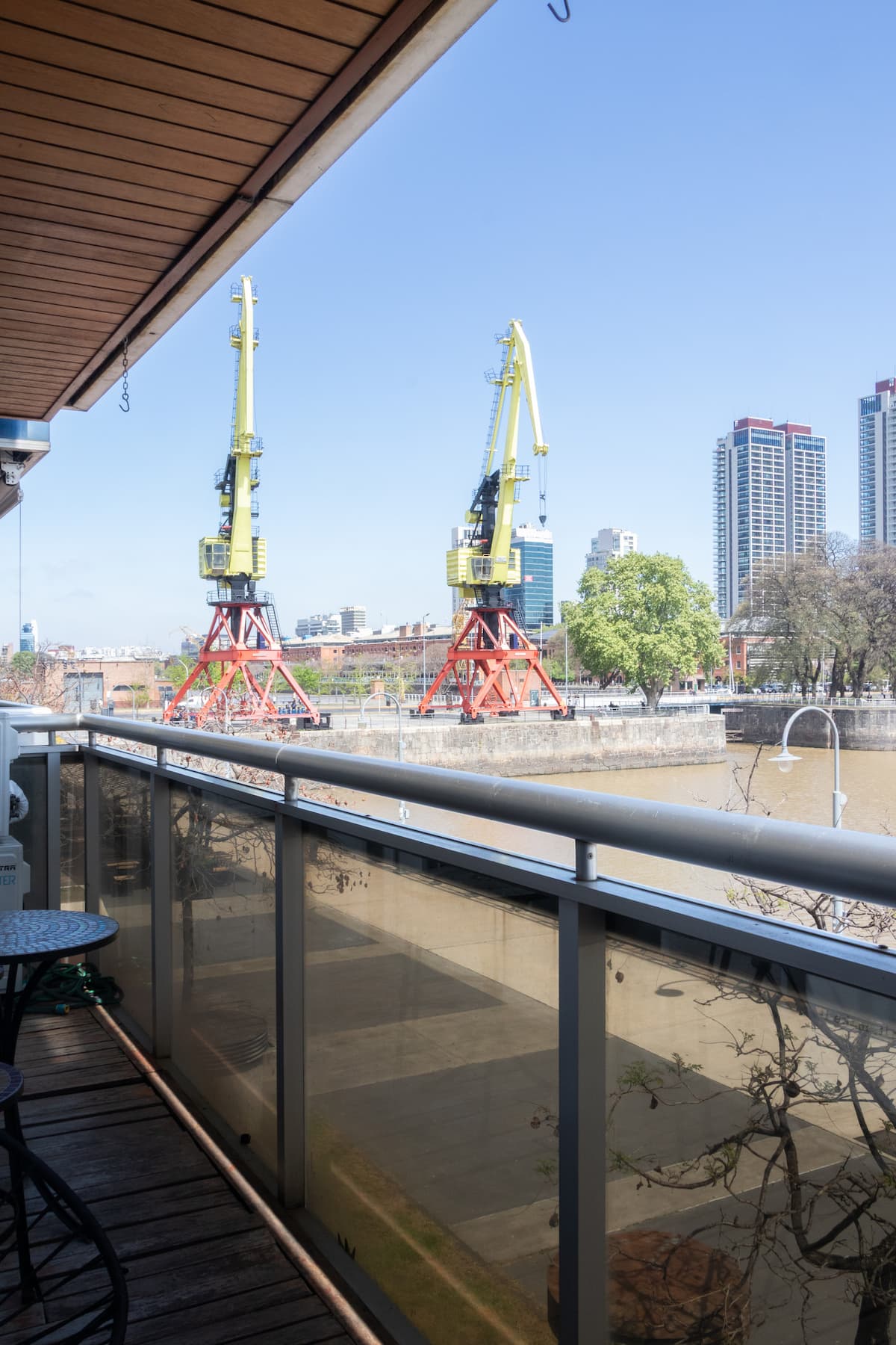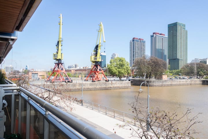 Квартира в Puerto Madero с видами на причал. Апартаменты полностью оборудованы и декорированы. В здании есть тренажёрный зал, сауна и два бассейна, доступ через гараж с кодом доступа 123456 и выходом на центральную зону на 4-м этаже.