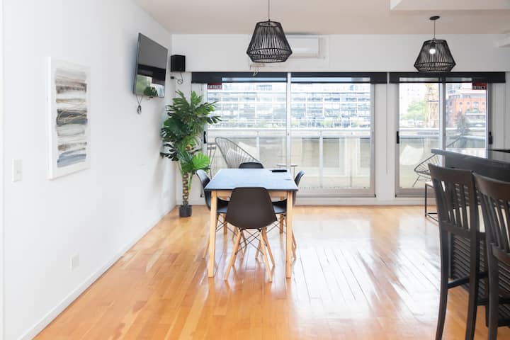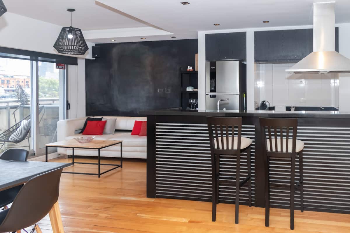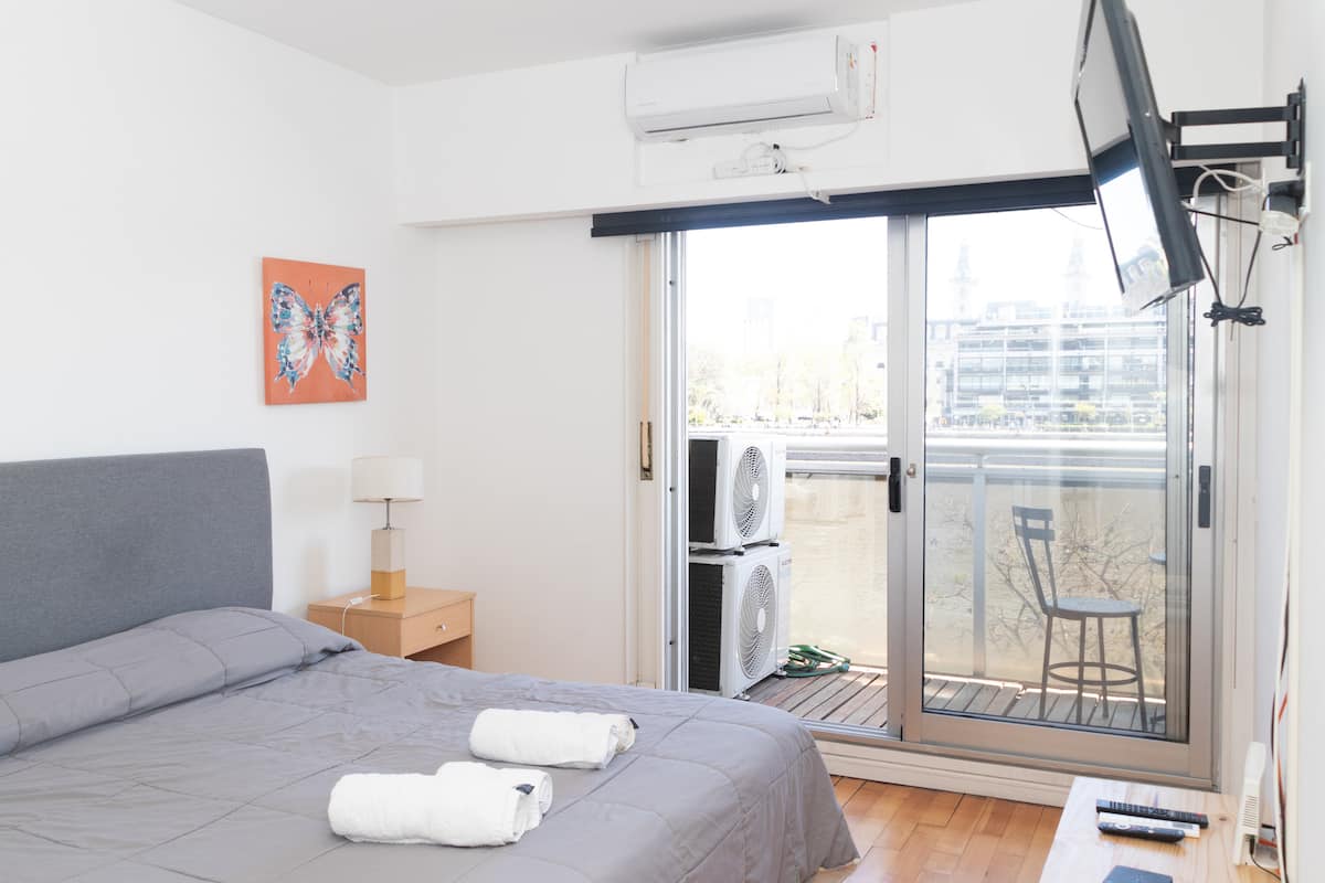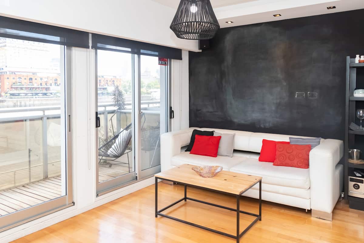 Квартира в Puerto Madero с видами на причал. Апартаменты полностью оборудованы и декорированы. В здании есть тренажёрный зал, сауна и два бассейна, доступ через гараж с кодом доступа 123456 и выходом на центральную зону на 4-м этаже.