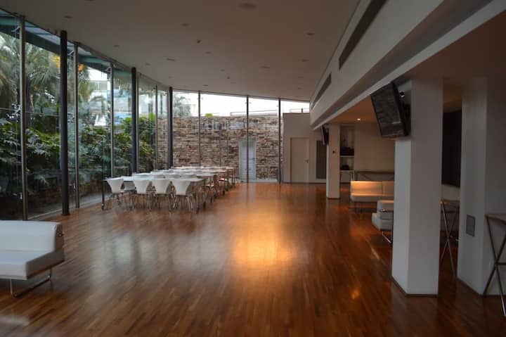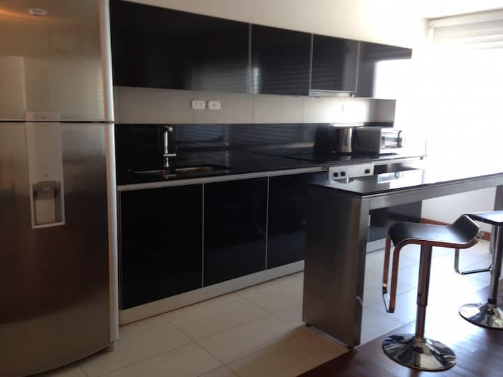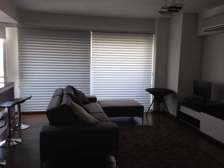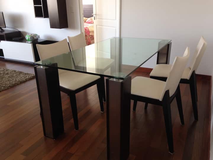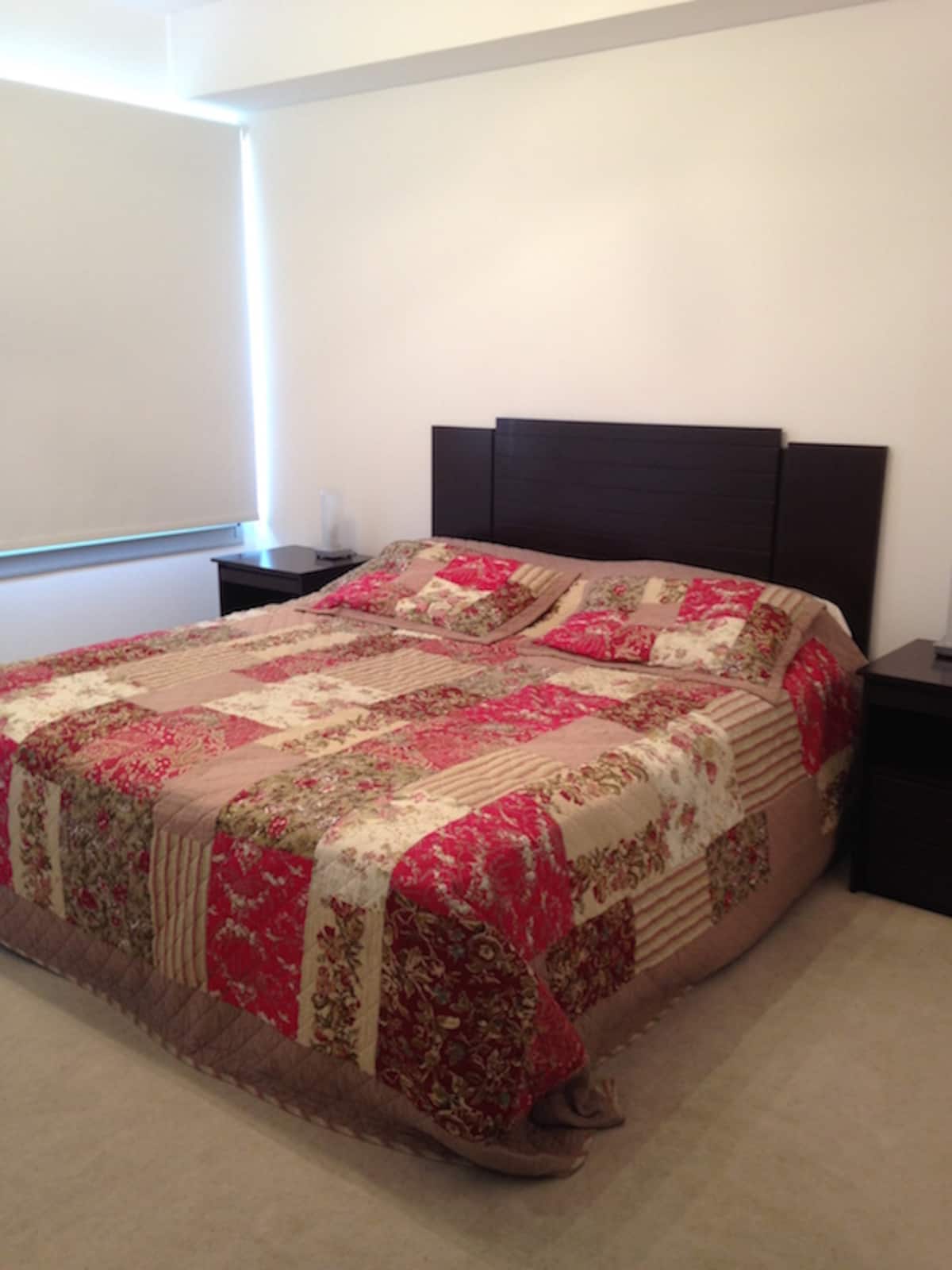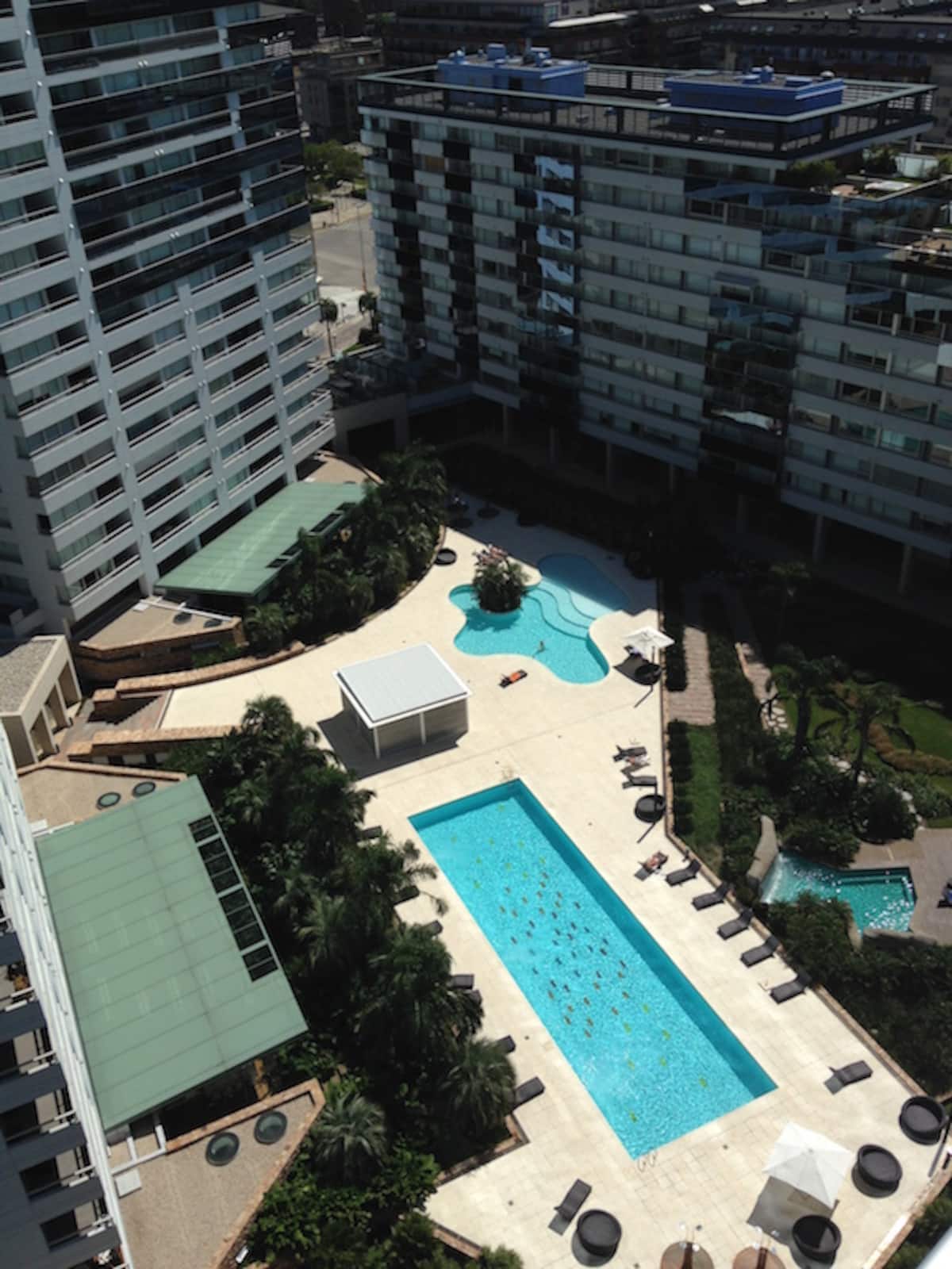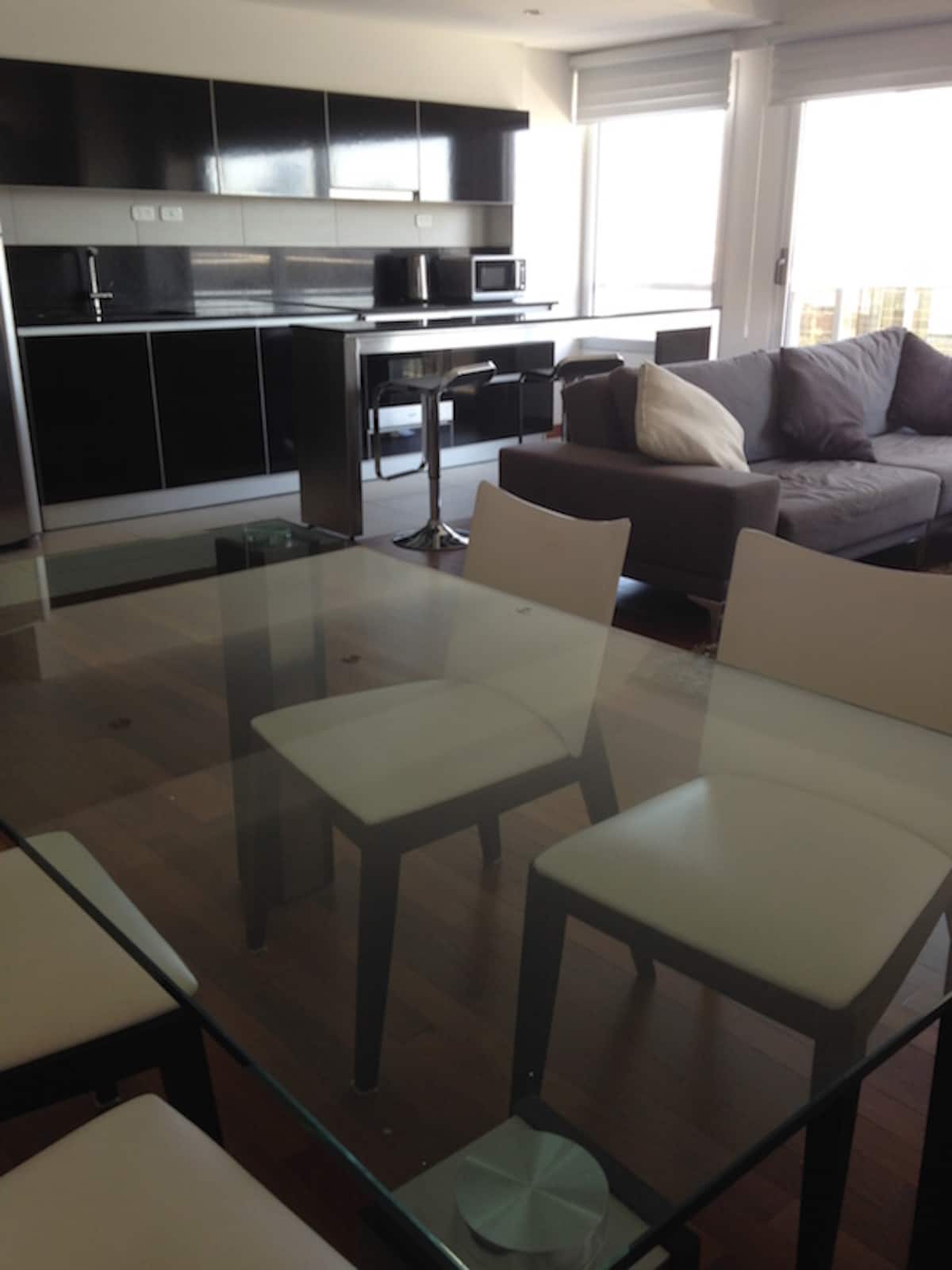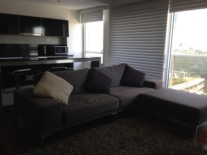 Квартира в Puerto Madero в комплексе Zencity, 2 комнаты. Планировка включает спальную с ванной комнатой en-suite и гардеробной, столовую и гостиную с паркетом и балкон с панорамным видом. В квартире есть холодильник, кухня с духовкой и телевизор, кондиционер hot/cold. В здании работают круглосуточная охрана, 3 бассейна с водопадами и подогревом воды, тренажёрный зал, сауна, джакузи, общая гостиная для жильцов (SUM), переговорная и видео-зона. Предусмотрены гостевой туалет и (закреплённое) парков