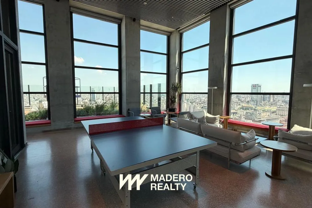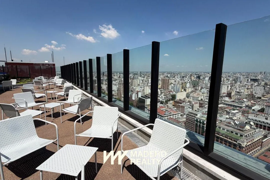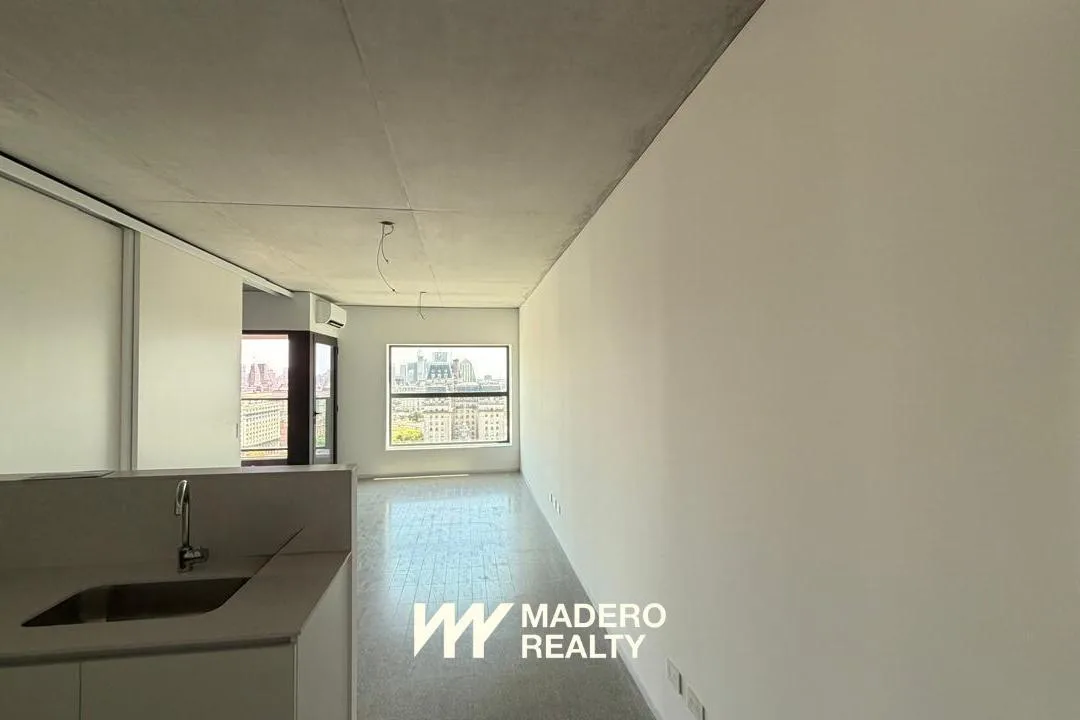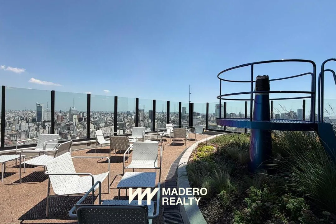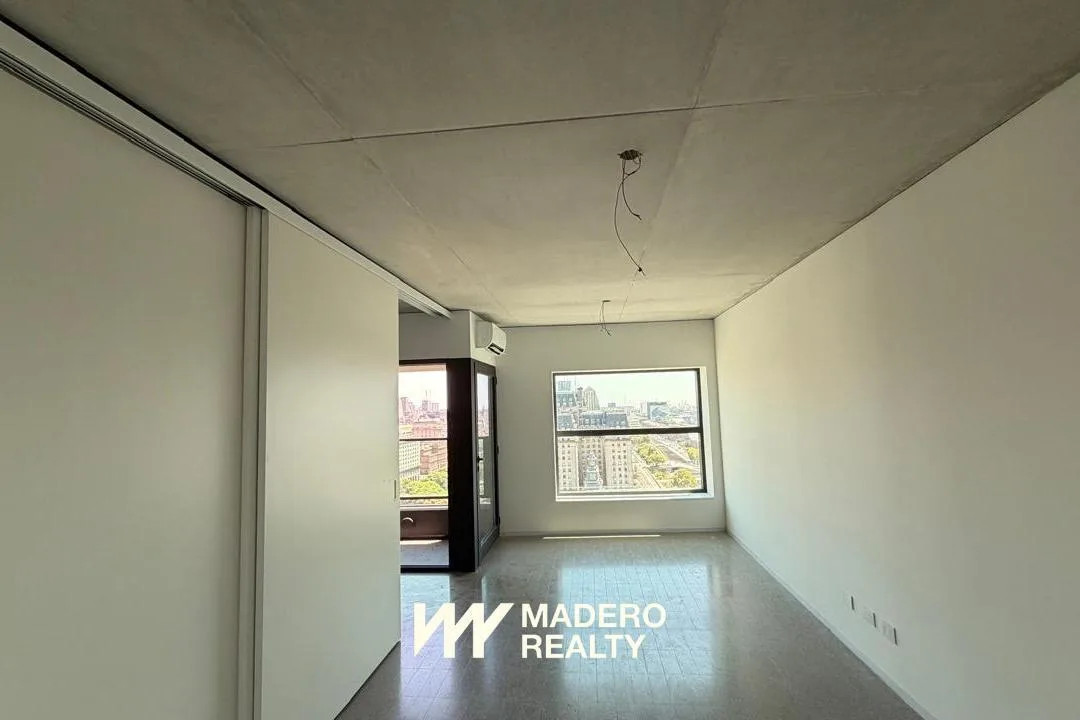 Квартира-студия «2 ambientes» в Puerto Madero на Huergo 400, новая (никто не жил), с окнами и балконом. Кухня открытой планировки, полностью оборудованная ванная комната. В комплексе есть plaza с зонами для отдыха, фитнес-клуб с беговой дорожкой, yoga и тренажёрным залом, а также campus с cowork, библиотекой и учебными кабинетами. На крыше предусмотрены бассейн, зона гриля и смотровая площадка, также есть общая гостиная для жильцов и прачечная.