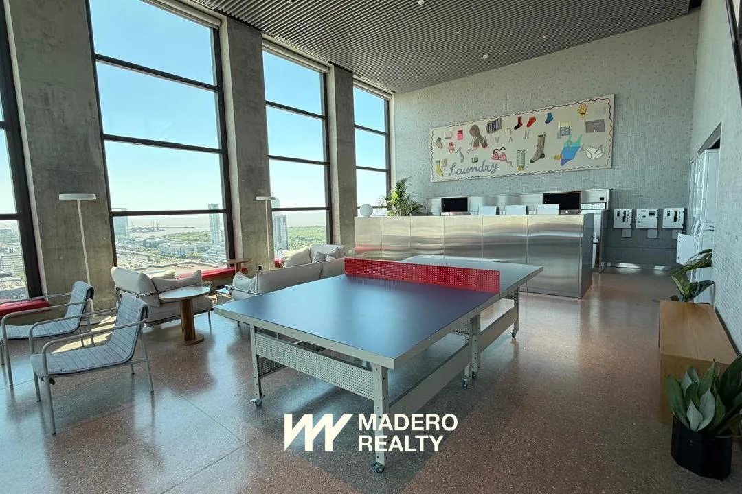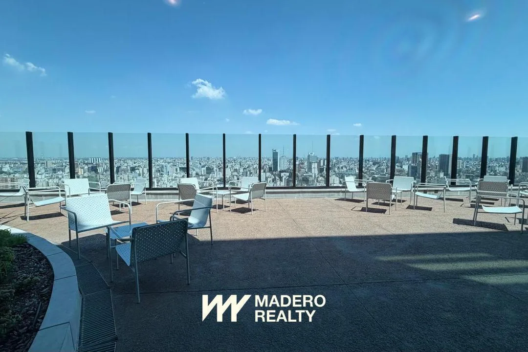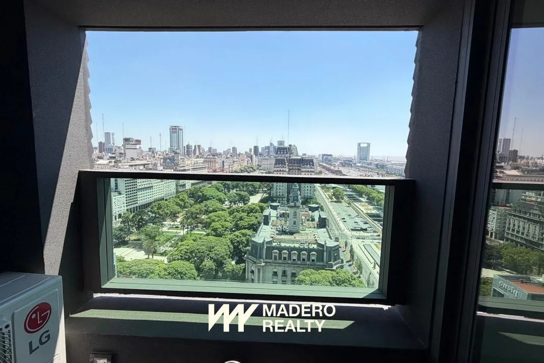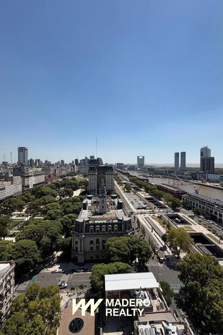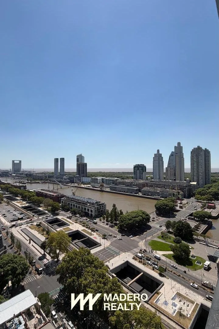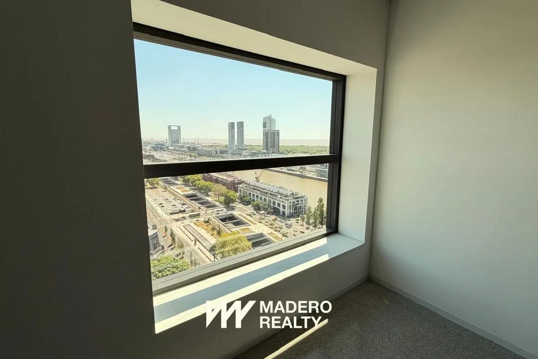 Квартира-студия «2 ambientes» в Puerto Madero на Huergo 400, новая (никто не жил), с окнами и балконом. Кухня открытой планировки, полностью оборудованная ванная комната. В комплексе есть plaza с зонами для отдыха, фитнес-клуб с беговой дорожкой, yoga и тренажёрным залом, а также campus с cowork, библиотекой и учебными кабинетами. На крыше предусмотрены бассейн, зона гриля и смотровая площадка, также есть общая гостиная для жильцов и прачечная.