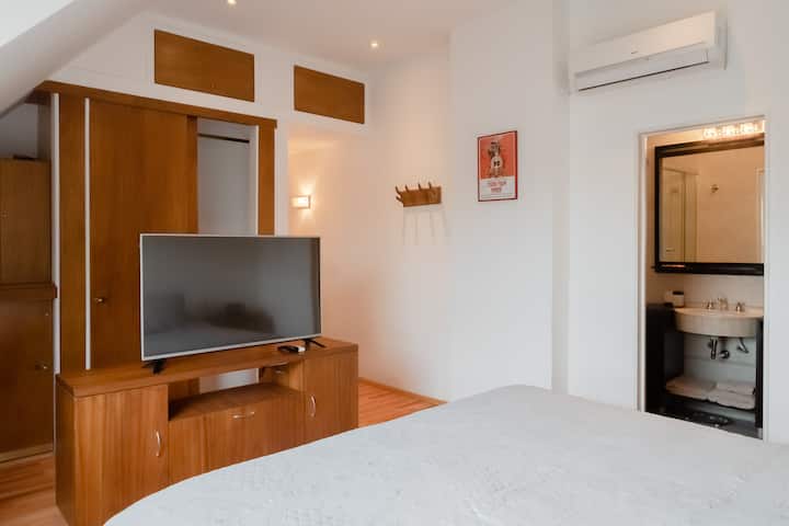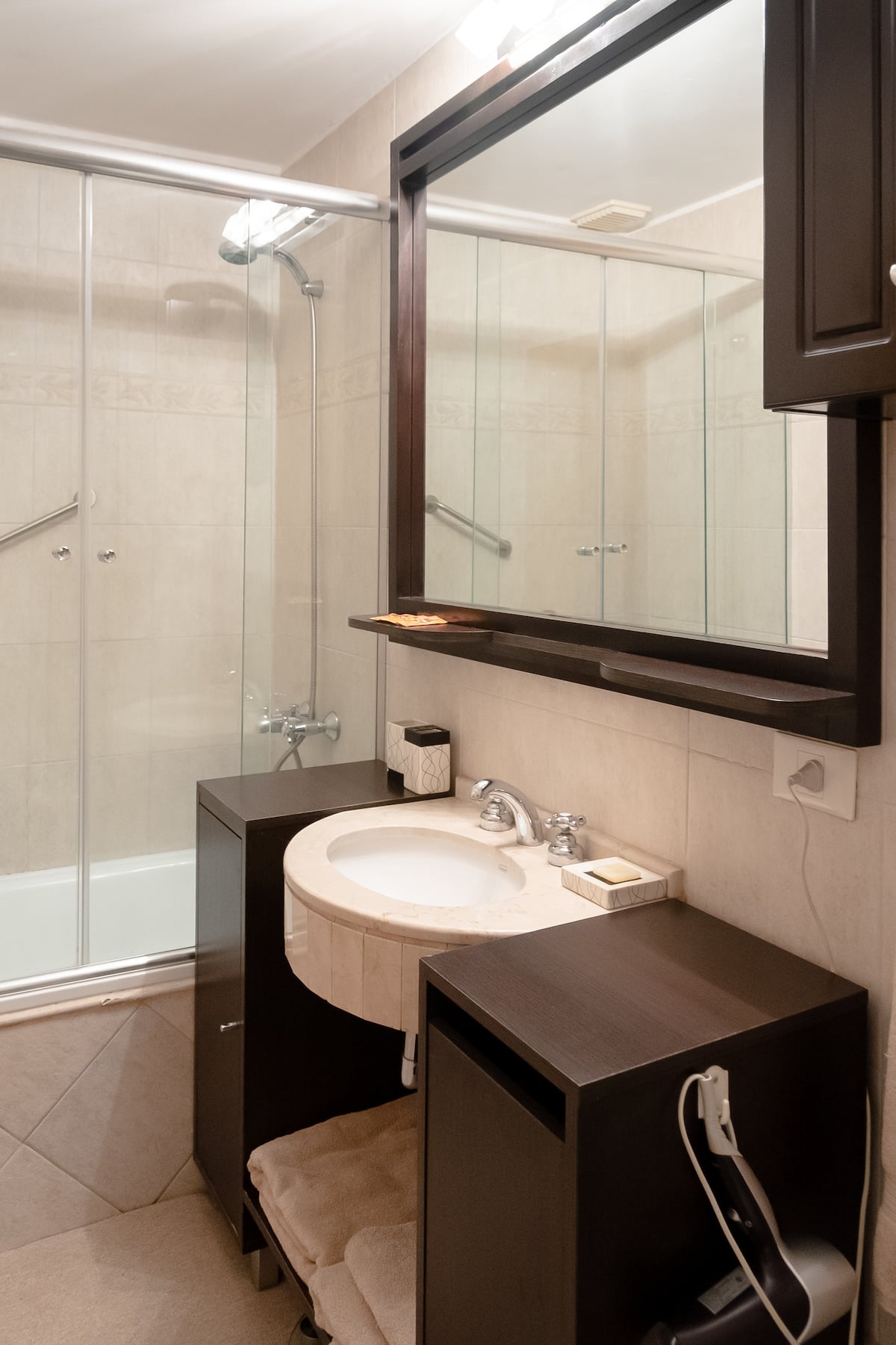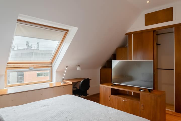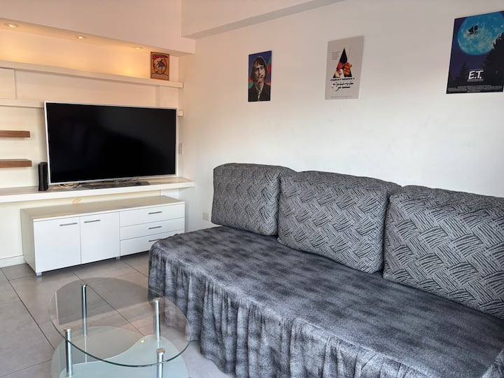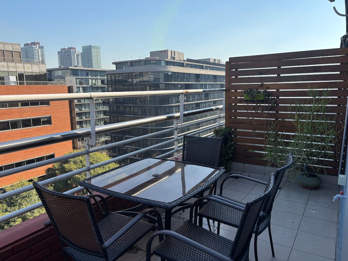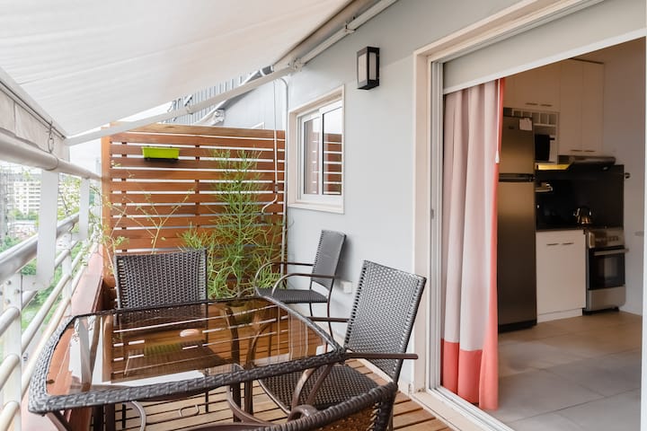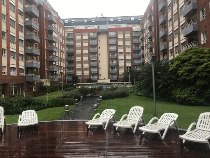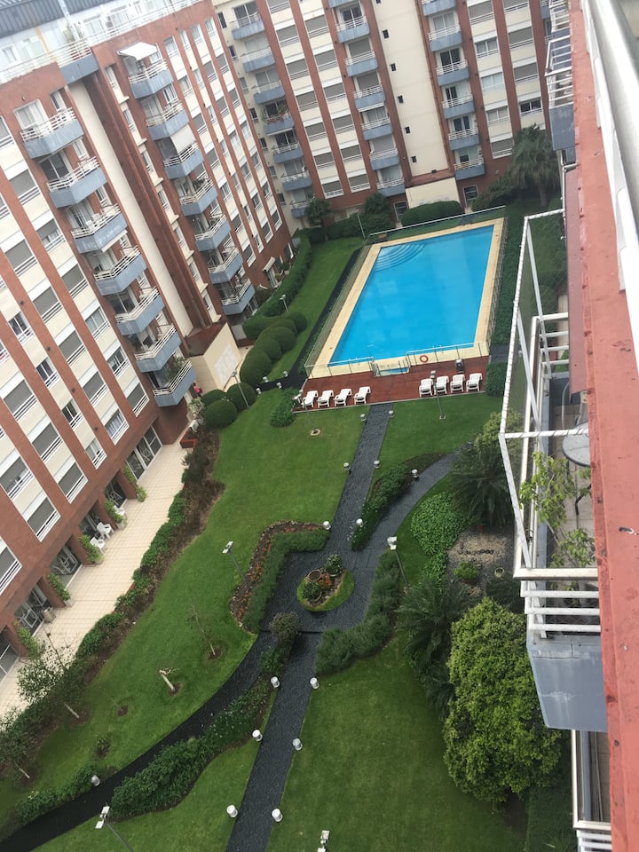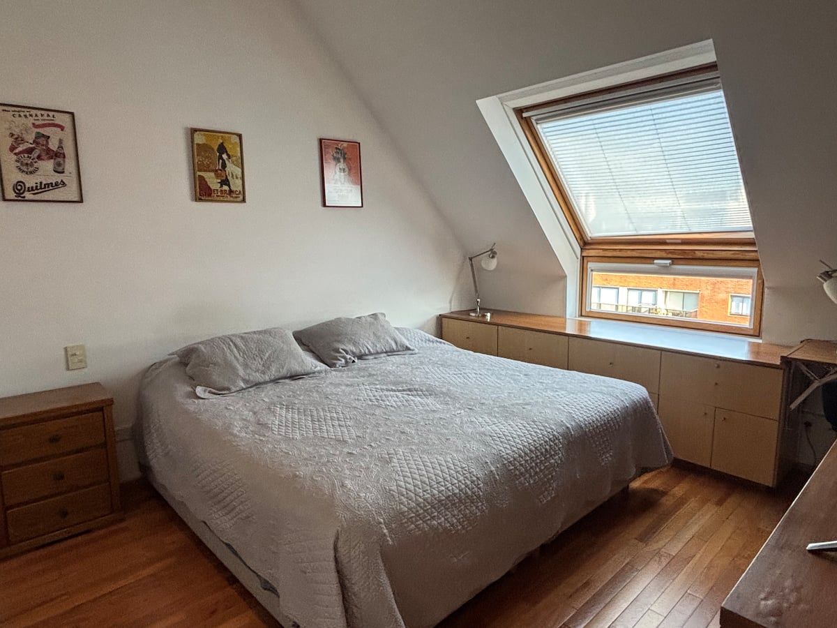 Двухуровневая квартира в Puerto Madero, в районе улиц Juana Manso и Encarnación Ezcurra. Внизу: гостиная-столовая с раскладным диваном-кроватью, телевизор, интегрированная кухня с электрической духовкой, микроволновой печью, холодильником с морозильной камерой и стиральной машиной, гостевой туалет. Вверху: спальня с двуспальной кроватью, телевизор, ванная комната и рабочий стол. В квартире есть кондиционер в обеих зонах и быстрый Wi‑Fi; предоставлены кофе-машина и тостер. В здании есть открытый