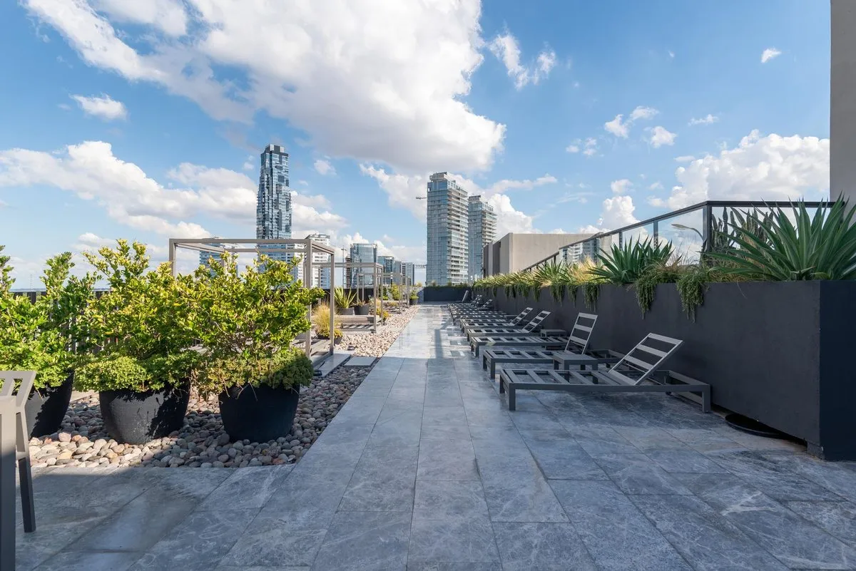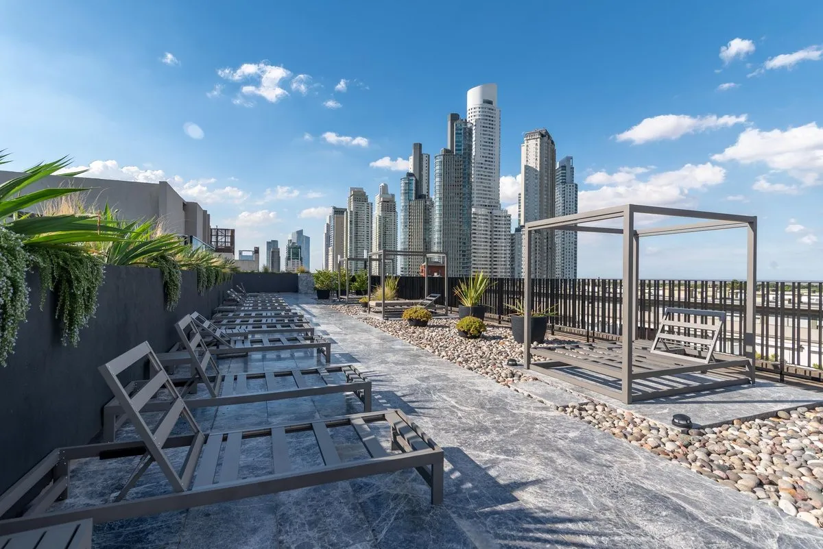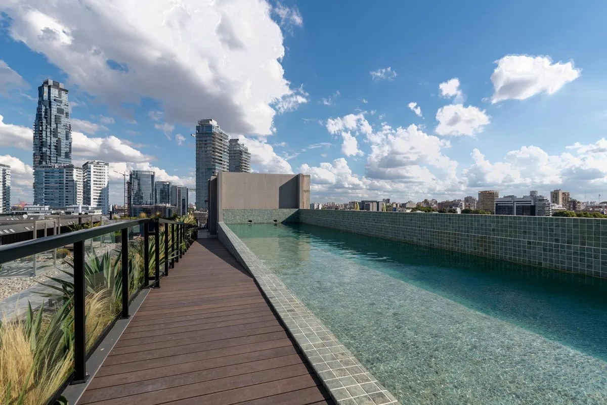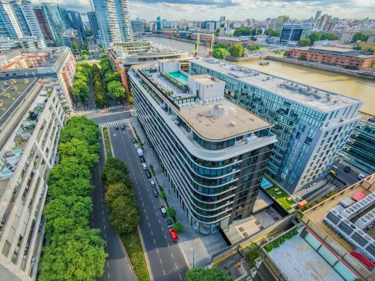 Квартира в формате 2 комнат площадью 67 m² в Puerto Madero, окна выходят на улицу Juana Manso. Новая квартира (никто не жил) в здании 2025 года постройки. В планировке: спальня, полностью оборудованная ванная, интегрированная кухня-гостиная и гостевой туалет. В квартире установлены центральный кондиционер и тёплый пол, на террасе есть бассейн с видом на реку. Парковочное место входит в стоимость аренды, в здании предусмотрена охрана 24 часа.