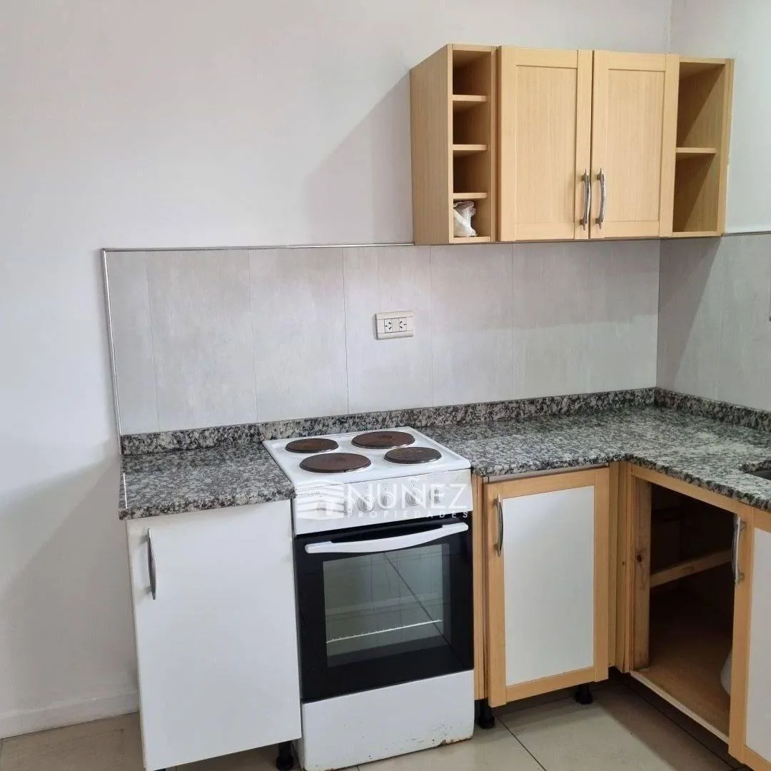 Квартира в районе Bernal Oeste, Quilmes, с планировкой из 2 комнат: спальня и кухня-гостиная. Помещение проходит по коридору в глубине. Кухня-гостиная с мебелью, ванная полностью оборудована, душевая. Полы в спальне керамические, под имитацию дерева. Есть полузакрытый внутренний дворик с керамическим покрытием. Указаны электрические приборы. Договор на 24 месяца, корректировка раз в квартал по IPC (índice de precios al consumidor, INDEC). Площади и размеры приблизительные, изображения приведены