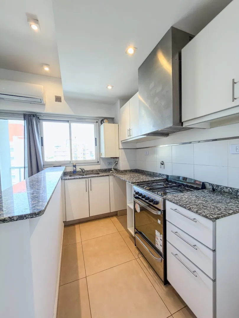 Квартира в Quilmes на 7-м этаже, окна на улицу. Есть гостиная-столовая с кухней открытого типа, балкон с зоной гриля, отдельная ванная комната и 1 спальня со встроенным шкафом и балконом. Установлены двухконтурный котёл и сплит-кондиционер. Предусмотрено (закреплённое не указано) парковочное место на PB. Рядом с Plaza Conesa и Klover V, в 250 m. Начальная аренда 500 USD, корректировка раз в 6 месяцев на 10%.