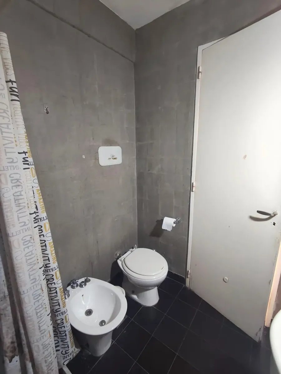 Квартира в формате 2 ambientes в Quilmes Centro, на 6-м этаже. Окна на улицу и балкон. В квартире кухня с нижними шкафами и кухонной плитой, отдельная прачечная, гостиная-столовая с выходом на балкон, полностью оборудованная ванная комната и спальня с гардеробом и выходом на балкон. Срок договора 24 месяца, доплата раз в четыре месяца по ICL. В объявлении указано, что с домашними животными нельзя, также установлен лимит 2 человек. Стоимость: аренда, услуги, коммунальные платежи здания, Aysa, ARQ