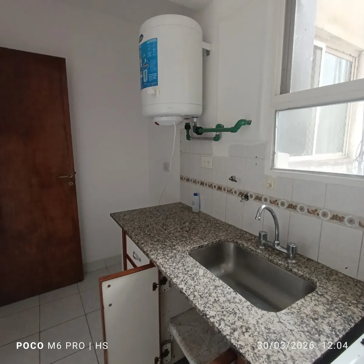 Квартира в Quilmes Centro площадью 2 комнаты, окна во двор, на 9-м этаже. Жилая зона объединена с гостиной; отдельная кухня оборудована нижними шкафами и навесными секциями. Ванная комната с ванной. Спальня с паркетным покрытием и встроенным шкафом. Дом находится в хорошем состоянии; вблизи Peatonal Rivadavia.