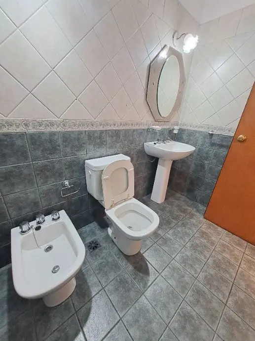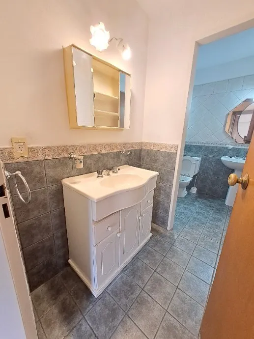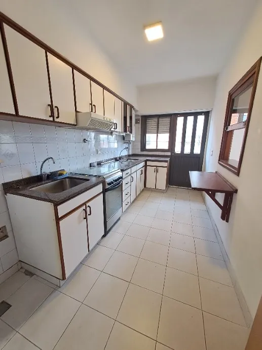 Квартира в Quilmes Centro с 2 комнатами. Площадь не указана. Отдельная кухня с газовой плитой, мраморной столешницей, навесными шкафами, мойкой для стирки, местом под стиральную машину и проходом на столешнице. Гостиная-столовая с сплит-системой и печью, спальня с встроенным шкафом и печью. Совмещённый санузел с ванной, душевой панелью, умывальником с тумбой и зеркалом, а также дополнительная раковина на ножке с зеркалом. Балкон по всей ширине, выход на обе улицы.