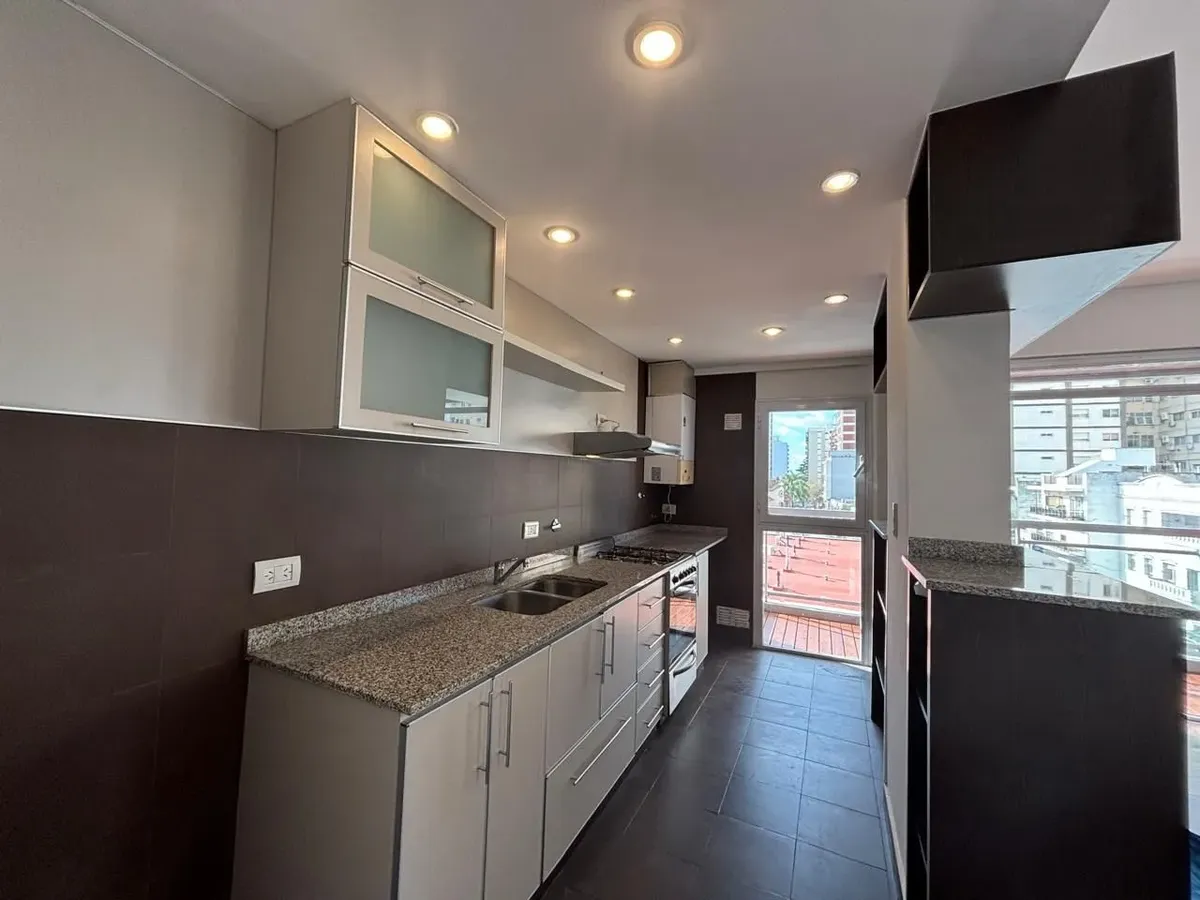 Квартира из 2 комнат площадью с балконом на улицу, с мебелью или без — не указано. В гостиной-столовой деревянные полы, балкон сплошной по фасаду с настилом. Кухня полностью оборудована с завтракающим столиком, спальня с зеркальным шкафом. Полная ванная с ванной, отопление радиаторами во всех помещениях. В квартире предусмотрено (закреплённое) парковочное место. В здании есть общая гостиная для жильцов (SUM) и физическая охрана. Договор аренды на 24 месяца с корректировкой раз в 3 месяца по ICL.