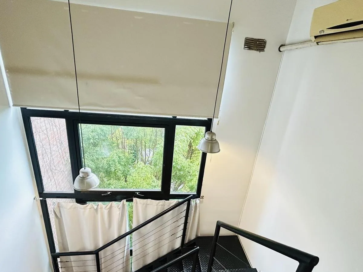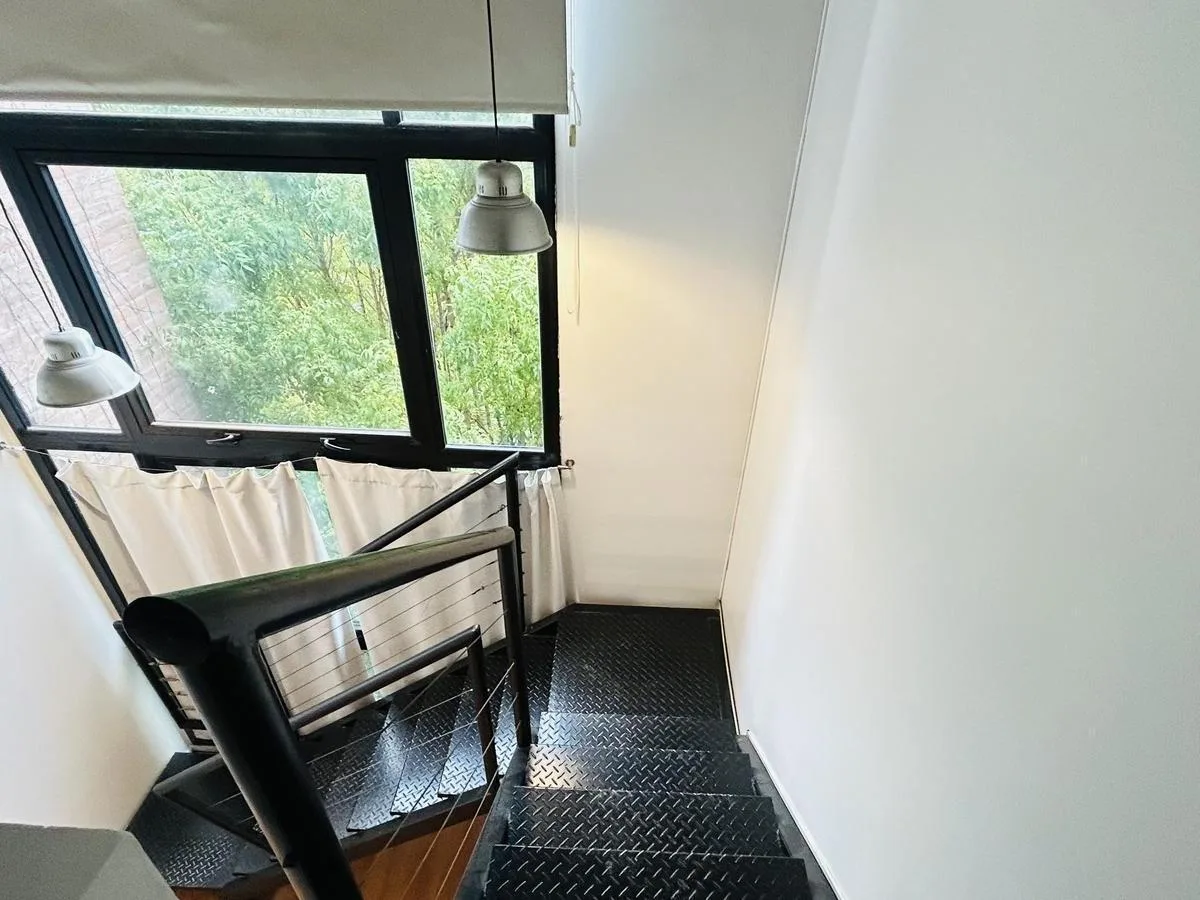 Квартира-лофт в Bernal, в центре. Площадь и этаж не указаны; планировка открытой зоны объединяет кухню и гостиную-столовую. Есть 1 спальня на верхнем уровне и 1 полностью оборудованная ванная комната. В квартире предусмотрен внутренний двор (патйо) и собственные системы кондиционирования и отопление радиаторами. Коммунальные платежи здания составляют $60.000 в месяц.