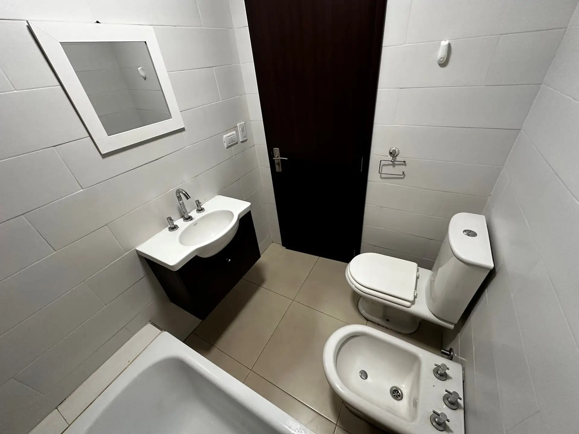 Квартира-полуэтаж 2 комнаты в Quilmes, 6-й этаж, окна на улицу. Ориентация на восток, вид на реку. В квартире гостиная-столовая с широким балконом на улицу, полуинтегрированная кухня, полноценная ванная и 1 спальня с встроенным шкафом и балконом во двор. Отопление обеспечивают индивидуальный котёл и радиаторы, установлены стеклопакеты DVH; есть дверь с системой безопасности. (Закреплённое) парковочное место расположено в подземном уровне. Срок аренды — 12 месяцев, корректировка раз в квартал по