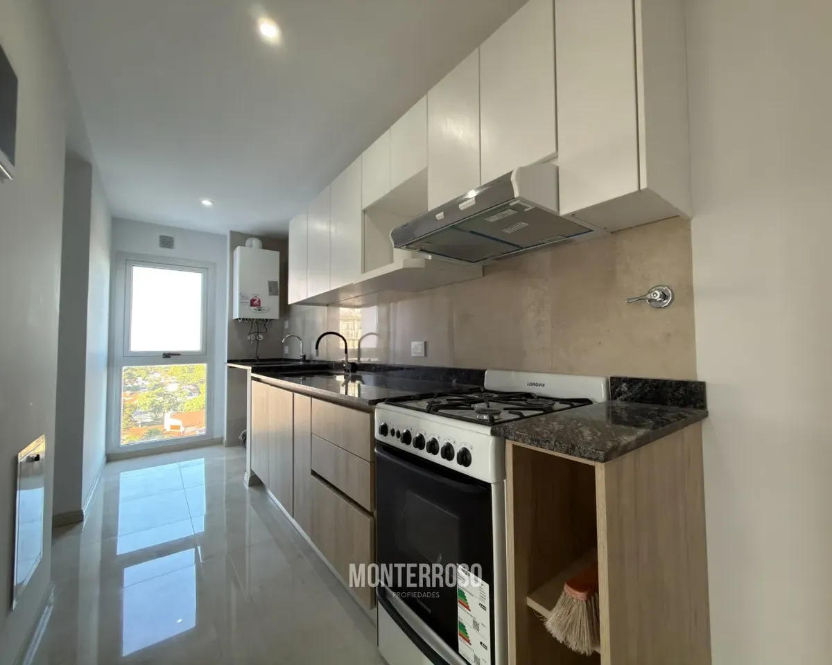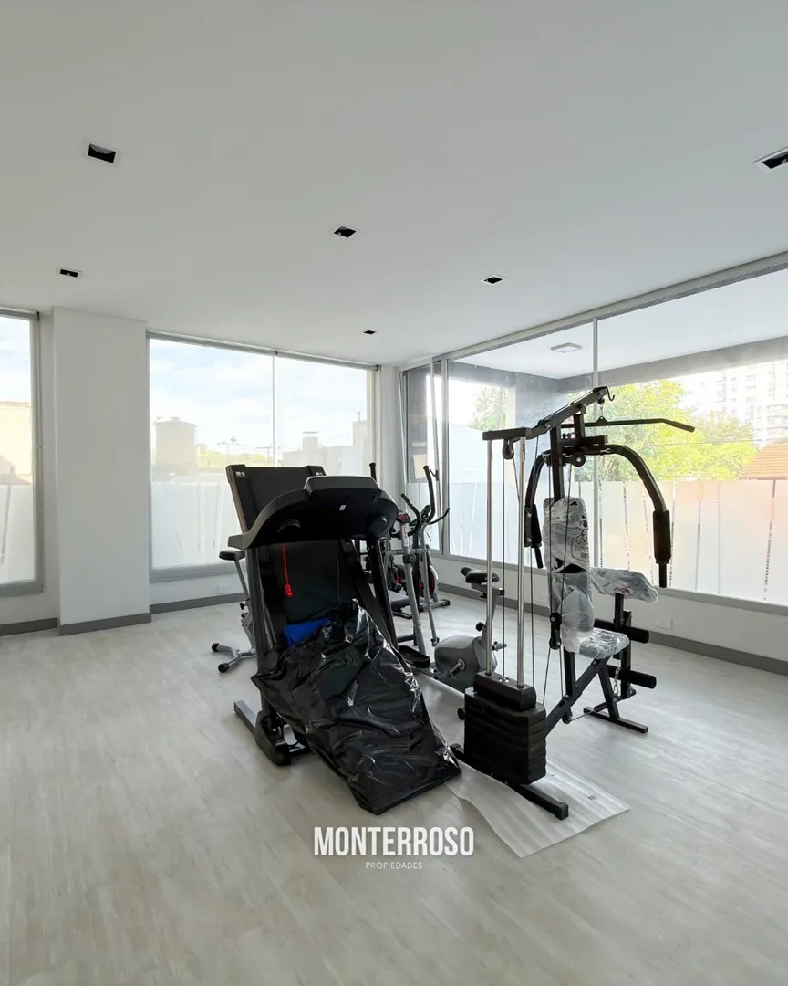 Квартира-студия формата 2 ambientes в Quilmes Centro, новая (никто не жил), 7-й этаж. В планировке гостиная-столовая с балконом, отдельная кухня, зона прачечной, ванная и 1 спальня с гардеробом с внутренним наполнением. Есть парковочное место на подземном уровне, установлен двухконтурный котёл и тёплые полы, предусмотрена подготовка под сплит-систему. В здании есть gym и общая гостиная для жильцов (SUM). Коммунальные платежи здания указаны ориентировочно, так как счета ещё не выставлялись.