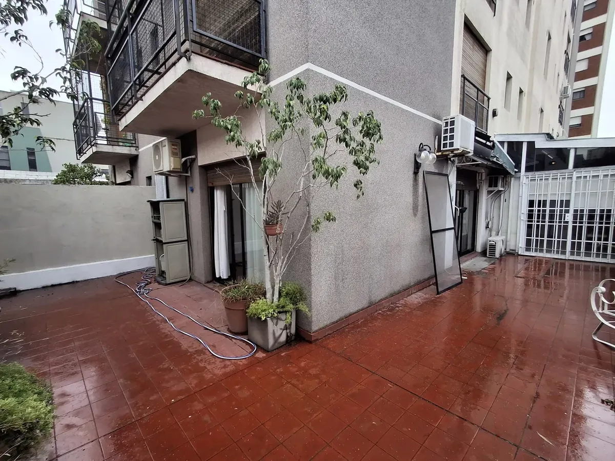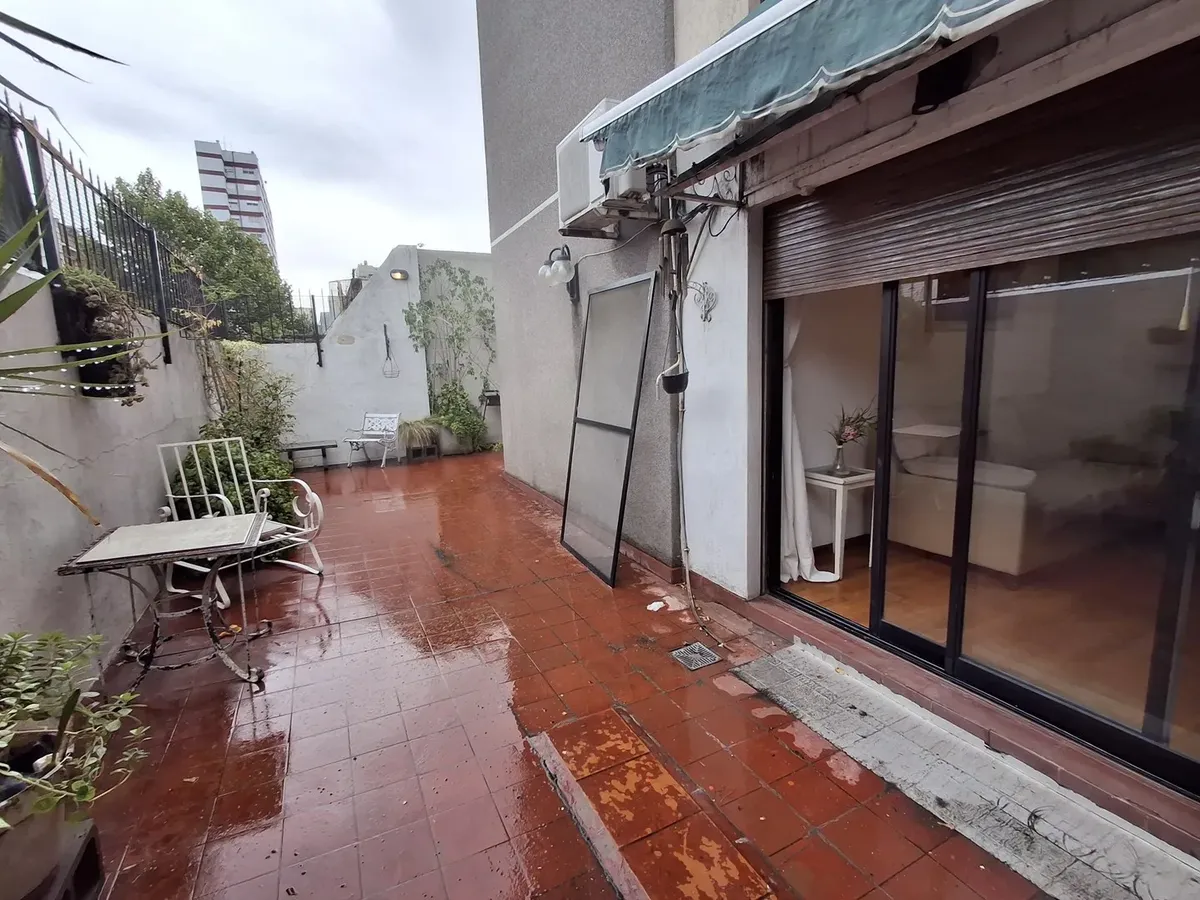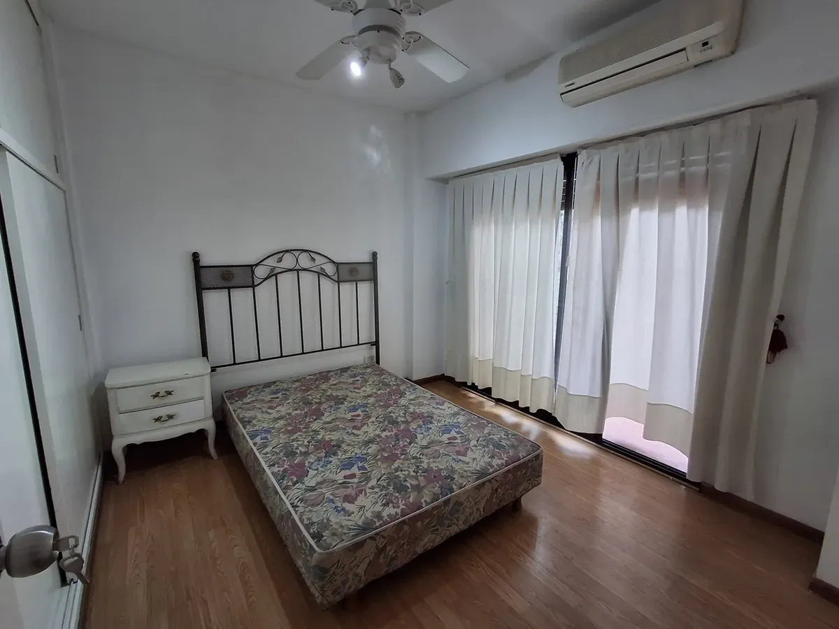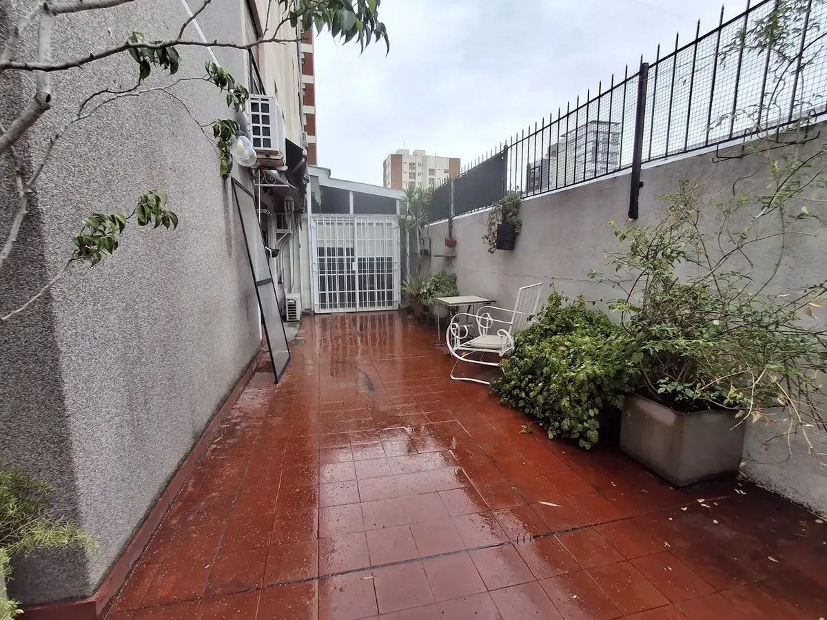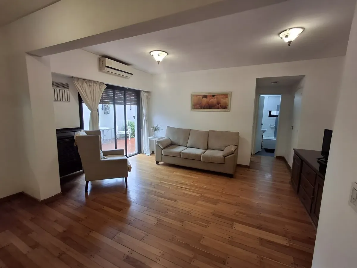Квартира с 2 комнатами и жилой зоной на полудополнение (2 ambientes y medio) в Quilmes. Площадь не указана; планировка включает гостиную-столовую с кухней полусоединённого типа. Есть обеденная зона на каждый день во внутреннем застеклённом и крытом патио с кондиционером и камином. Большой балкон в виде террасы, полная ванная с ванной, после ремонта. В спальне встроенный шкаф и выход в патио. Квартира почти полностью с мебелью. Арендная плата не включает коммунальные платежи здания (expensas) и д