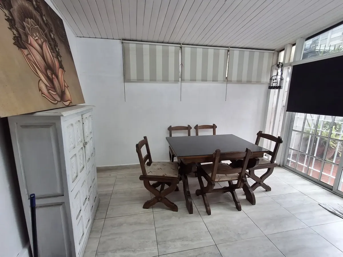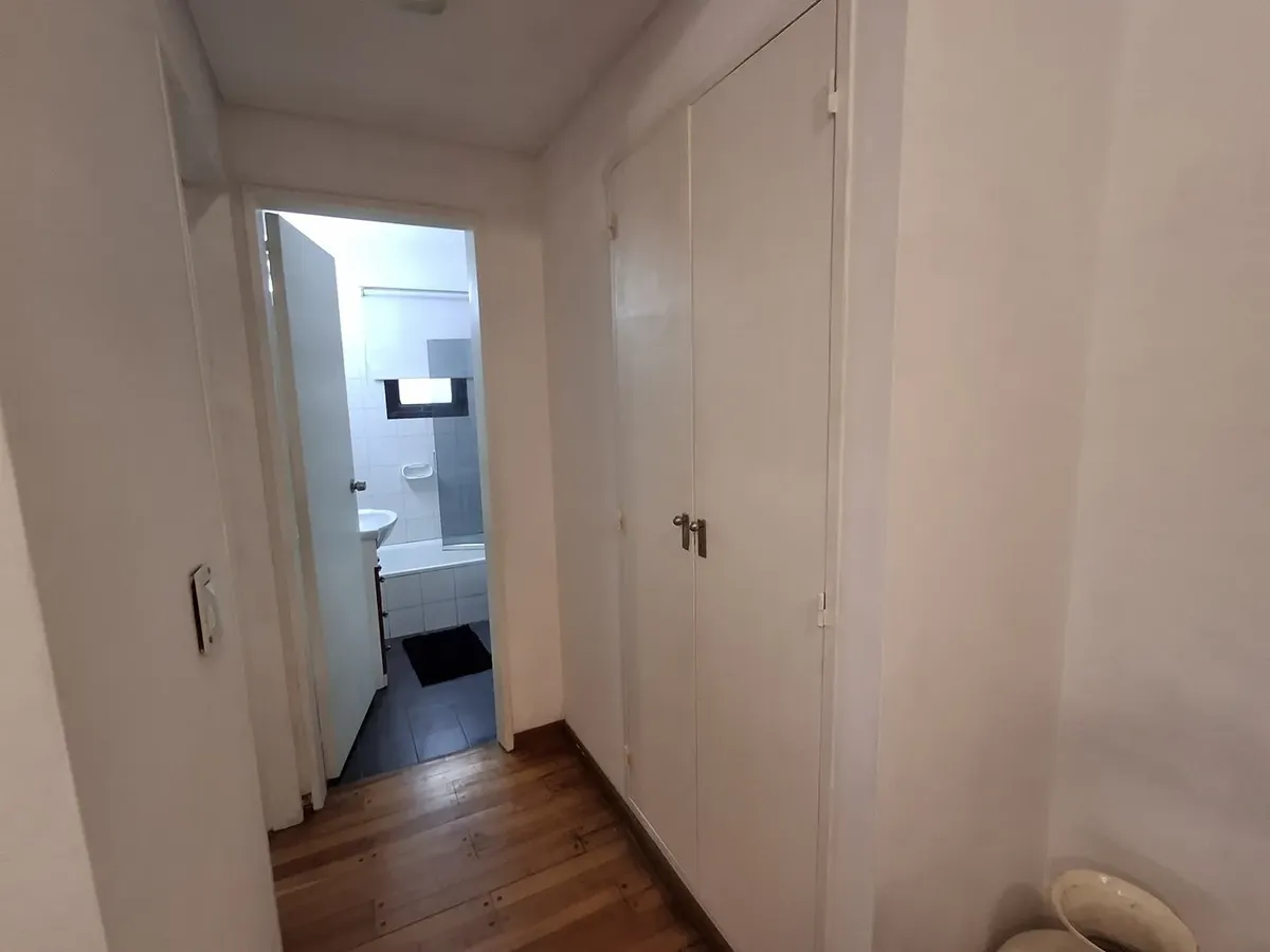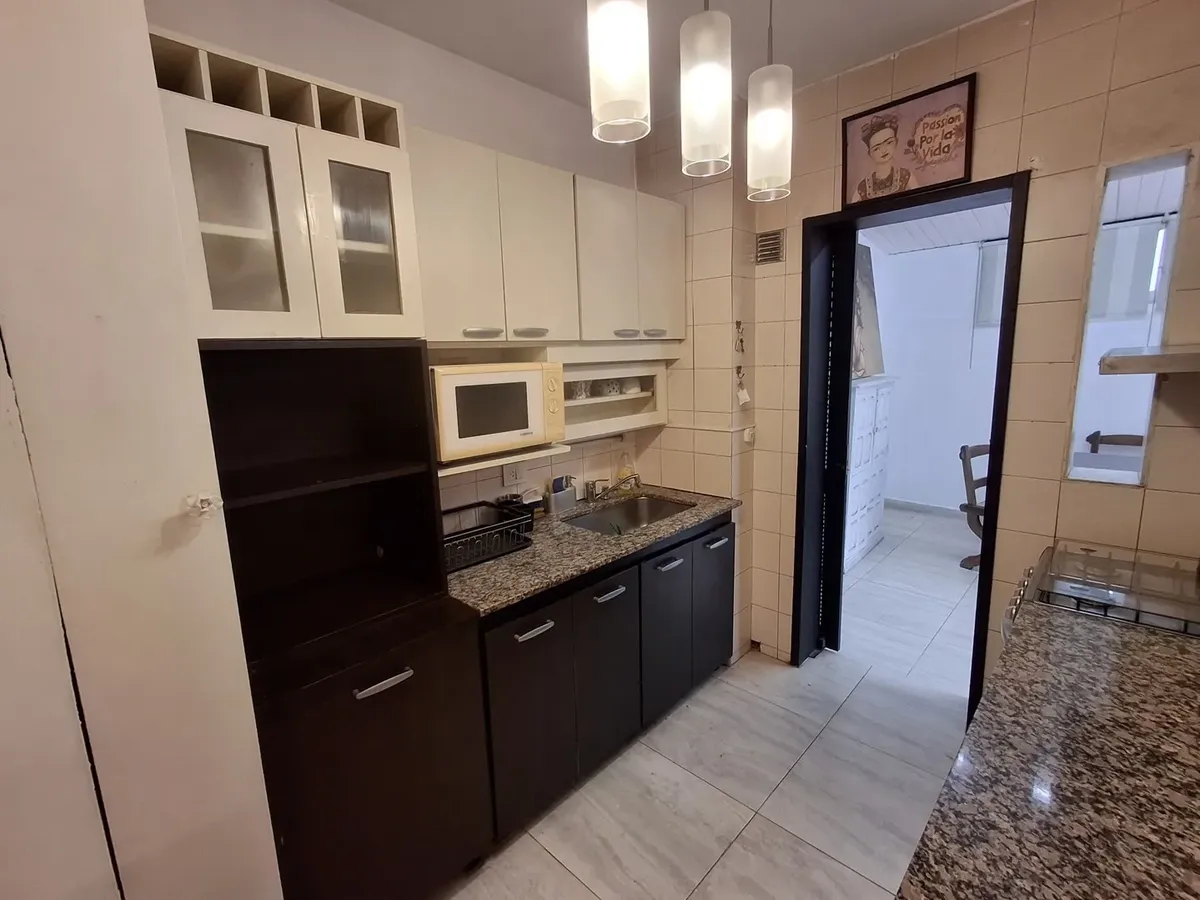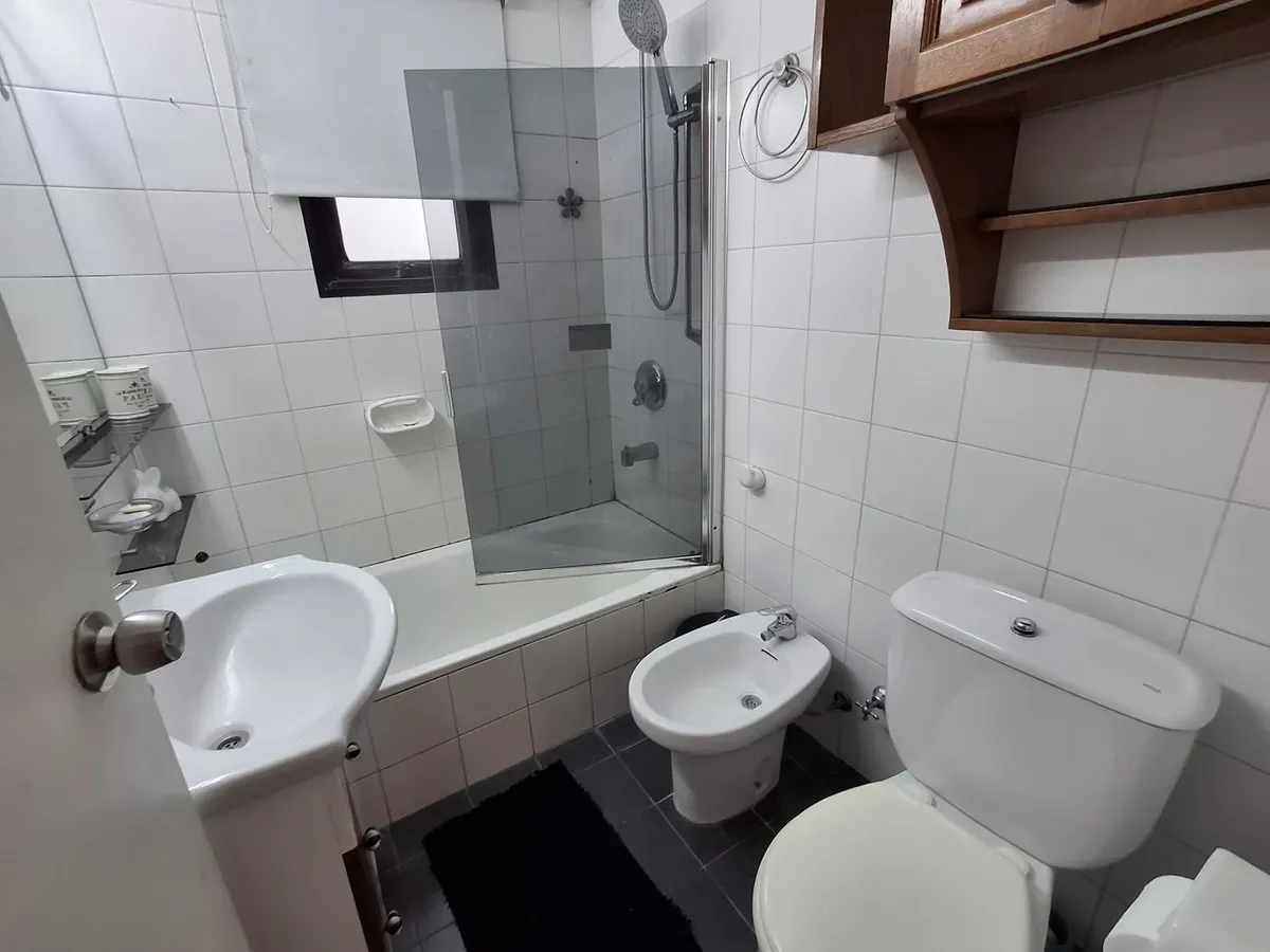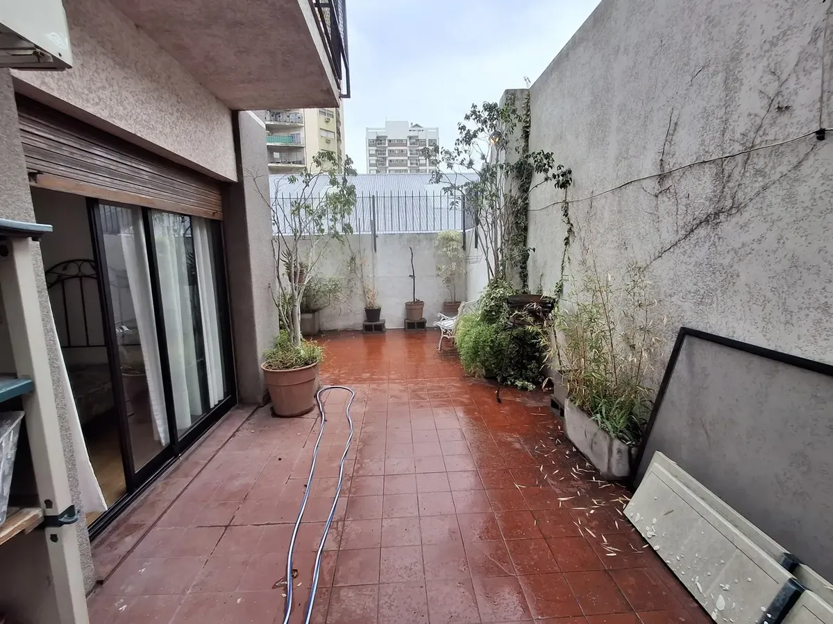 Квартира с 2 комнатами и жилой зоной на полудополнение (2 ambientes y medio) в Quilmes. Площадь не указана; планировка включает гостиную-столовую с кухней полусоединённого типа. Есть обеденная зона на каждый день во внутреннем застеклённом и крытом патио с кондиционером и камином. Большой балкон в виде террасы, полная ванная с ванной, после ремонта. В спальне встроенный шкаф и выход в патио. Квартира почти полностью с мебелью. Арендная плата не включает коммунальные платежи здания (expensas) и д